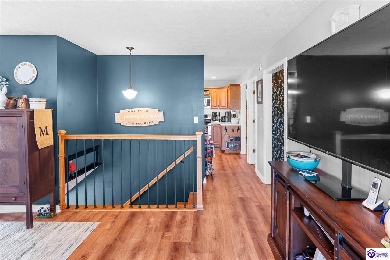 Realtor's notes: Welcome home to this beautiful country retreat nestled on 1.4 acres of peaceful surroundings. This spacious property offers 4 bedrooms and 3.5 baths, providing plenty of room for comfortable living and entertaining. Inside, you'll find a thoughtfully designed layout featuring a full finished walkout basement for additional living space, a recreation area, or guest accommodations. The primary suite is a true retreat, complete with a private office area, a generous walk-in closet, and an en-suite bath showcasing a classic clawfoot tub, double vanity, and a separate shower. Step outside and enjoy the charm of the wrap-around porch, ideal for relaxing mornings or quiet evenings overlooking the countryside. For those needing extra storage or workspace, the impressive 48x60 barn/garage with electric offers endless possibilities. This property blends comfort, functionality, and country charm offering the space you've been looking for both inside and out.