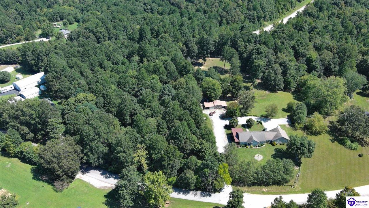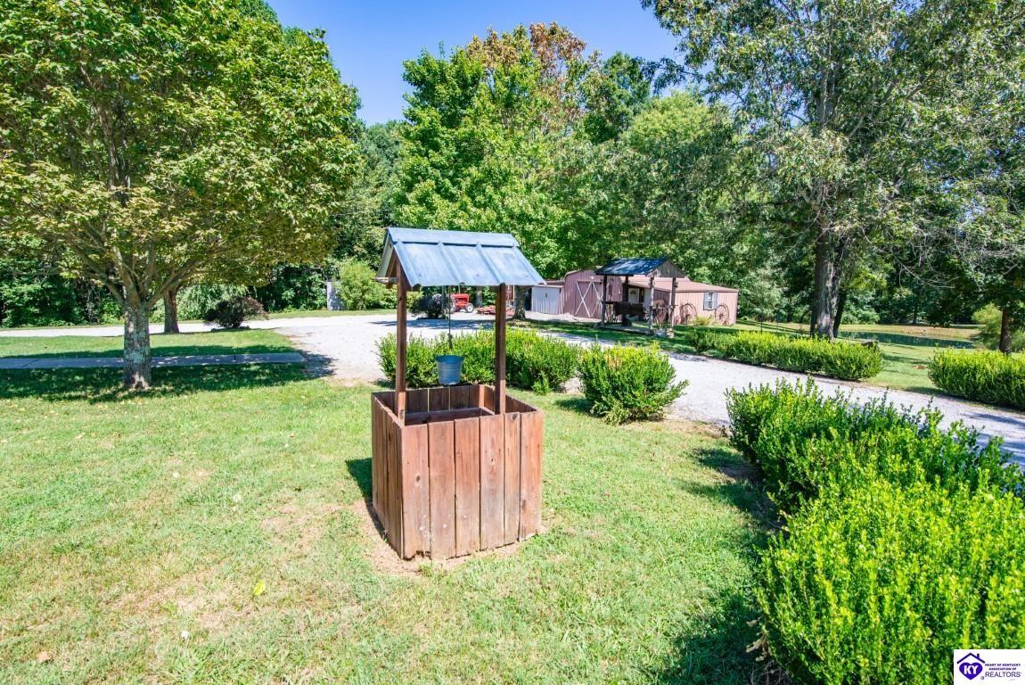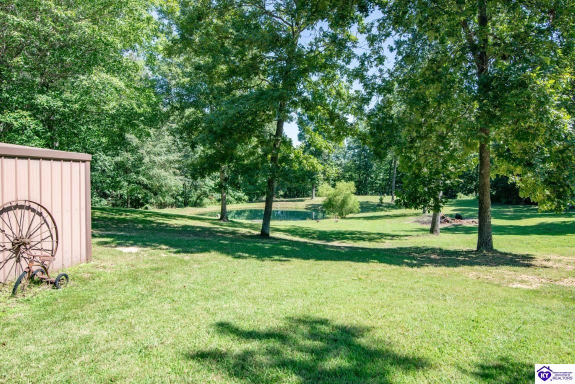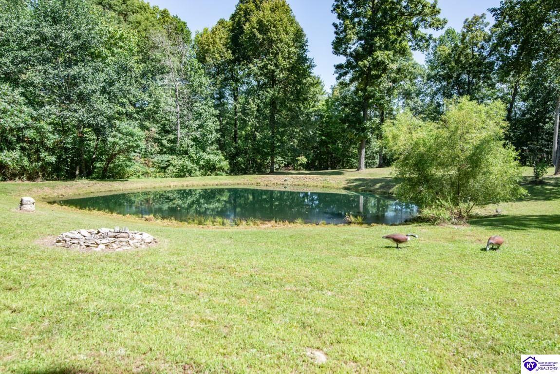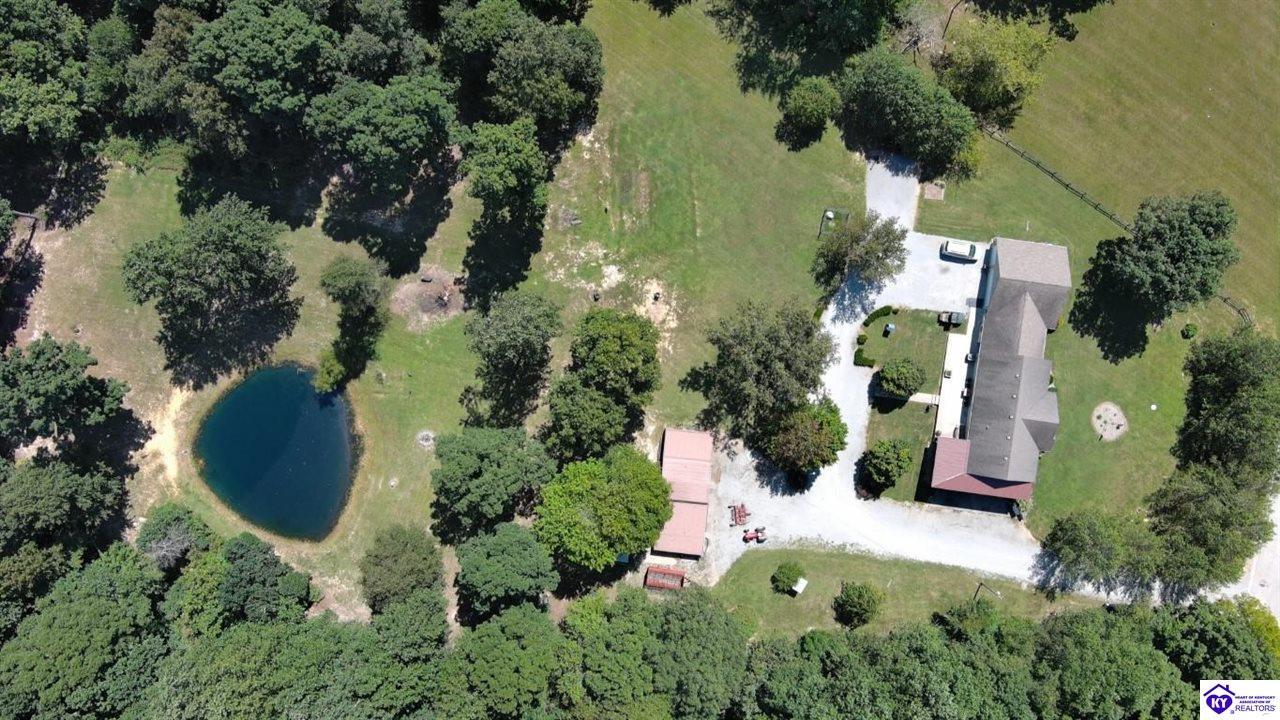 Realtor's notes: Welcome to your dream retreat located approximately 25 minutes to Elizabethtown and approximately 20 minutes to Campbellsville. Nestled on a breathtaking 5 acre park like setting, this sprawling ranch home offers a NEWER ROOF, 3 CAR GARAGE and is already wired for a genertaor for added convenience and peace of mind during power outages. Featuring an expansive layout, this home offers generous living spaces with plenty of windows providing natural light and beautiful views. As you step inside, you'll be greeted by the spacious living room, open to the kitchen and dining area providing plenty of space for entertaining friends and family. The primary suite offers an en-suite bath and it's own sitting room/office area with easy access to the laundry. This home provides a total of 3 bedrooms, 3 full baths with additional finished space in the basement to be used to suit your needs including a large family room, 2 additional rooms with closets, and another washer/dryer hookup. Step outside to discover your own personal paradise. This BEAUTIFUL property is perfect for hosting gatherings or just simply enjoying fishing in the pond or relaxing on the expansive deck surrounded by nature. Don't miss your chance to own this extraordinary property where comfort meets nature offering the perfect blend of tranquility and spacious living. You must see it to appreciate all it has to offer! Schedule your private tour today!
