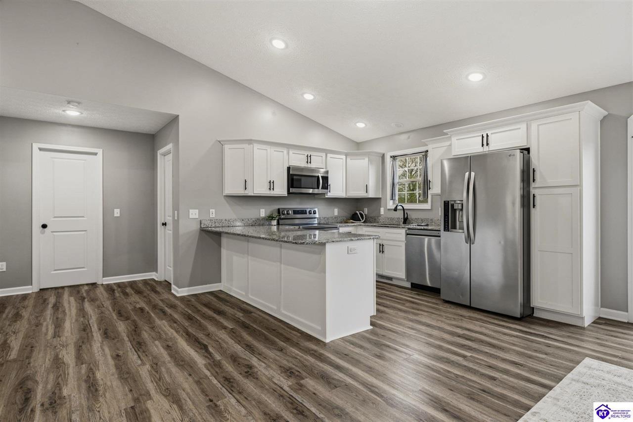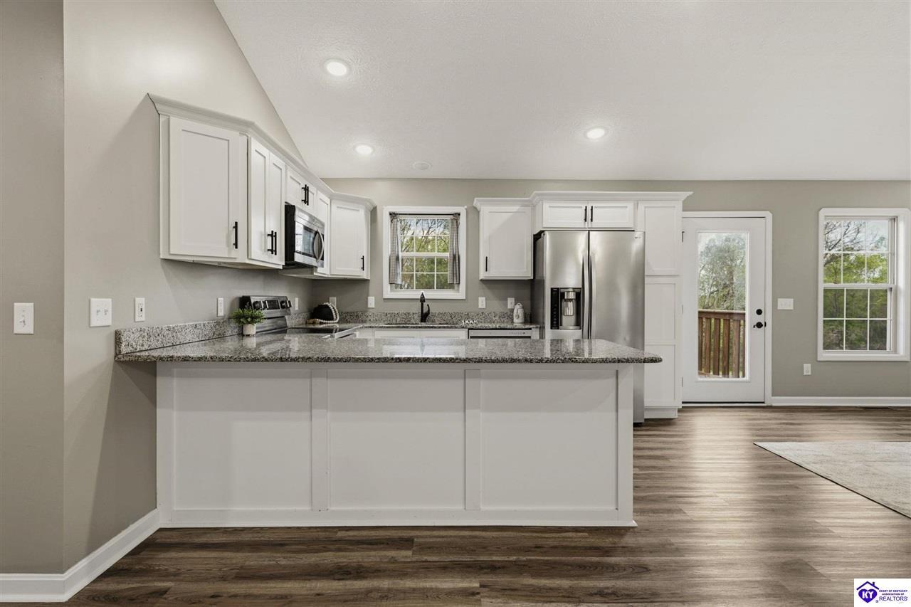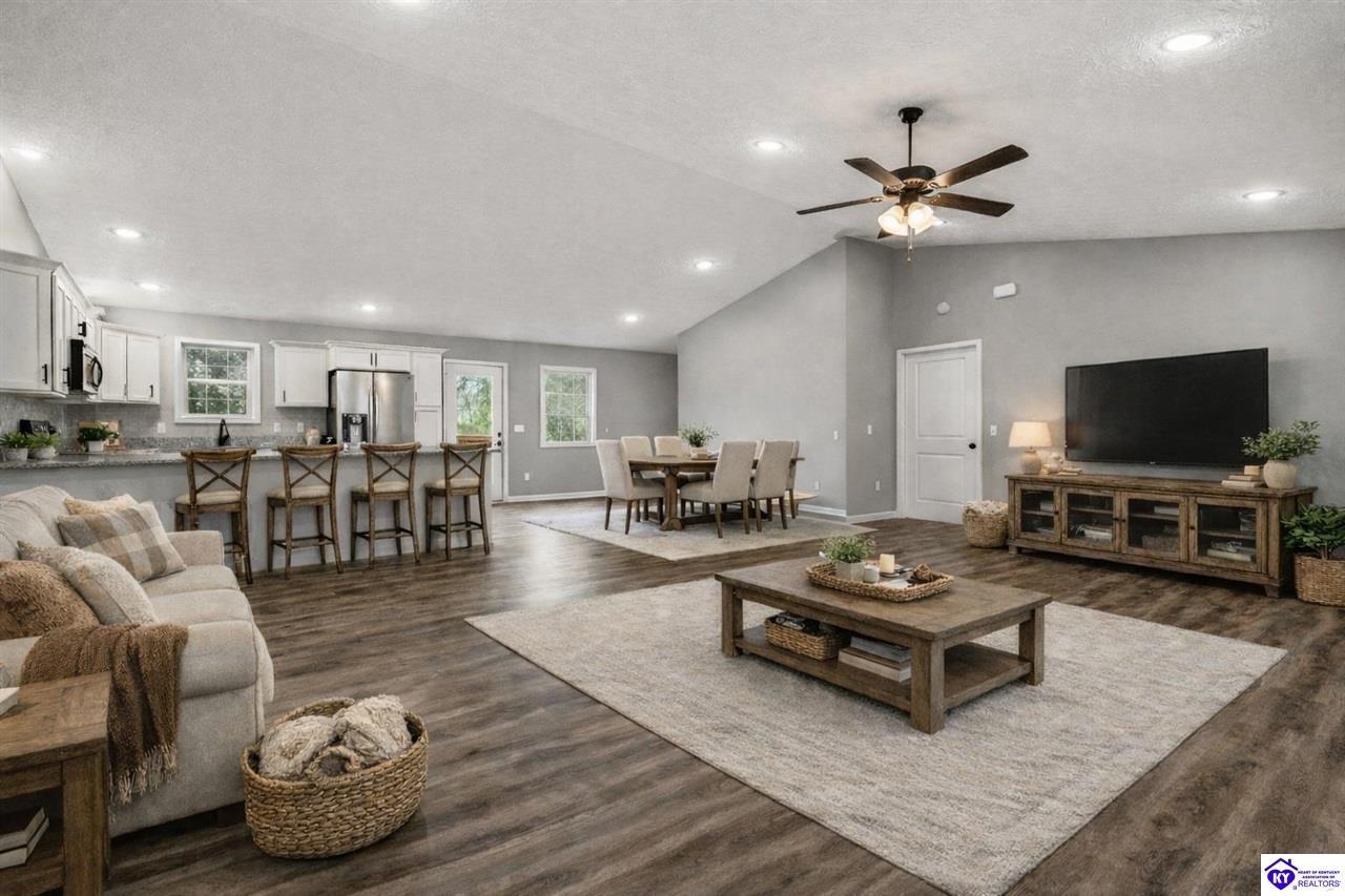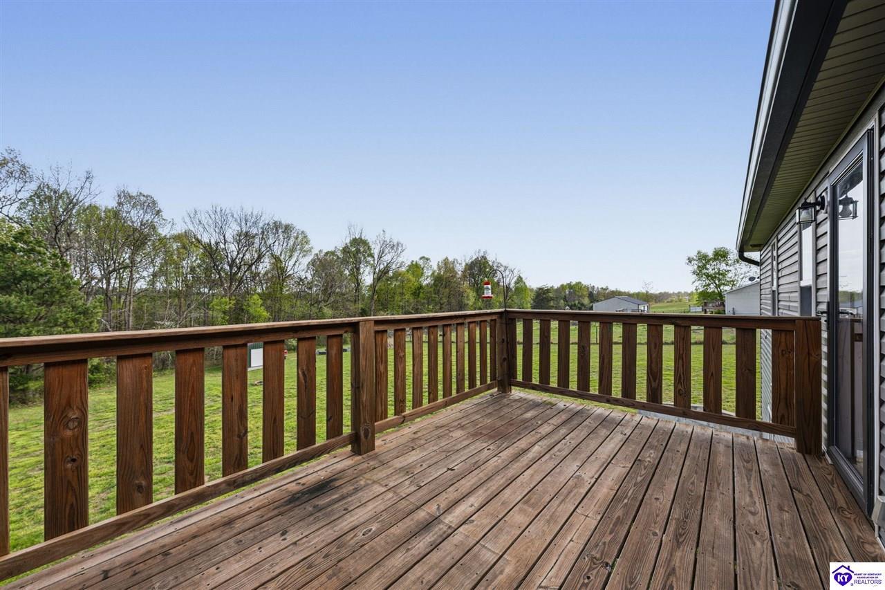 Realtor's notes: Welcome to 13560 Salt River Rd, where wide open skies, peaceful countryside, and thoughtfully designed living come together on 3 beautiful acres in Eastview. From the moment you arrive, the setting feels like home. The inviting front porch welcomes you inside to a bright and open living space where soaring vaulted ceilings in the living room create an airy, spacious feel, making it the perfect gathering place for relaxing evenings or hosting family and friends. The open-concept layout flows seamlessly into the dining area and kitchen, creating a natural hub for everyday living and entertaining. Just off the dining room, a large back deck overlooks the scenic property, offering the perfect spot for morning coffee, grilling out, or watching the sunset over your acreage. Designed with comfort and privacy in mind, the split-bedroom floorplan features a spacious primary suite retreat complete with a large walk-in closet and a private ensuite bath featuring a double vanity, creating the perfect place to unwind at the end of the day. The home offers 4 bedrooms and 2 full bathrooms, providing plenty of space for family, guests, or flexible living needs. Downstairs, the walkout basement expands the possibilities even further. A finished bonus room makes an excellent home office, media room, or potential 5th bedroom, while plumbing is already in place for a future third bathroom. The basement is mostly finished, leaving some unfinished space ready for storage, a workshop, or future customization to fit your lifestyle. A built-in storm shelter adds an extra level of security and peace of mind. Step outside and imagine the lifestyle that comes with three beautiful acres of open space. Whether it’s morning coffee with peaceful views, evenings under the Kentucky sky, or weekends spent gardening, playing, or hosting friends and family, this property offers the freedom and privacy that makes country living so special. Homes offering this combination of space, flexibility, and peaceful acreage while still being move-in ready are hard to find. 13560 Salt River Rd is ready to welcome you home.