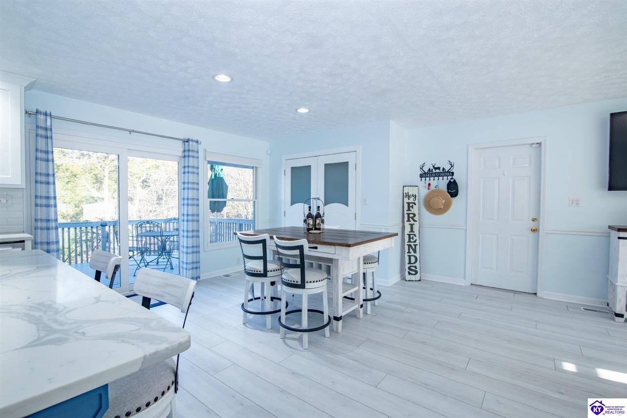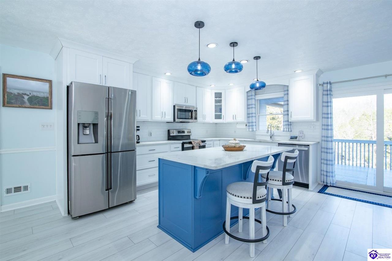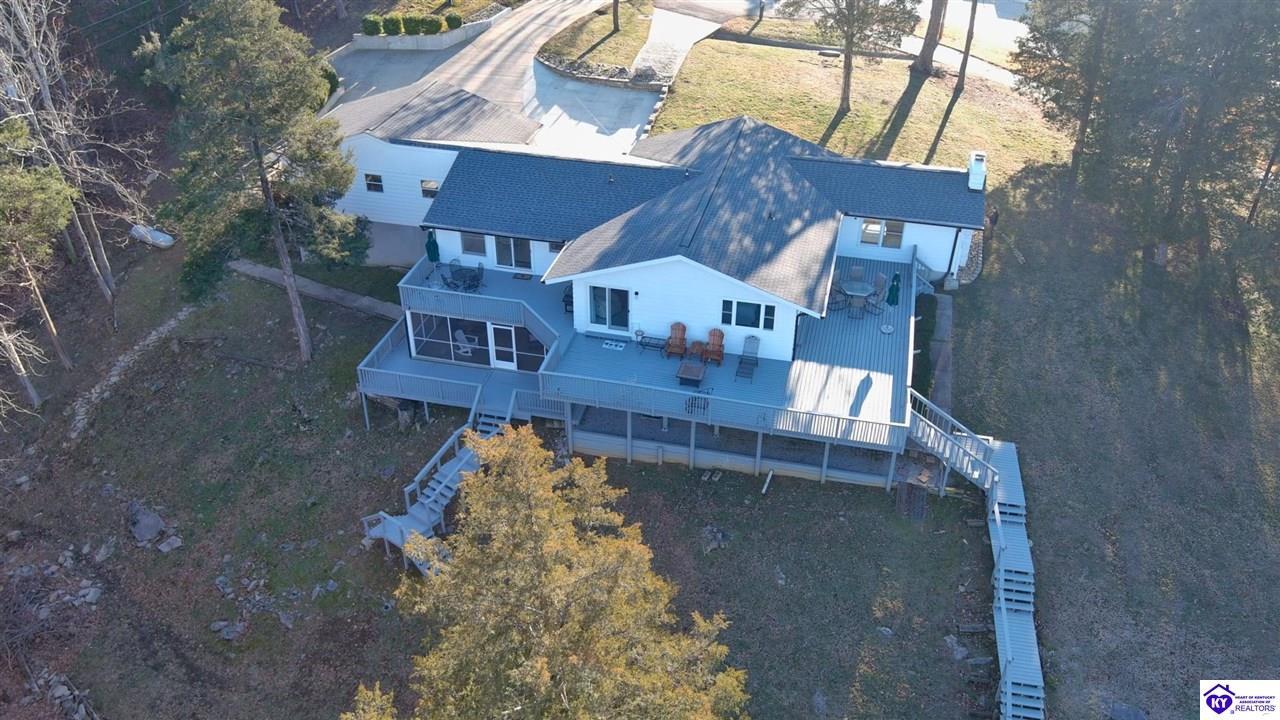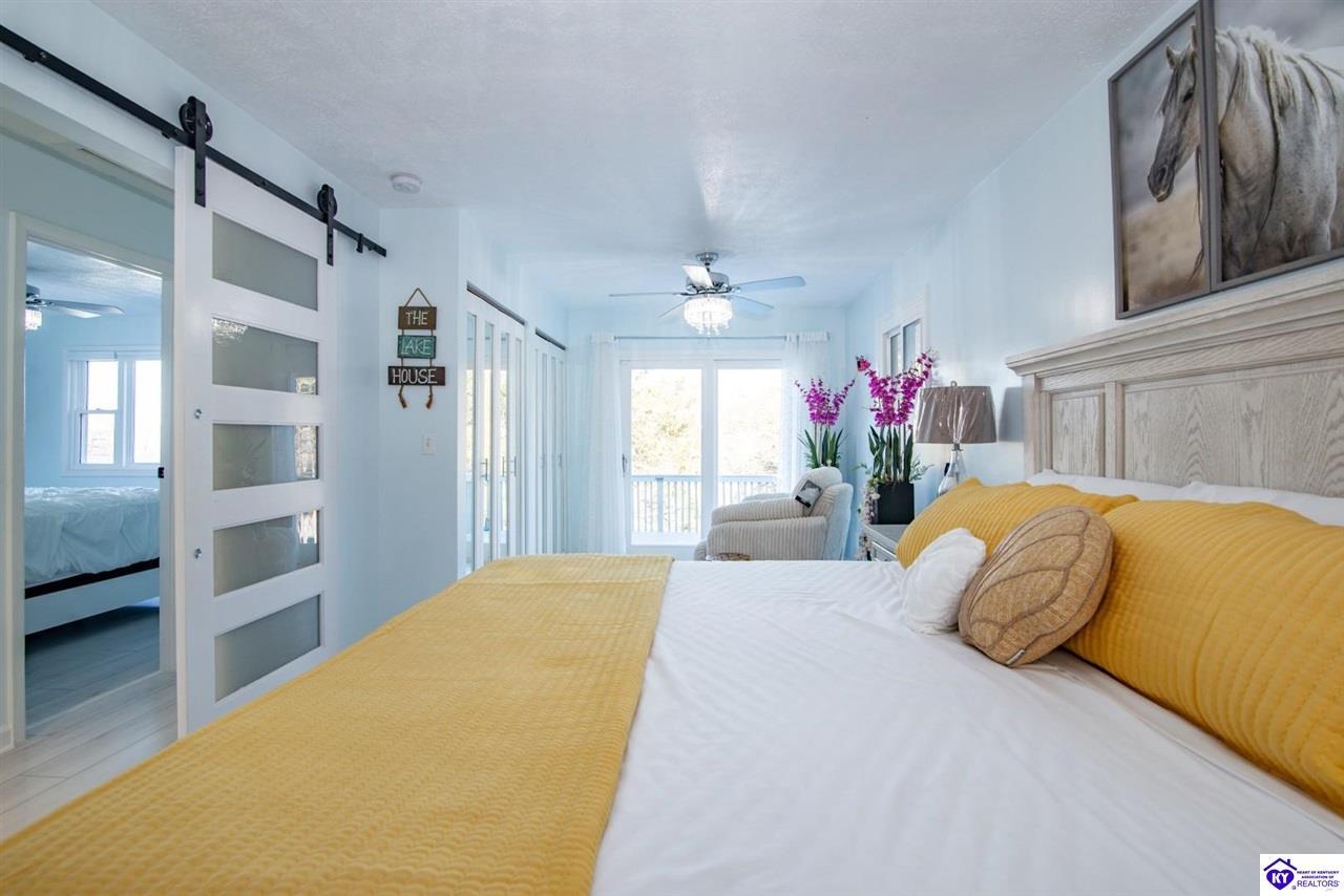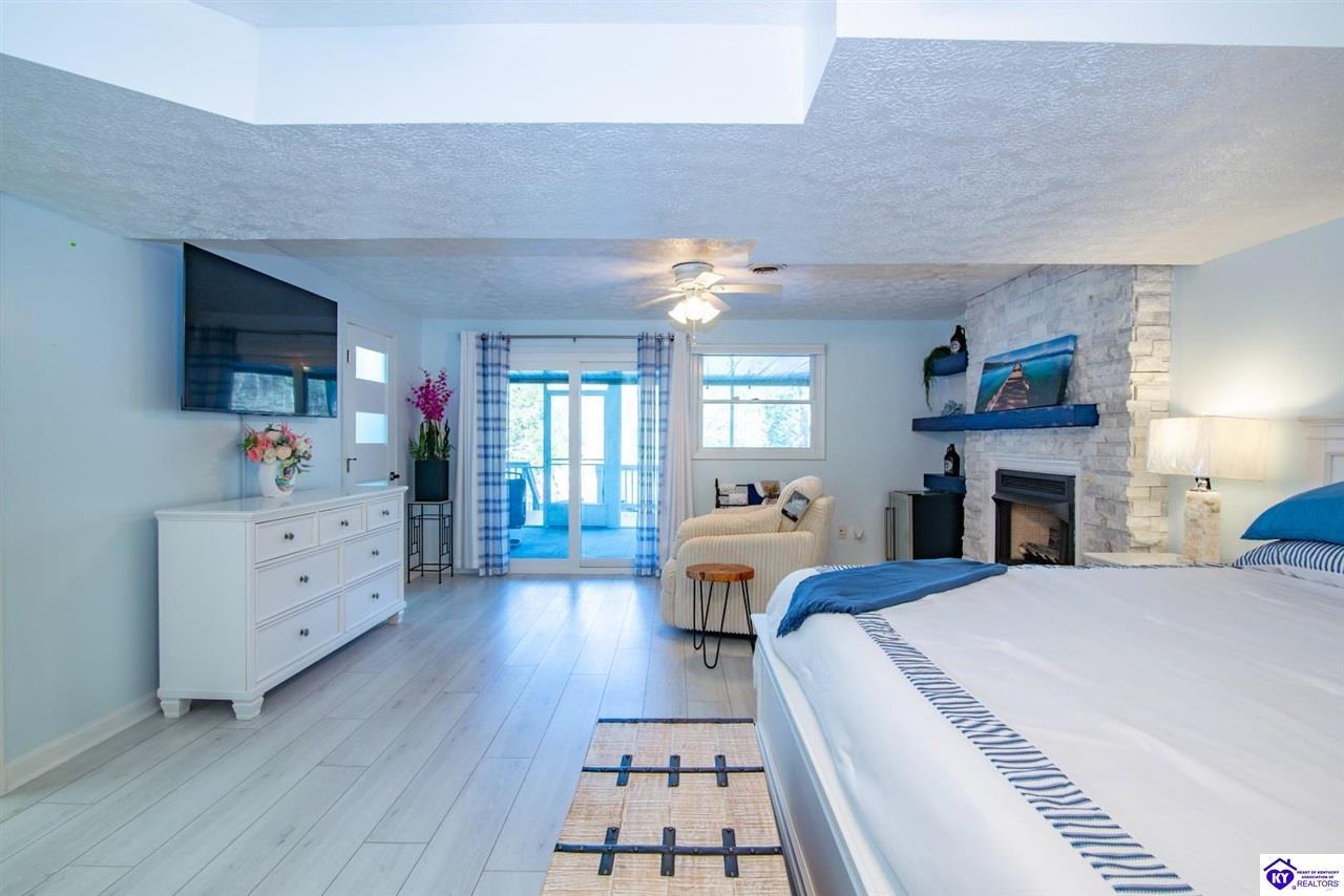 Realtor's notes: WELCOME to 210 Blueberry Point in Gated community of Doe Valley- Where Lakefront living feels like a year-round vacation. This completely renovated, one-of-a-kind home sits on nearly a 1-acre lot directly on Doe Valley Lake, offering beautiful water views and easy access with a gradual slope down to your private boat dock. This beautiful 4 bedroom- 4 bathroom home was designed to capture the Lake scenery from every point in the house. An expansive wrap around deck spans the full width of the home, perfect for entertaining or simply enjoying the peaceful Lakefront setting. Four sliding glass doors create seamless indoor-outdoor living and provide deck access from multiple areas, including 2 Primary bedrooms. Both on the main level & have beautiful en-suite bathrooms. There is also a large bathroom in hallway of the main level that will accommodate your guests nicely. Enjoy cozy evenings by the electric fireplace in family room on main level, or go downstairs to your own private living quarters that features a screened in patio, for added outdoor Lake Life enjoyment. The custom designed kitchen will take your breath away, with quartz countertops, ceiling height cabinetry, a Large island , and pantry. This home has been renovated inside and outside, including a 3 year old roof. It is Move-In-Ready. Just in time for Boating Season. Don't miss out on this Rare opportunity to own a Premier Lakefront property in Doe Valley. Schedule your private showing today and be sure to watch the attached video.