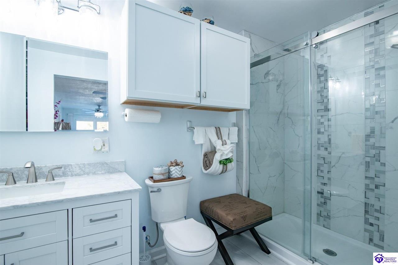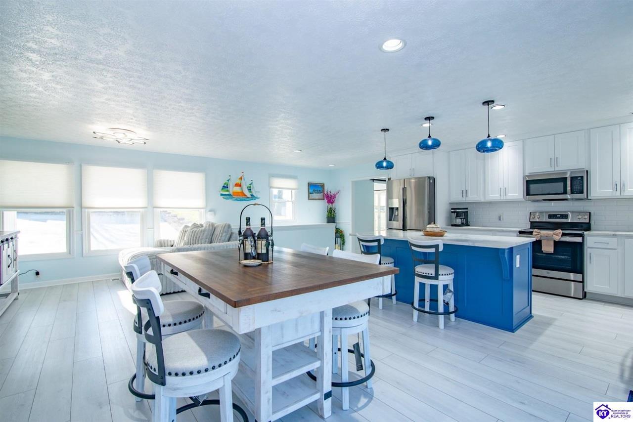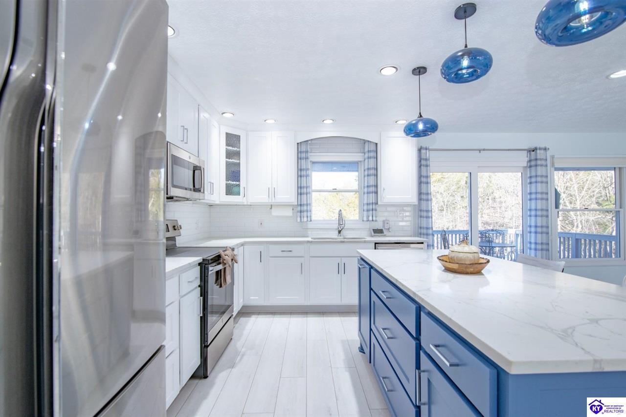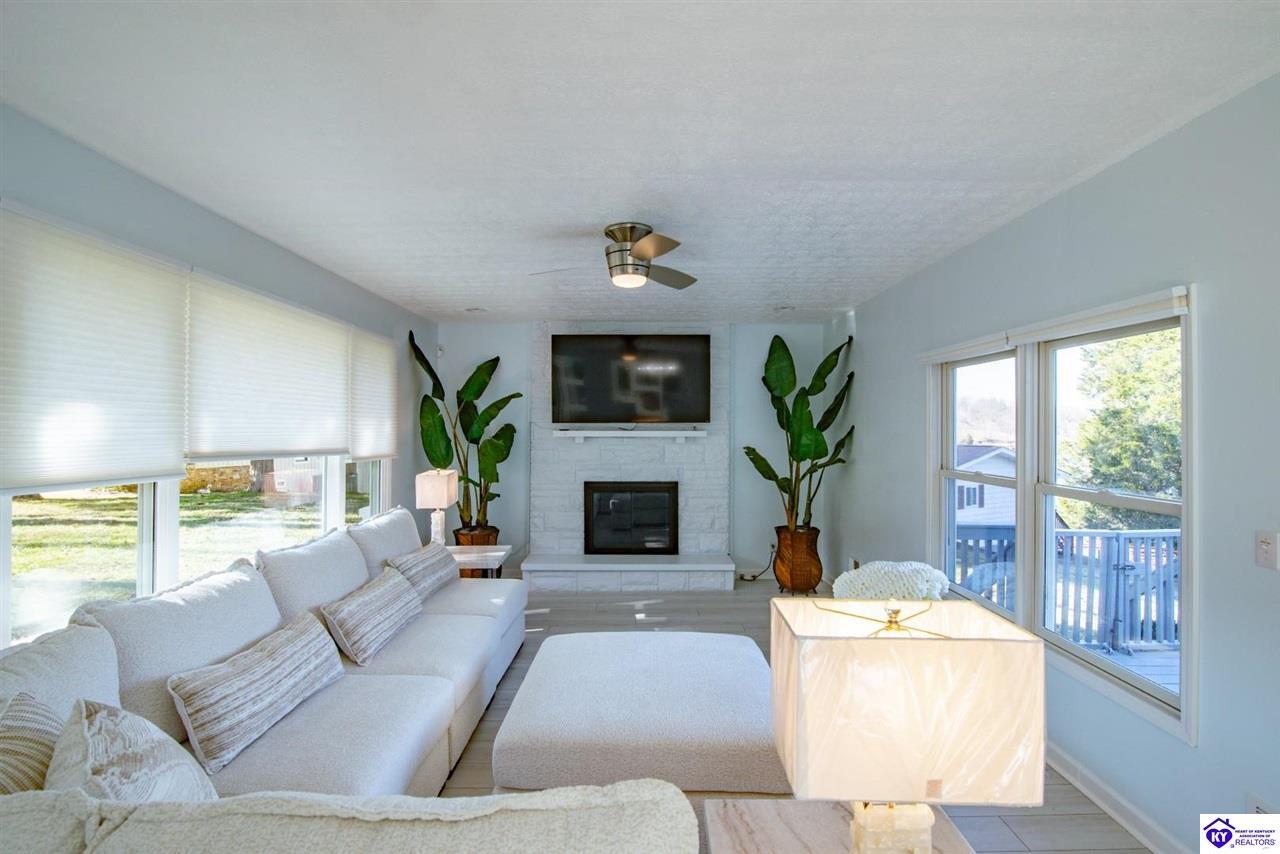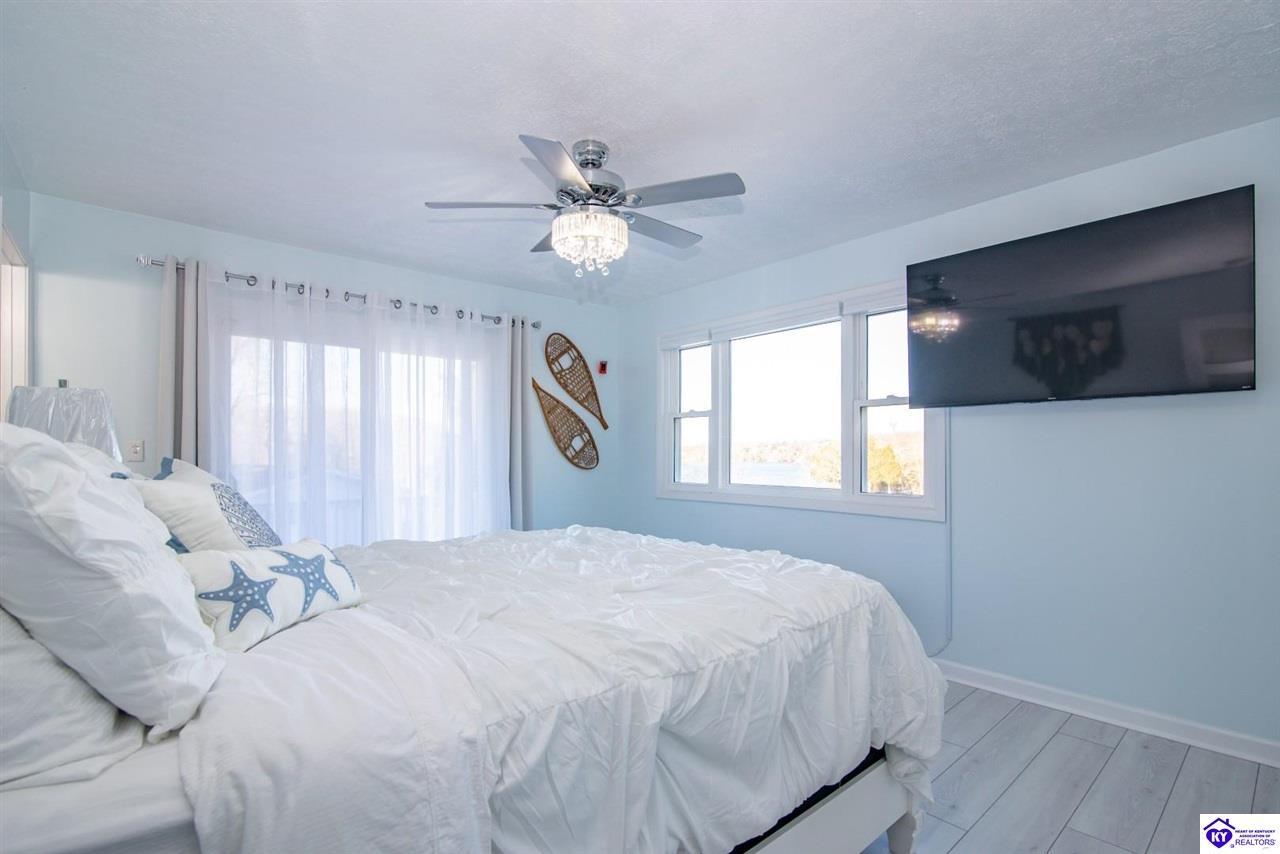 Realtor's notes: WELCOME to 210 Blueberry Point in Gated community of Doe Valley- Where Lakefront living feels like a year-round vacation. This completely renovated, one-of-a-kind home sits on nearly a 1-acre lot directly on Doe Valley Lake, offering beautiful water views and easy access with a gradual slope down to your private boat dock. This beautiful 4 bedroom- 4 bathroom home was designed to capture the Lake scenery from every point in the house. An expansive wrap around deck spans the full width of the home, perfect for entertaining or simply enjoying the peaceful Lakefront setting. Four sliding glass doors create seamless indoor-outdoor living and provide deck access from multiple areas, including 2 Primary bedrooms. Both on the main level & have beautiful en-suite bathrooms. There is also a large bathroom in hallway of the main level that will accommodate your guests nicely. Enjoy cozy evenings by the electric fireplace in family room on main level, or go downstairs to your own private living quarters that features a screened in patio, for added outdoor Lake Life enjoyment. The custom designed kitchen will take your breath away, with quartz countertops, ceiling height cabinetry, a Large island , and pantry. This home has been renovated inside and outside, including a 3 year old roof. It is Move-In-Ready. Just in time for Boating Season. Don't miss out on this Rare opportunity to own a Premier Lakefront property in Doe Valley. Schedule your private showing today and be sure to watch the attached video.