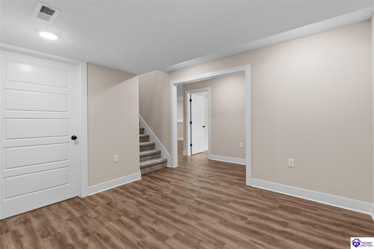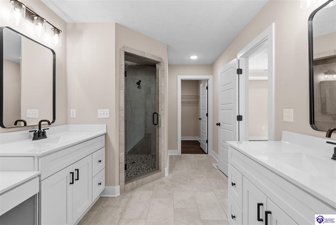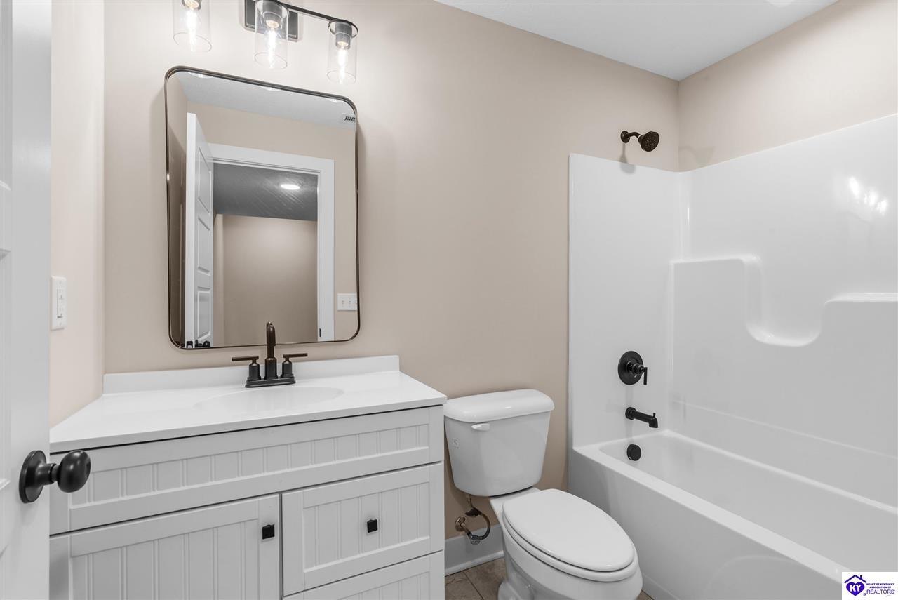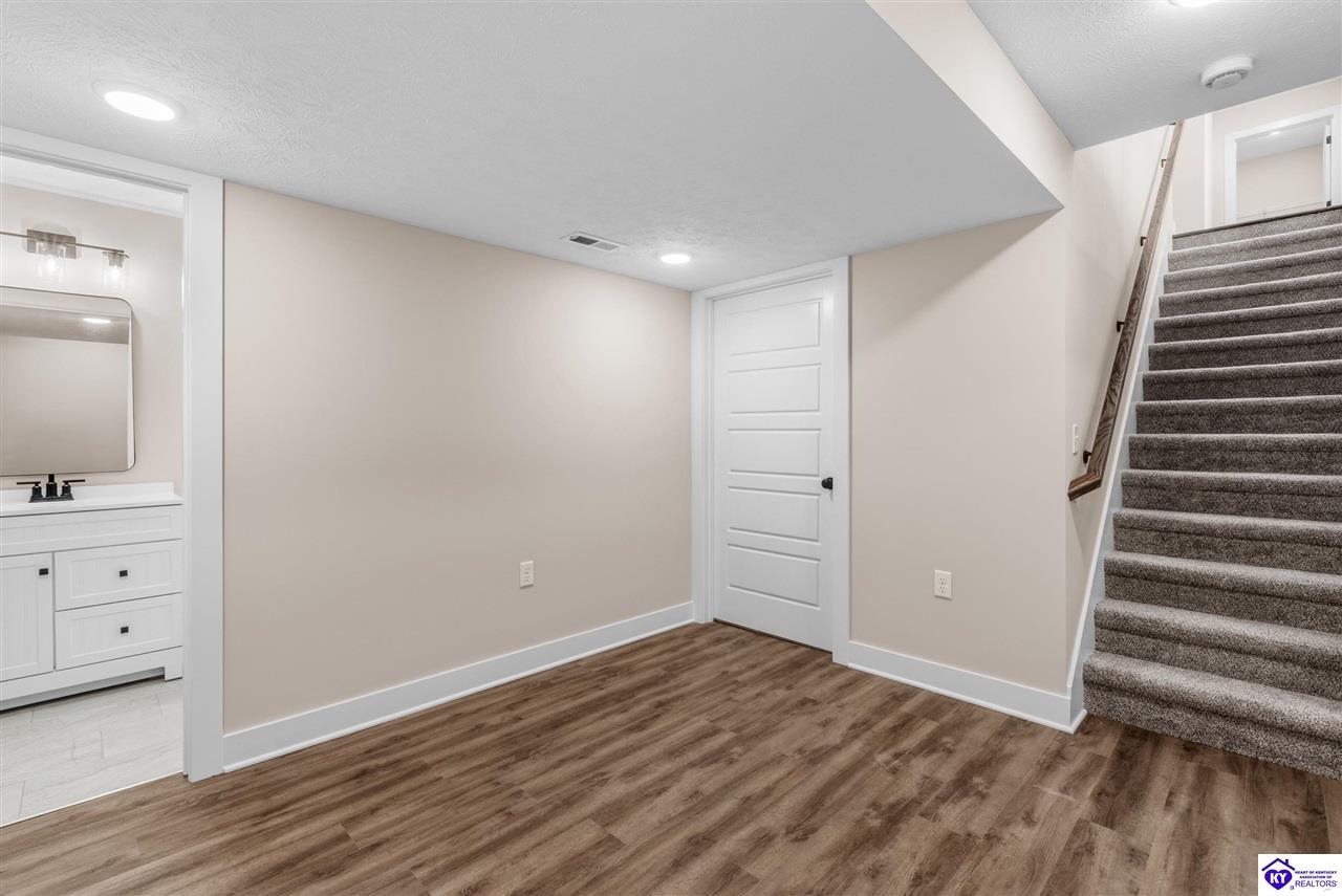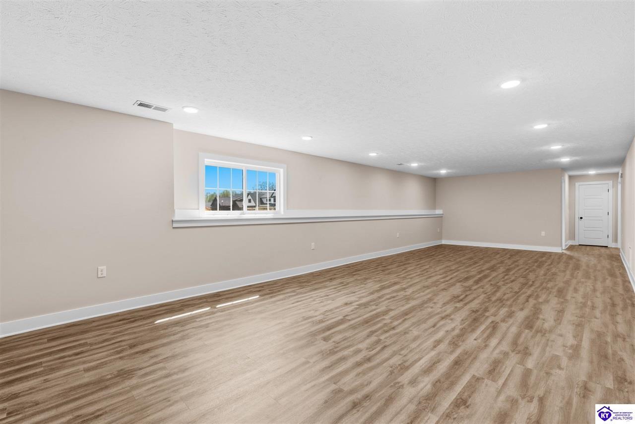 Realtor's notes: Stunning 4 Bedroom Ranch Home with Finished Basement in Elizabethtown, KY - 2,770 Sq Ft of Upgraded Living Space Welcome to this beautifully designed 4 bedroom, 3 full bath ranch home located in one of Elizabethtown's most sought-after neighborhoods. Offering 2,770 square feet of finished living space, this move-in ready home combines modern upgrades, functional design, and timeless curb appeal with stone and board-and-batten exterior accents. Ideal for growing families, multi-generational living, or buyers seeking a ranch with a finished basement in Elizabethtown, KY. Step inside to an open-concept floor plan featuring hand-scraped hardwood floors throughout the main level and soaring vaulted ceilings in the great room, creating a bright and spacious atmosphere. The seamless flow between the living room, dining area, and kitchen makes this home perfect for entertaining and everyday living. The kitchen is fully equipped with granite countertops, stainless steel appliances, ample cabinetry, and generous prep space—offering both style and functionality for modern living. The spacious primary suite features a tray ceiling and comfortably fits a king-size bedroom set. The en-suite bathroom includes a walk-in tile shower, dual vanities with knee space, and excellent storage, along with a large walk-in closet. Additional bedrooms are well-sized, and all bathrooms feature durable tile flooring for easy maintenance and long-term value. The finished basement expands your living space with premium LVP flooring, a large family room ideal for a media room or recreation area, plus a fourth bedroom and full bathroom—perfect for guests, a home office, gym, or in-law suite. Ample storage space adds even more functionality. Exterior features include a covered front porch and a back deck, perfect for outdoor entertaining or relaxing. The 2-car garage with epoxy flooring provides a clean, durable, and low-maintenance finish. Key Features: ranch home Elizabethtown KY, finished basement, 4 bedrooms, 3 bathrooms, 2,770 sq ft, granite countertops, stainless steel appliances, hardwood floors, LVP flooring, vaulted ceilings, tray ceiling, walk-in closets, tile shower, epoxy garage floor, open-concept layout. Located just minutes from shopping, dining, schools, and major commuting routes, this home offers convenience, space, and high-end finishes in one of Elizabethtown’s most desirable areas. Schedule your private showing today and experience this exceptional home firsthand.