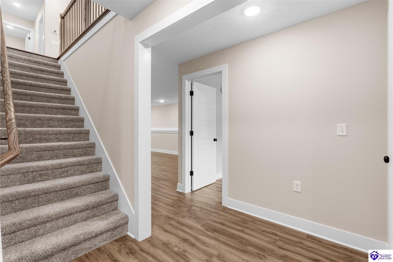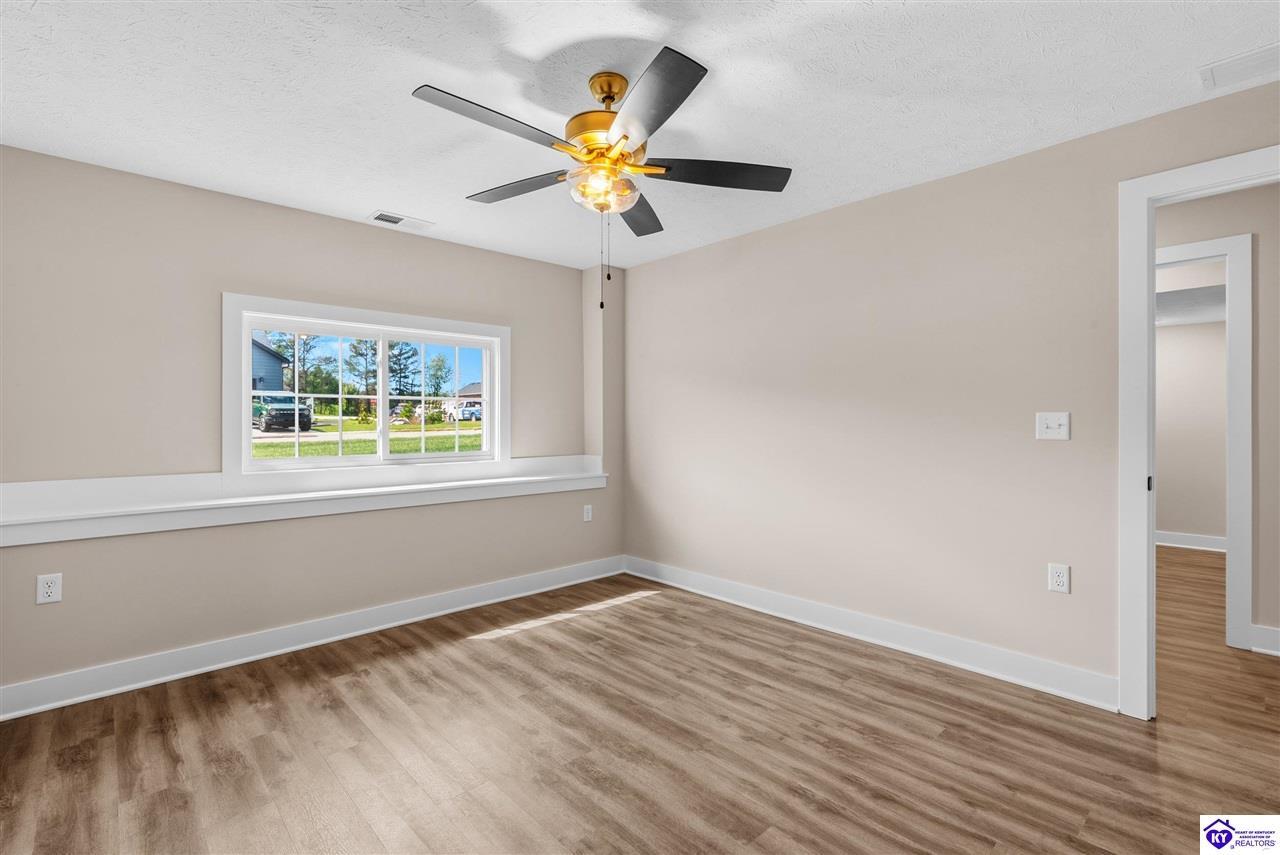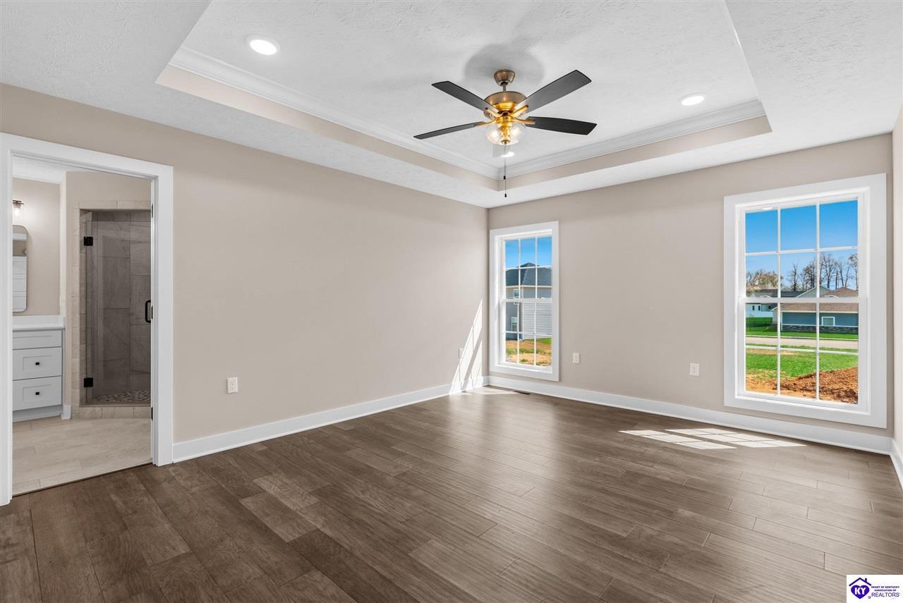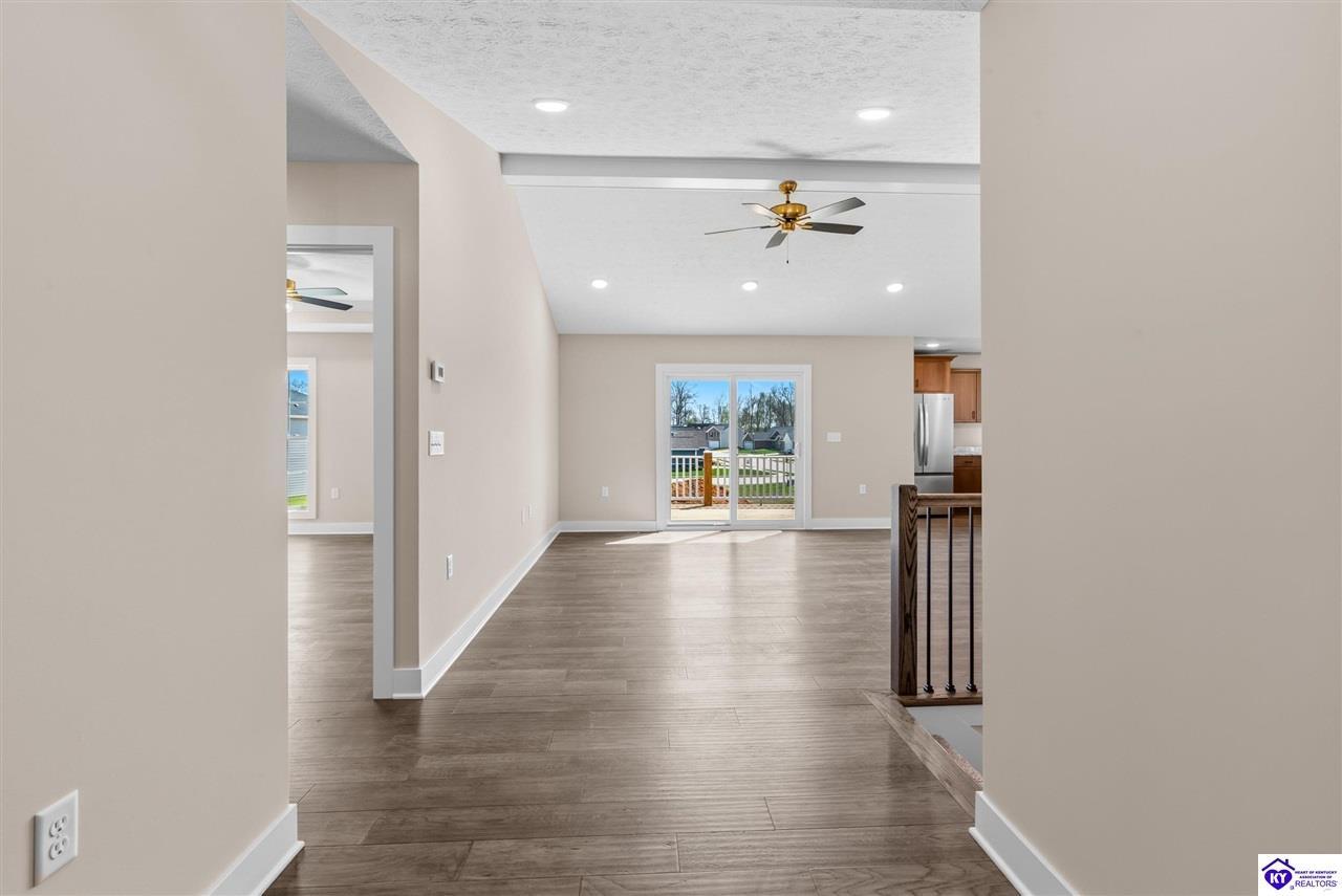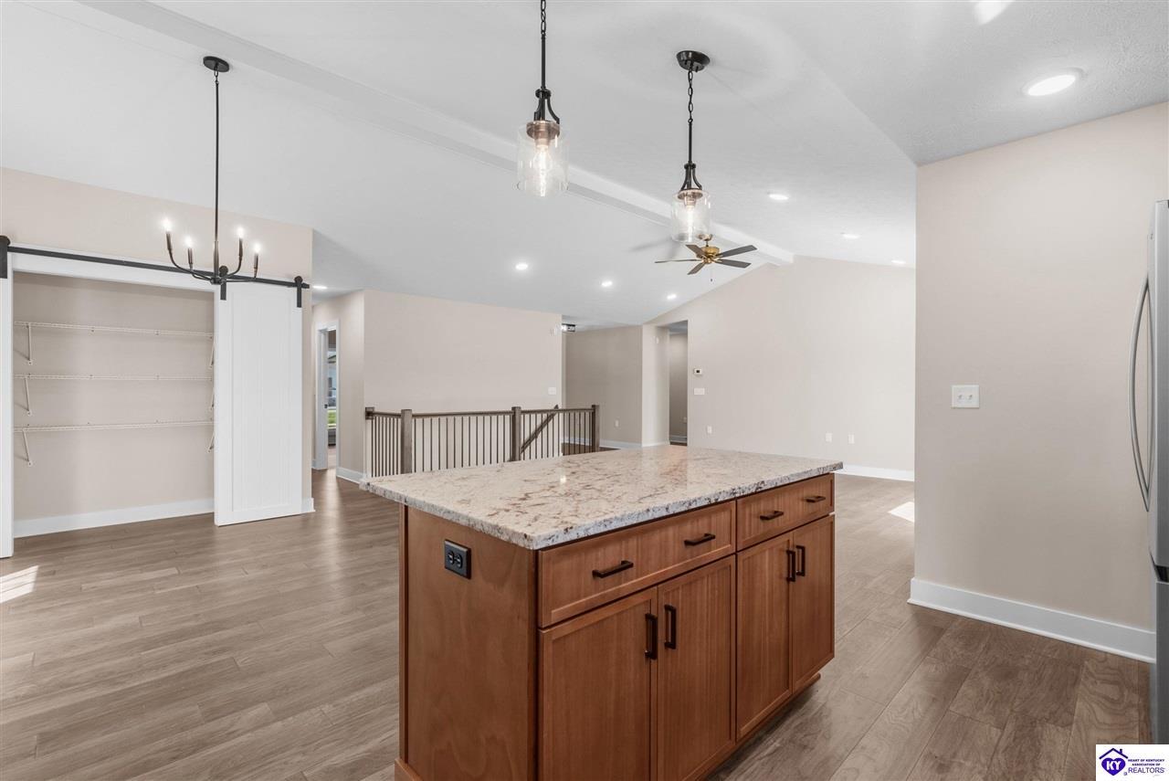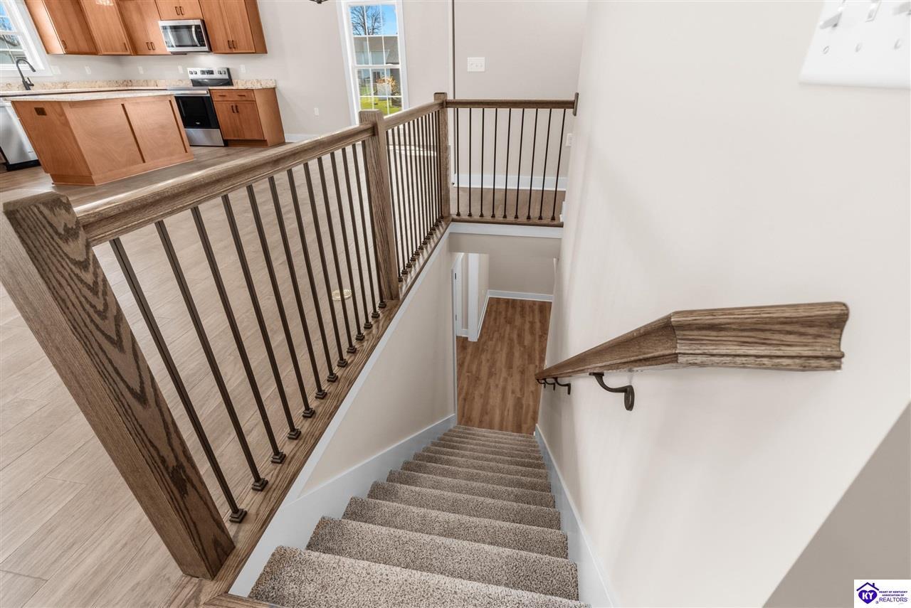 Realtor's notes: Stunning 4 Bedroom Ranch Home with Finished Basement in Elizabethtown, KY - 2,770 Sq Ft of Upgraded Living Space Welcome to this beautifully designed 4 bedroom, 3 full bath ranch home located in one of Elizabethtown's most sought-after neighborhoods. Offering 2,770 square feet of finished living space, this move-in ready home combines modern upgrades, functional design, and timeless curb appeal with stone and board-and-batten exterior accents. Ideal for growing families, multi-generational living, or buyers seeking a ranch with a finished basement in Elizabethtown, KY. Step inside to an open-concept floor plan featuring hand-scraped hardwood floors throughout the main level and soaring vaulted ceilings in the great room, creating a bright and spacious atmosphere. The seamless flow between the living room, dining area, and kitchen makes this home perfect for entertaining and everyday living. The kitchen is fully equipped with granite countertops, stainless steel appliances, ample cabinetry, and generous prep space—offering both style and functionality for modern living. The spacious primary suite features a tray ceiling and comfortably fits a king-size bedroom set. The en-suite bathroom includes a walk-in tile shower, dual vanities with knee space, and excellent storage, along with a large walk-in closet. Additional bedrooms are well-sized, and all bathrooms feature durable tile flooring for easy maintenance and long-term value. The finished basement expands your living space with premium LVP flooring, a large family room ideal for a media room or recreation area, plus a fourth bedroom and full bathroom—perfect for guests, a home office, gym, or in-law suite. Ample storage space adds even more functionality. Exterior features include a covered front porch and a back deck, perfect for outdoor entertaining or relaxing. The 2-car garage with epoxy flooring provides a clean, durable, and low-maintenance finish. Key Features: ranch home Elizabethtown KY, finished basement, 4 bedrooms, 3 bathrooms, 2,770 sq ft, granite countertops, stainless steel appliances, hardwood floors, LVP flooring, vaulted ceilings, tray ceiling, walk-in closets, tile shower, epoxy garage floor, open-concept layout. Located just minutes from shopping, dining, schools, and major commuting routes, this home offers convenience, space, and high-end finishes in one of Elizabethtown’s most desirable areas. Schedule your private showing today and experience this exceptional home firsthand.