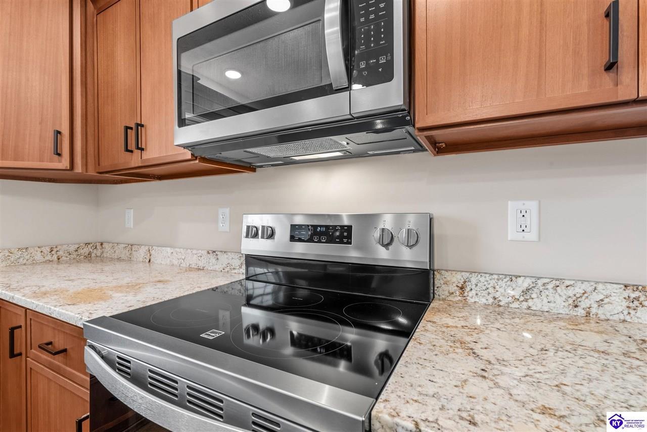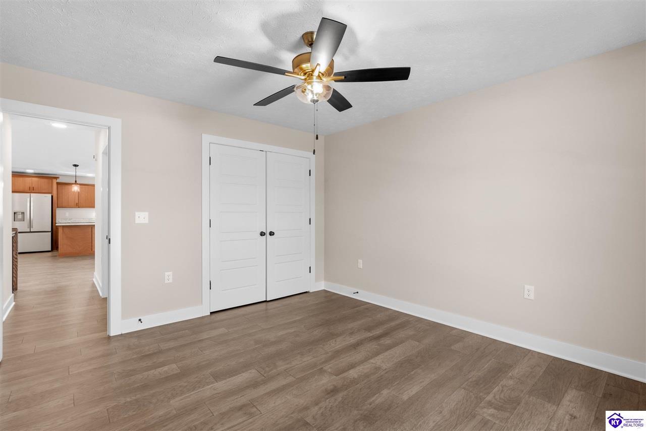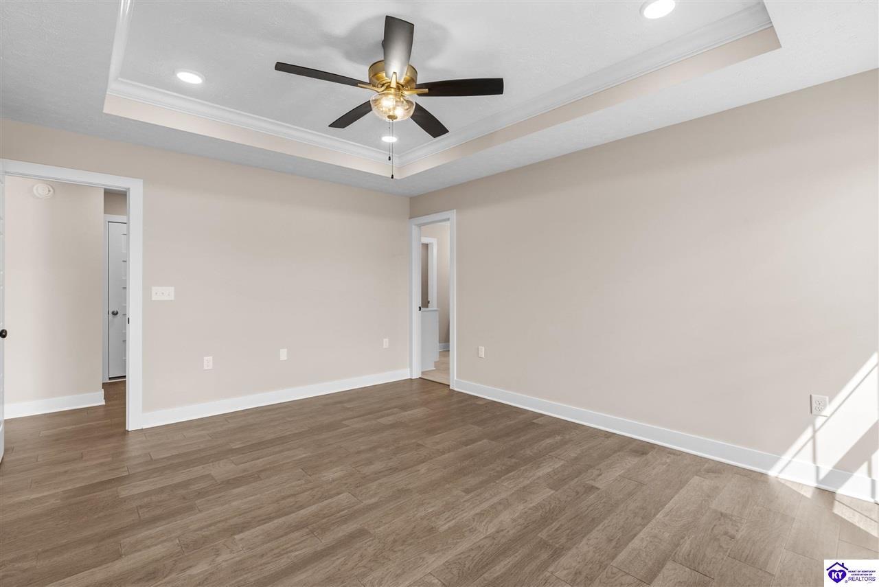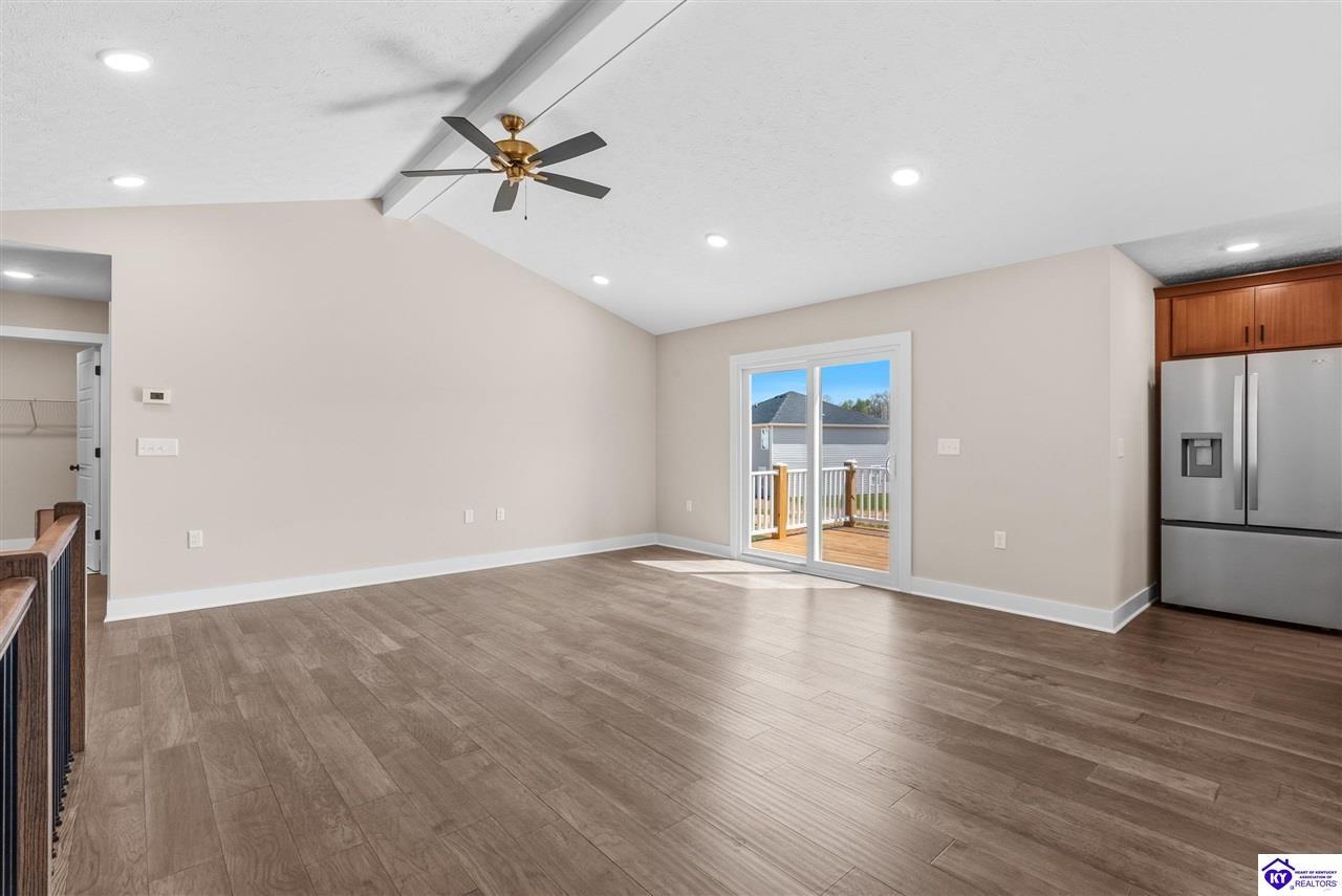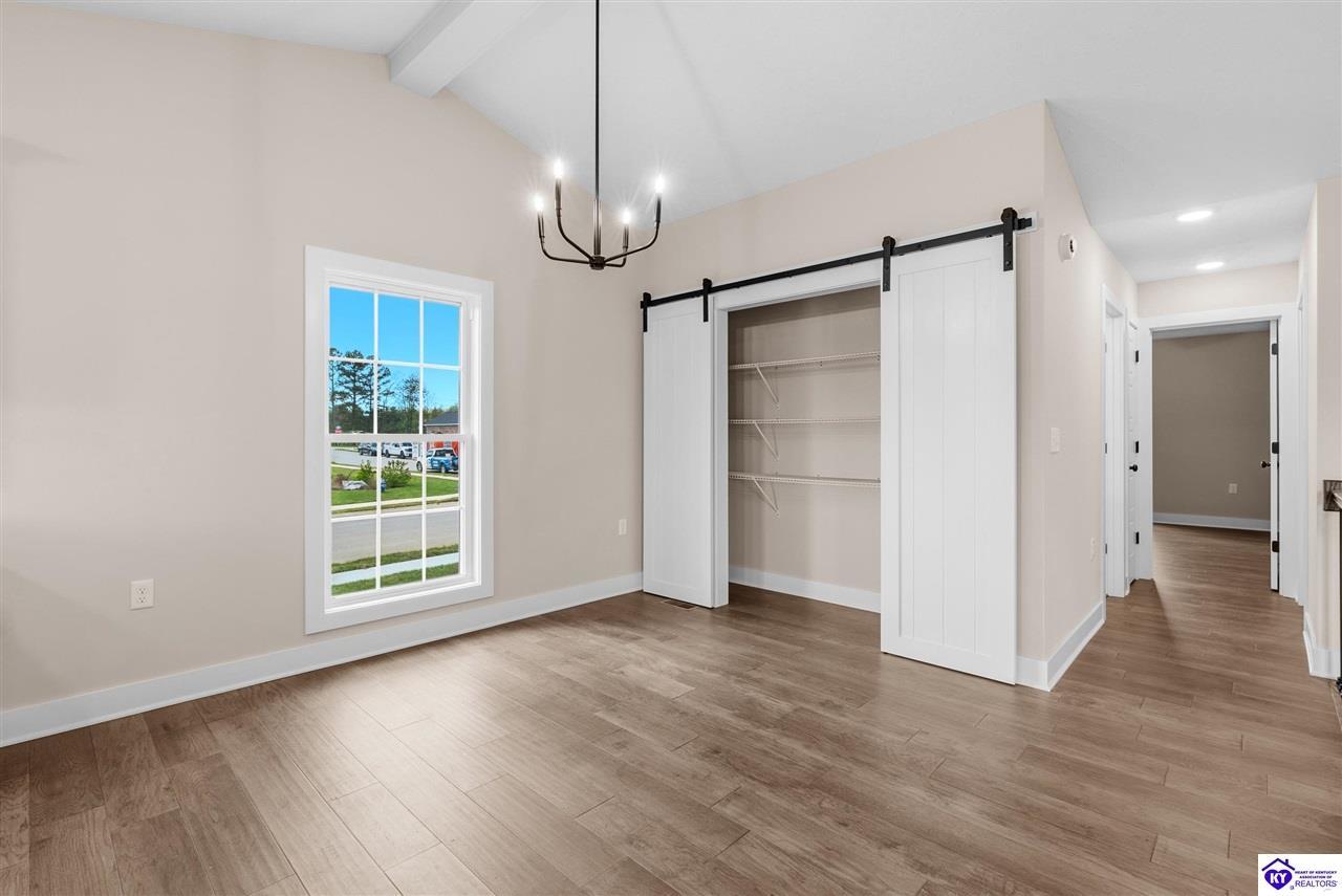 Realtor's notes: Stunning 4 Bedroom Ranch Home with Finished Basement in Elizabethtown, KY - 2,770 Sq Ft of Upgraded Living Space Welcome to this beautifully designed 4 bedroom, 3 full bath ranch home located in one of Elizabethtown's most sought-after neighborhoods. Offering 2,770 square feet of finished living space, this move-in ready home combines modern upgrades, functional design, and timeless curb appeal with stone and board-and-batten exterior accents. Ideal for growing families, multi-generational living, or buyers seeking a ranch with a finished basement in Elizabethtown, KY. Step inside to an open-concept floor plan featuring hand-scraped hardwood floors throughout the main level and soaring vaulted ceilings in the great room, creating a bright and spacious atmosphere. The seamless flow between the living room, dining area, and kitchen makes this home perfect for entertaining and everyday living. The kitchen is fully equipped with granite countertops, stainless steel appliances, ample cabinetry, and generous prep space—offering both style and functionality for modern living. The spacious primary suite features a tray ceiling and comfortably fits a king-size bedroom set. The en-suite bathroom includes a walk-in tile shower, dual vanities with knee space, and excellent storage, along with a large walk-in closet. Additional bedrooms are well-sized, and all bathrooms feature durable tile flooring for easy maintenance and long-term value. The finished basement expands your living space with premium LVP flooring, a large family room ideal for a media room or recreation area, plus a fourth bedroom and full bathroom—perfect for guests, a home office, gym, or in-law suite. Ample storage space adds even more functionality. Exterior features include a covered front porch and a back deck, perfect for outdoor entertaining or relaxing. The 2-car garage with epoxy flooring provides a clean, durable, and low-maintenance finish. Key Features: ranch home Elizabethtown KY, finished basement, 4 bedrooms, 3 bathrooms, 2,770 sq ft, granite countertops, stainless steel appliances, hardwood floors, LVP flooring, vaulted ceilings, tray ceiling, walk-in closets, tile shower, epoxy garage floor, open-concept layout. Located just minutes from shopping, dining, schools, and major commuting routes, this home offers convenience, space, and high-end finishes in one of Elizabethtown’s most desirable areas. Schedule your private showing today and experience this exceptional home firsthand.