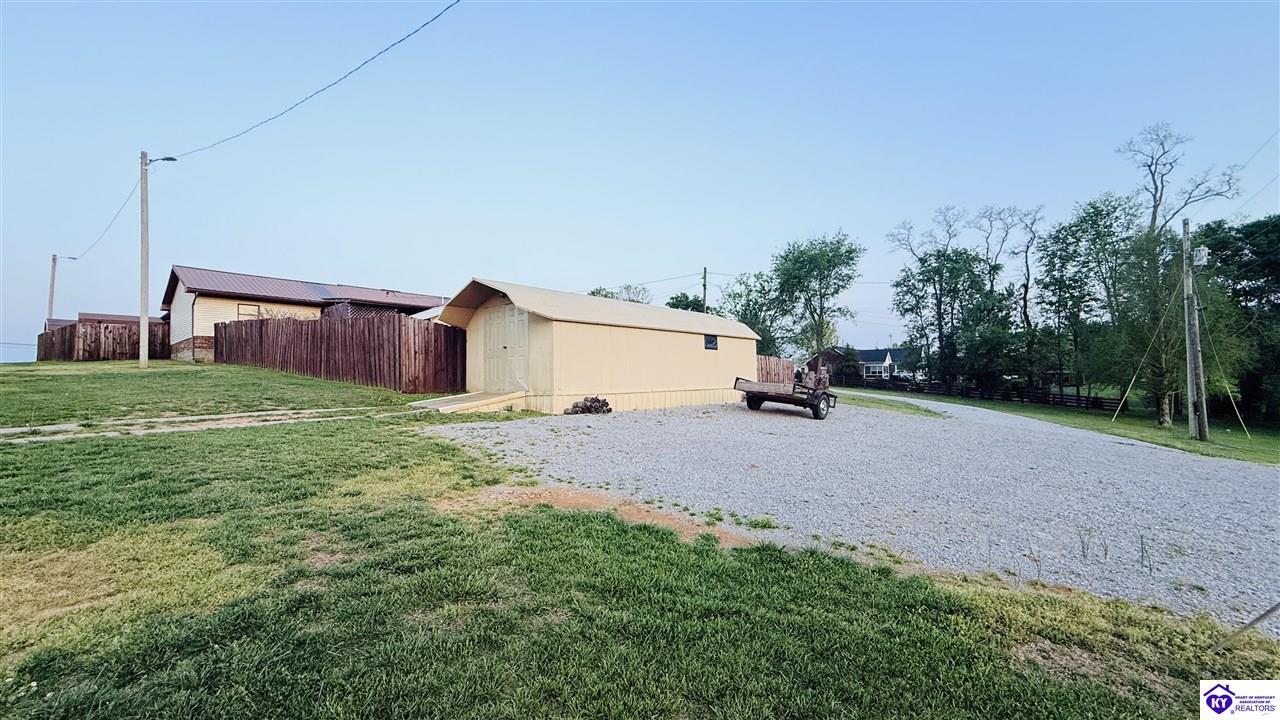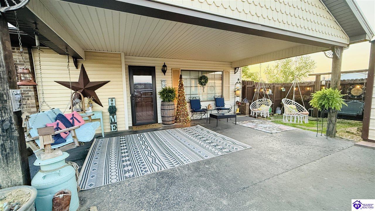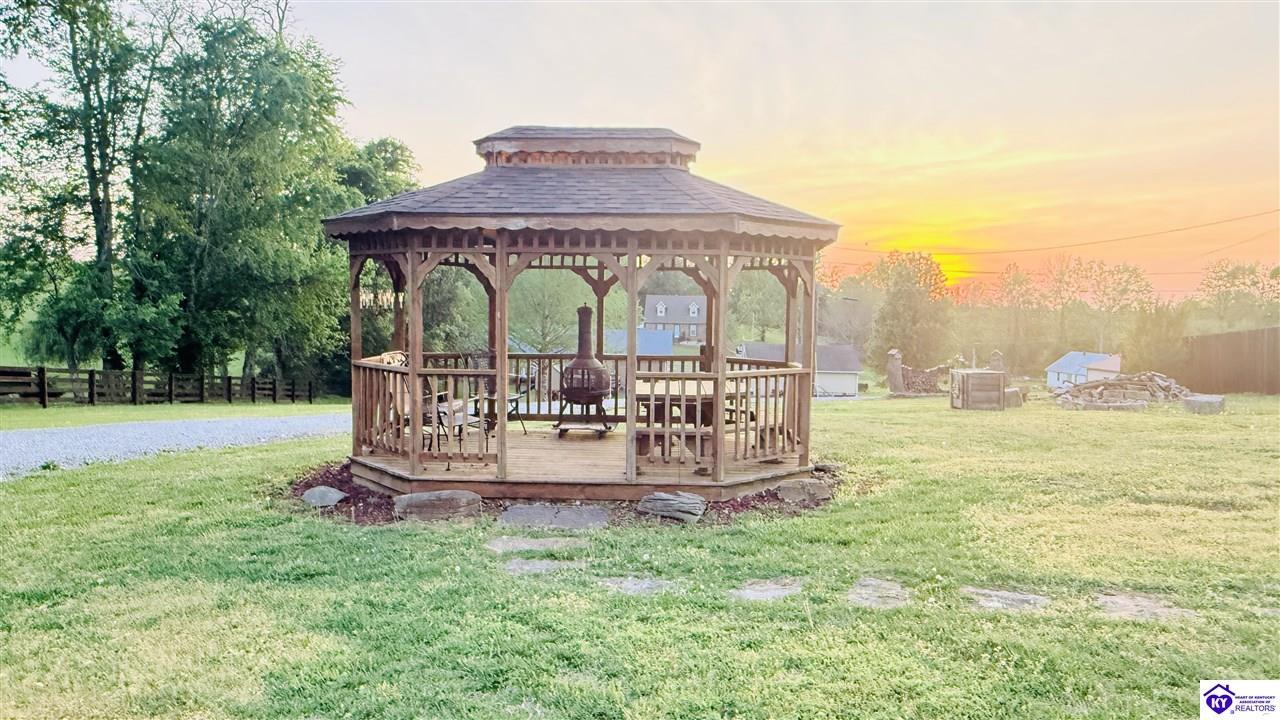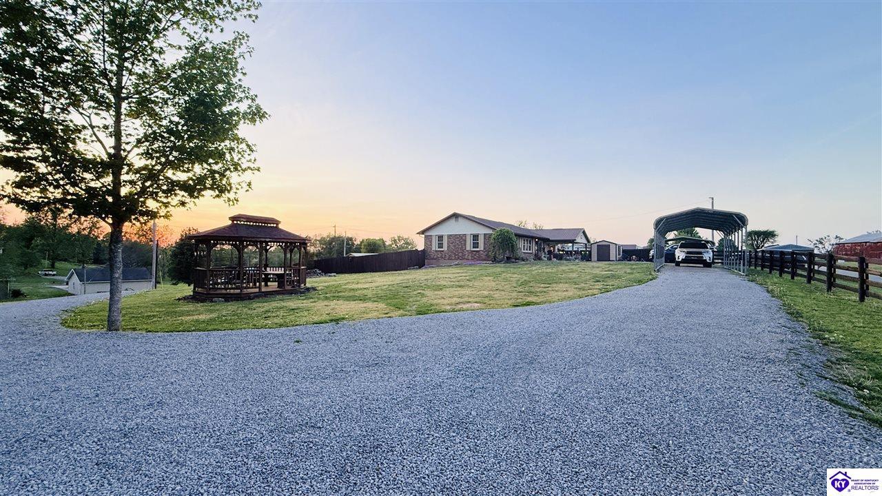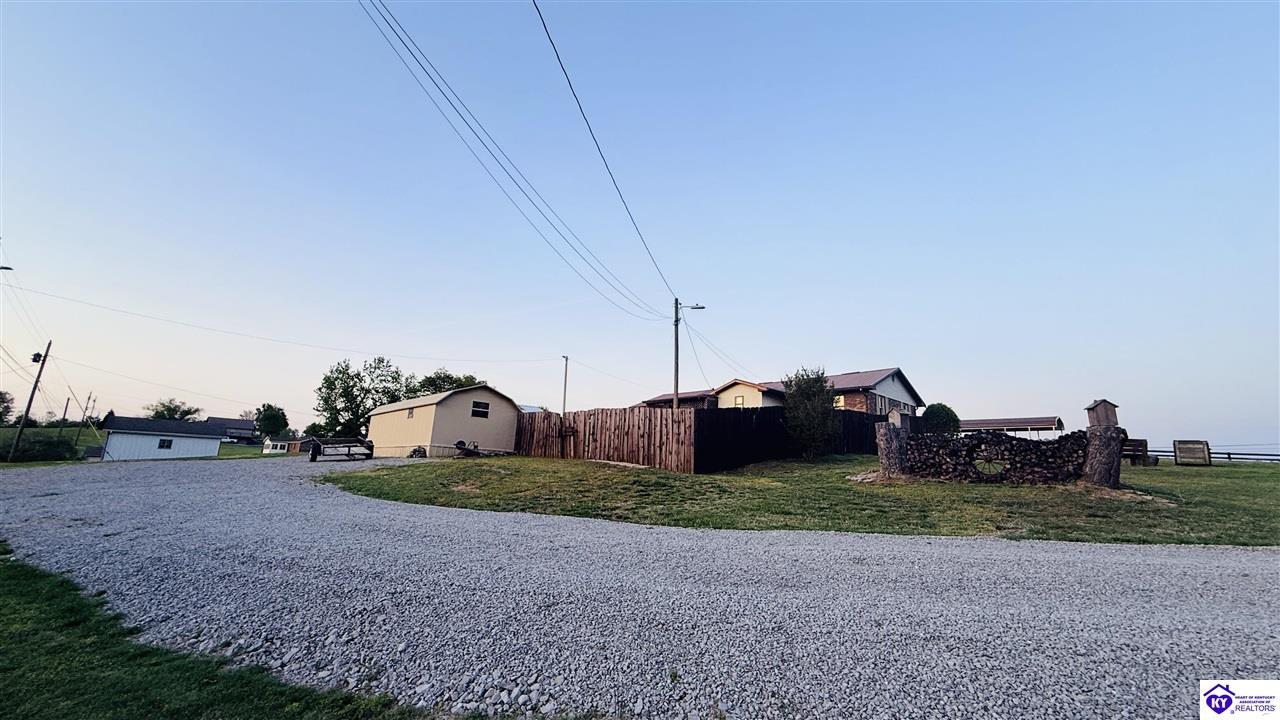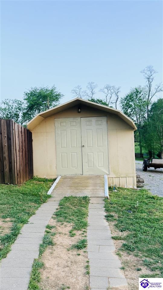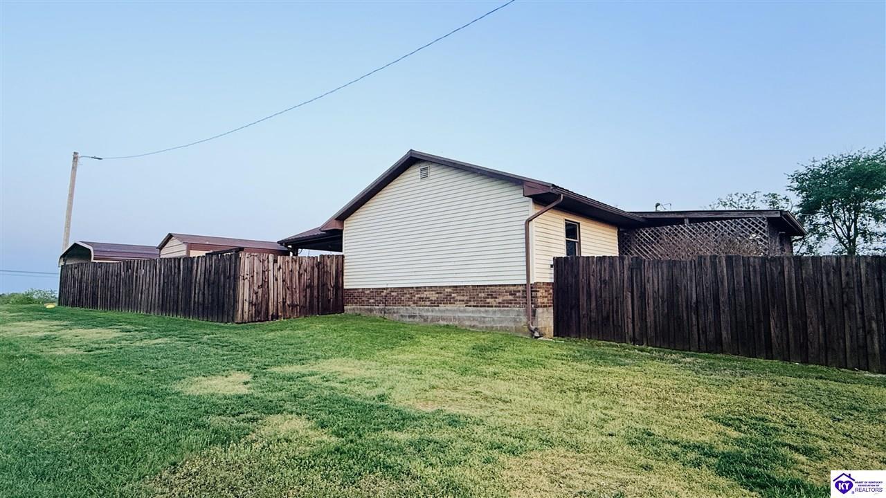 Realtor's notes: Move-in ready and packed with features, this spacious 4-bedroom, 1.5-bath home offers comfort, functionality, and outdoor living at its best. A quaint foyer welcomes you inside, setting the tone for the warm and inviting layout throughout. The half bath is conveniently located in the laundry room just off the kitchen, which features classic oak cabinetry and easy flow into the main living area. Step outside to enjoy a covered back porch overlooking a fully privacy-fenced backyard—perfect for relaxing or entertaining. The property includes three storage buildings, all with electric, including a large workshop, plus two oversized multi-car portable carports for ample covered parking. The outdoor space is a true highlight, featuring a gazebo, industrial-grade swing set (to remain), firepit with seating area, and beautifully maintained landscaping. A wrap-around gravel drive provides easy access to the rear workshop, while a charming wooden plank fence lines the roadway for added curb appeal. Inside, one bedroom showcases unique hand-painted artistic wall and ceiling details, adding character you won’t find anywhere else. Enjoy a peaceful country setting with the convenience of being just minutes from shopping, restaurants, a golf course, hospital, and local entertainment. All data assumed correct; to be verified by buyer prior to offer.