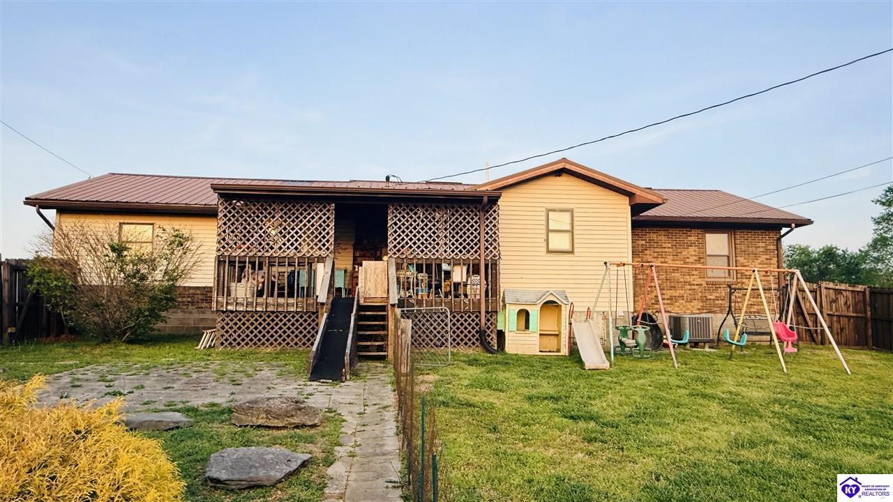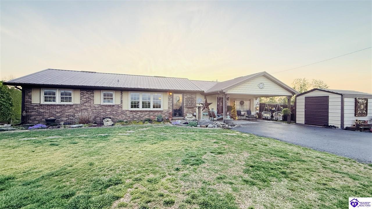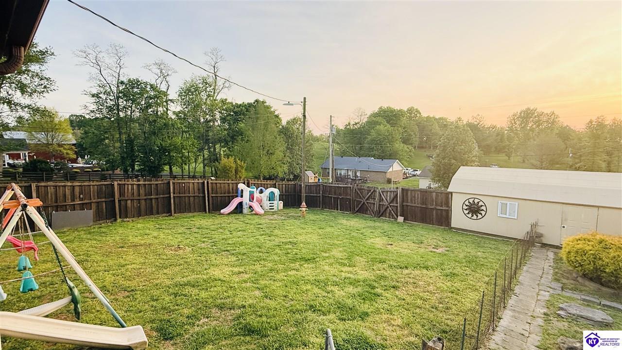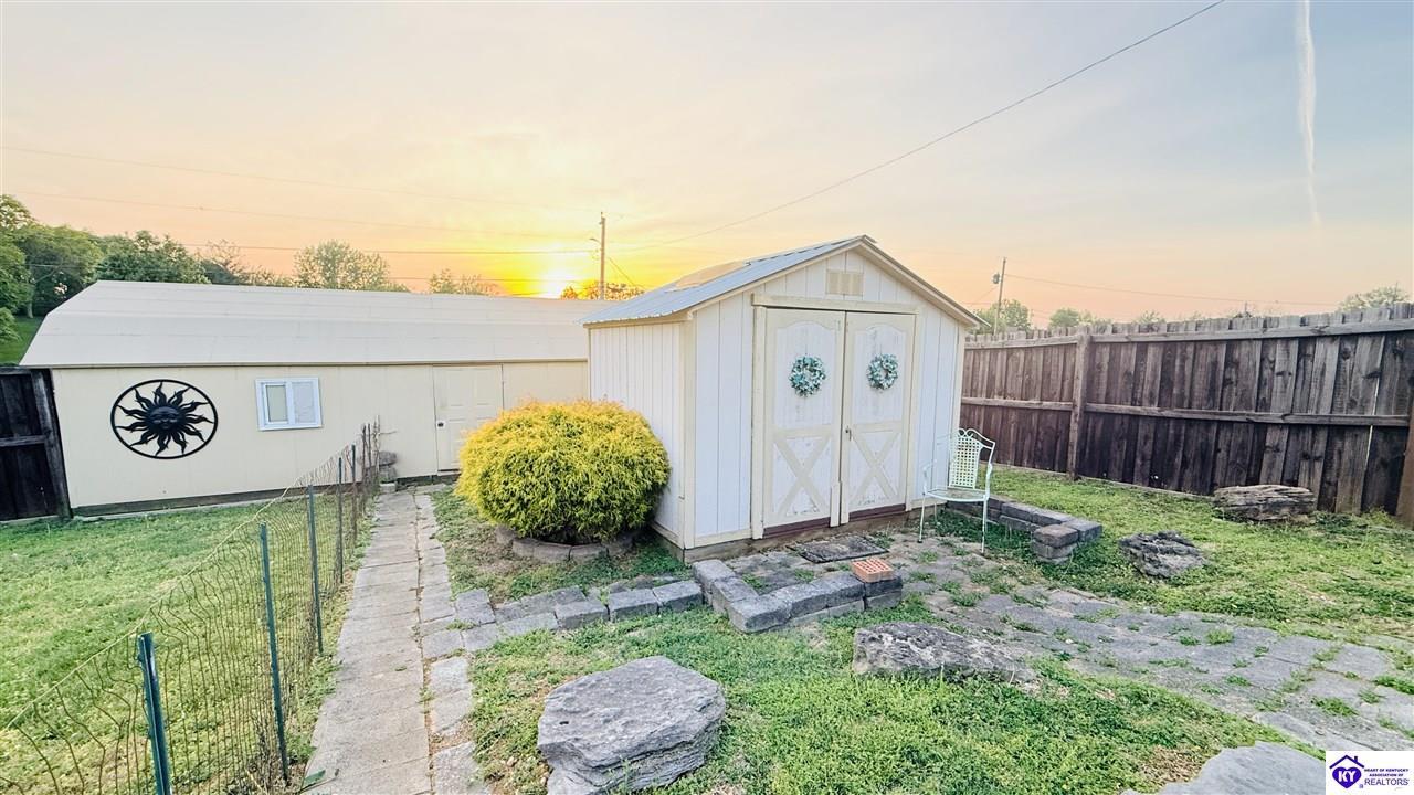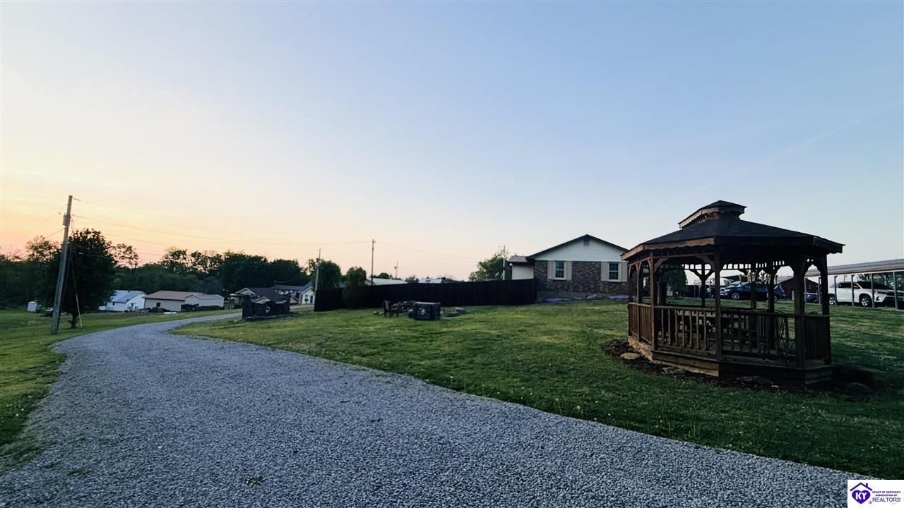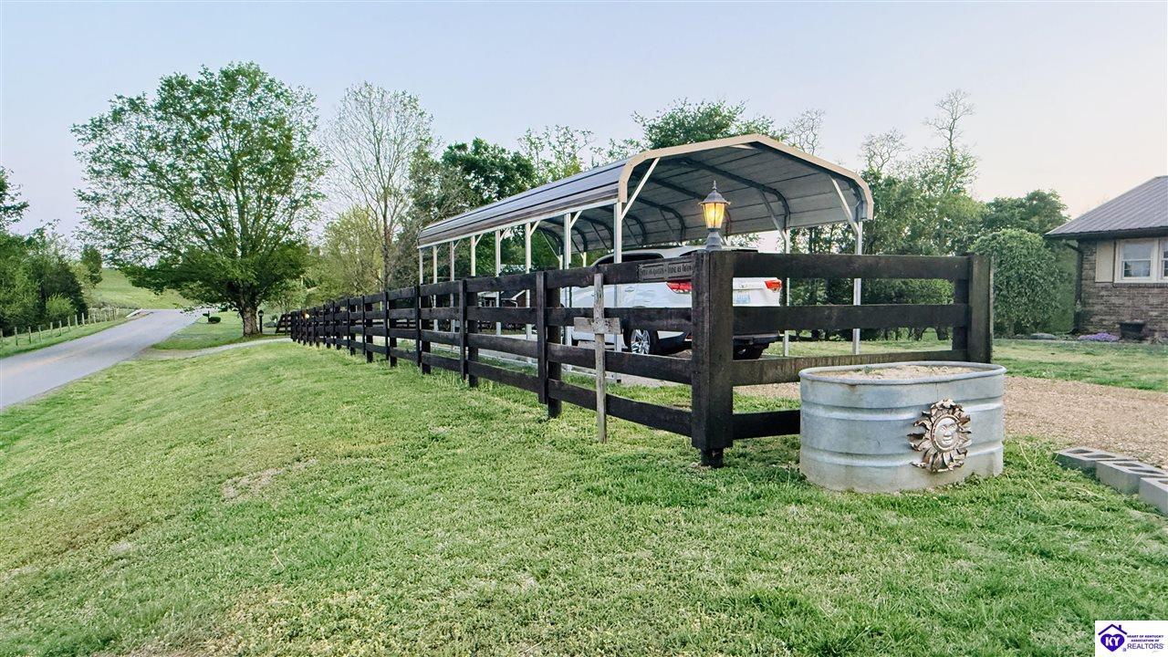 Realtor's notes: Move-in ready and packed with features, this spacious 4-bedroom, 1.5-bath home offers comfort, functionality, and outdoor living at its best. A quaint foyer welcomes you inside, setting the tone for the warm and inviting layout throughout. The half bath is conveniently located in the laundry room just off the kitchen, which features classic oak cabinetry and easy flow into the main living area. Step outside to enjoy a covered back porch overlooking a fully privacy-fenced backyard—perfect for relaxing or entertaining. The property includes three storage buildings, all with electric, including a large workshop, plus two oversized multi-car portable carports for ample covered parking. The outdoor space is a true highlight, featuring a gazebo, industrial-grade swing set (to remain), firepit with seating area, and beautifully maintained landscaping. A wrap-around gravel drive provides easy access to the rear workshop, while a charming wooden plank fence lines the roadway for added curb appeal. Inside, one bedroom showcases unique hand-painted artistic wall and ceiling details, adding character you won’t find anywhere else. Enjoy a peaceful country setting with the convenience of being just minutes from shopping, restaurants, a golf course, hospital, and local entertainment. All data assumed correct; to be verified by buyer prior to offer.