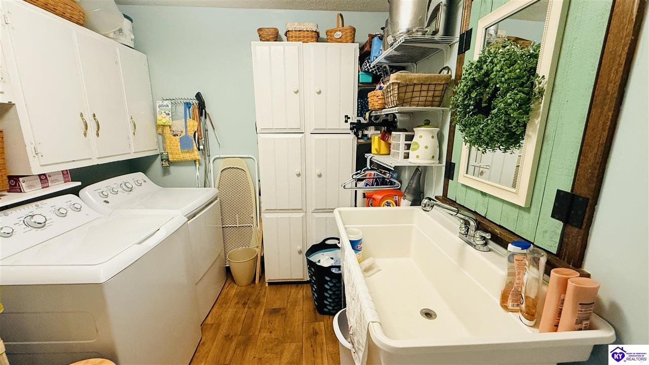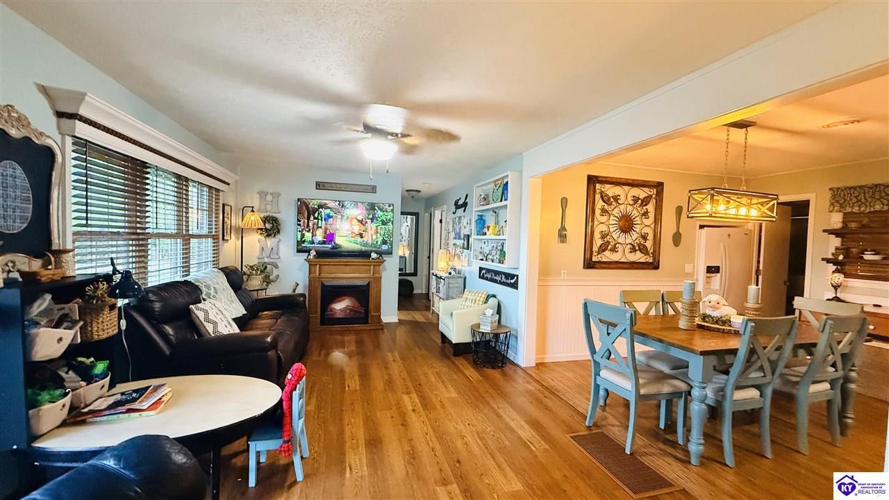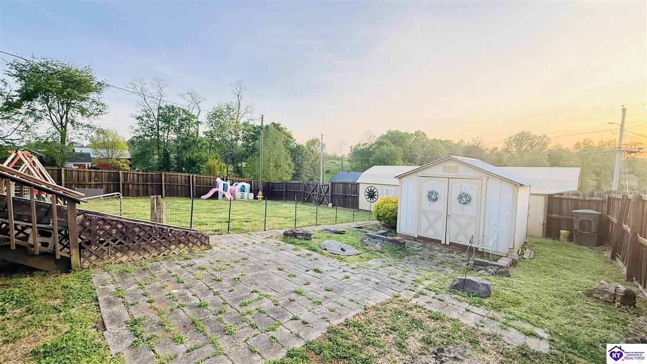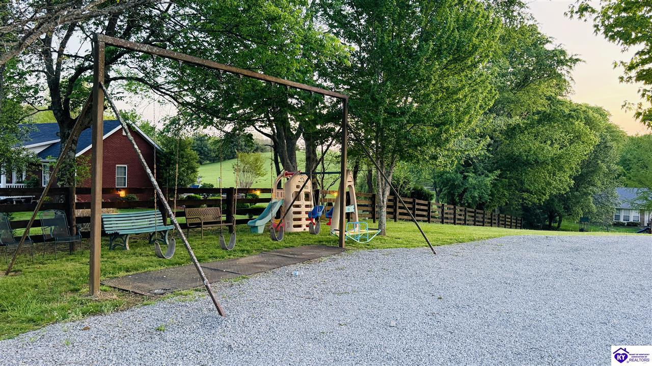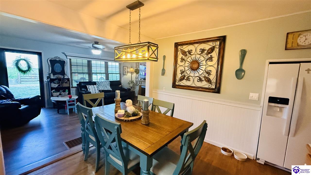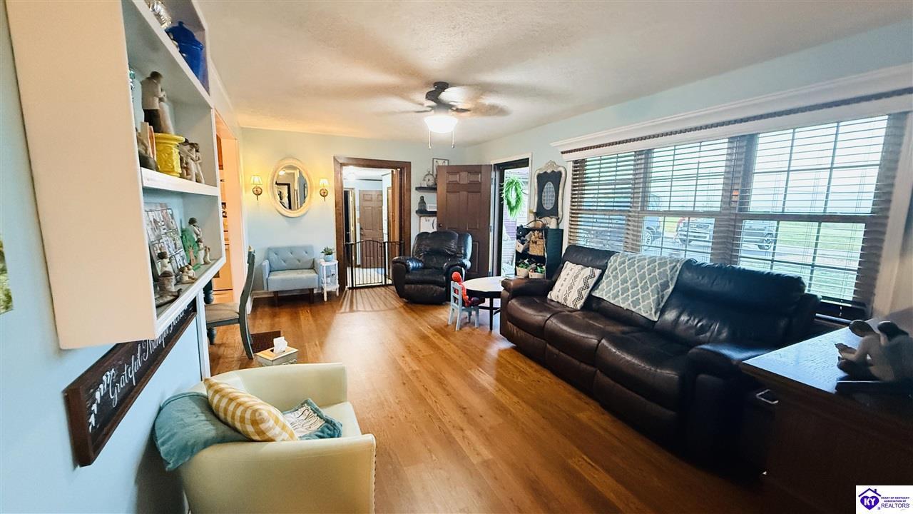 Realtor's notes: Move-in ready and packed with features, this spacious 4-bedroom, 1.5-bath home offers comfort, functionality, and outdoor living at its best. A quaint foyer welcomes you inside, setting the tone for the warm and inviting layout throughout. The half bath is conveniently located in the laundry room just off the kitchen, which features classic oak cabinetry and easy flow into the main living area. Step outside to enjoy a covered back porch overlooking a fully privacy-fenced backyard—perfect for relaxing or entertaining. The property includes three storage buildings, all with electric, including a large workshop, plus two oversized multi-car portable carports for ample covered parking. The outdoor space is a true highlight, featuring a gazebo, industrial-grade swing set (to remain), firepit with seating area, and beautifully maintained landscaping. A wrap-around gravel drive provides easy access to the rear workshop, while a charming wooden plank fence lines the roadway for added curb appeal. Inside, one bedroom showcases unique hand-painted artistic wall and ceiling details, adding character you won’t find anywhere else. Enjoy a peaceful country setting with the convenience of being just minutes from shopping, restaurants, a golf course, hospital, and local entertainment. All data assumed correct; to be verified by buyer prior to offer.