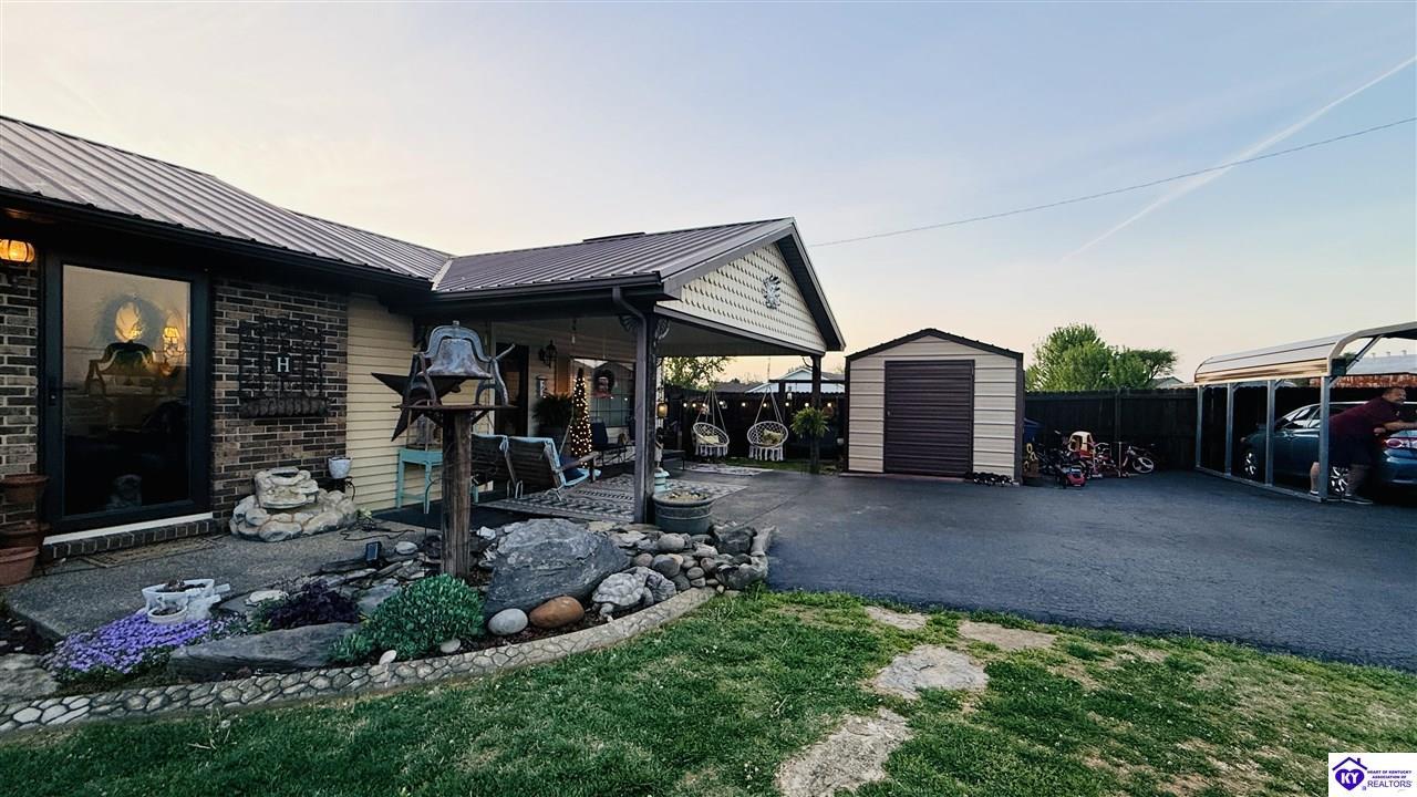 Exterior Covered Front Porch, Out Building, Workshop, Covered Deck, Covered Patio, Garden Area, Landscaping, Mature Trees, Storage Building, Storage Shed