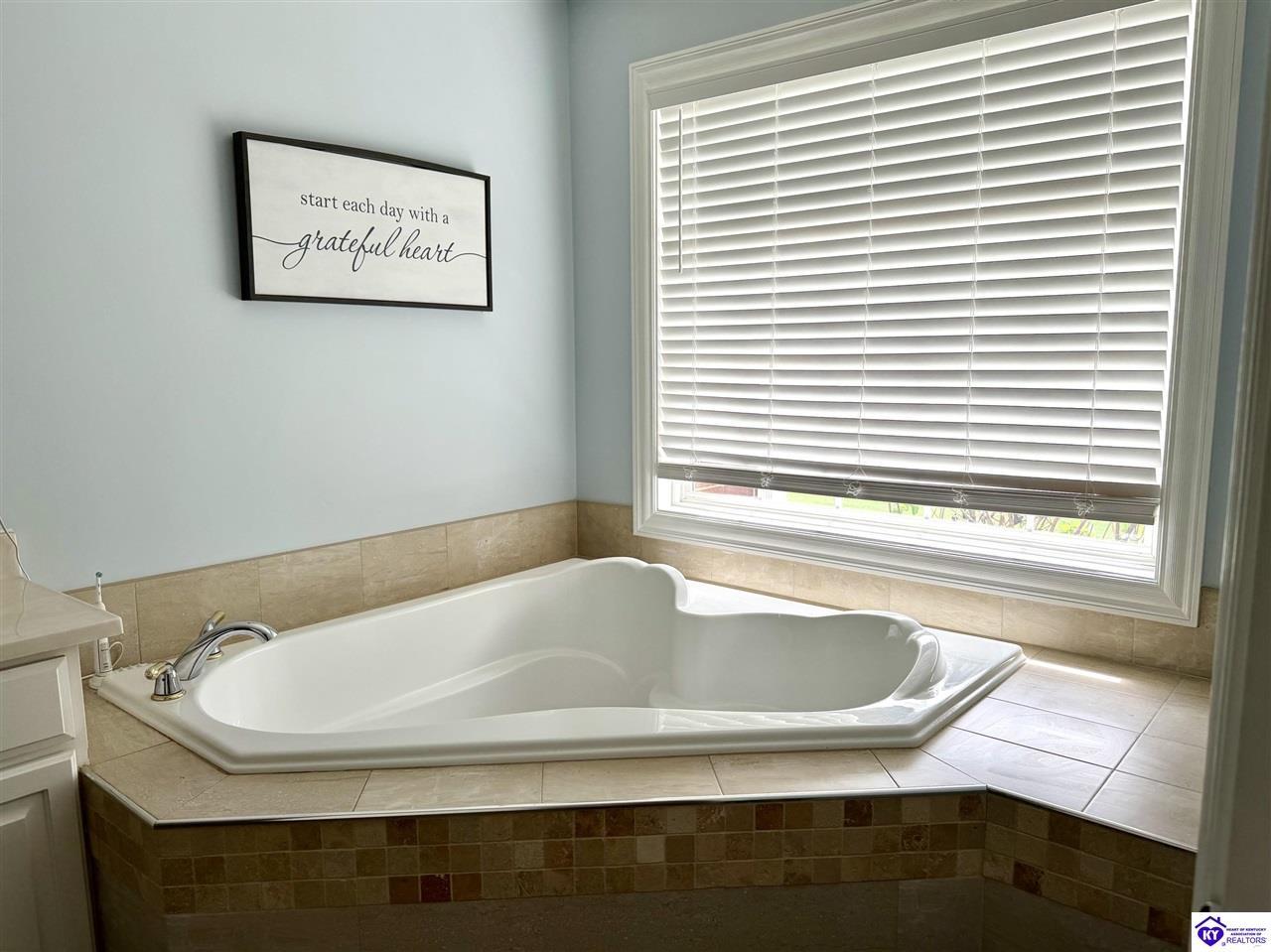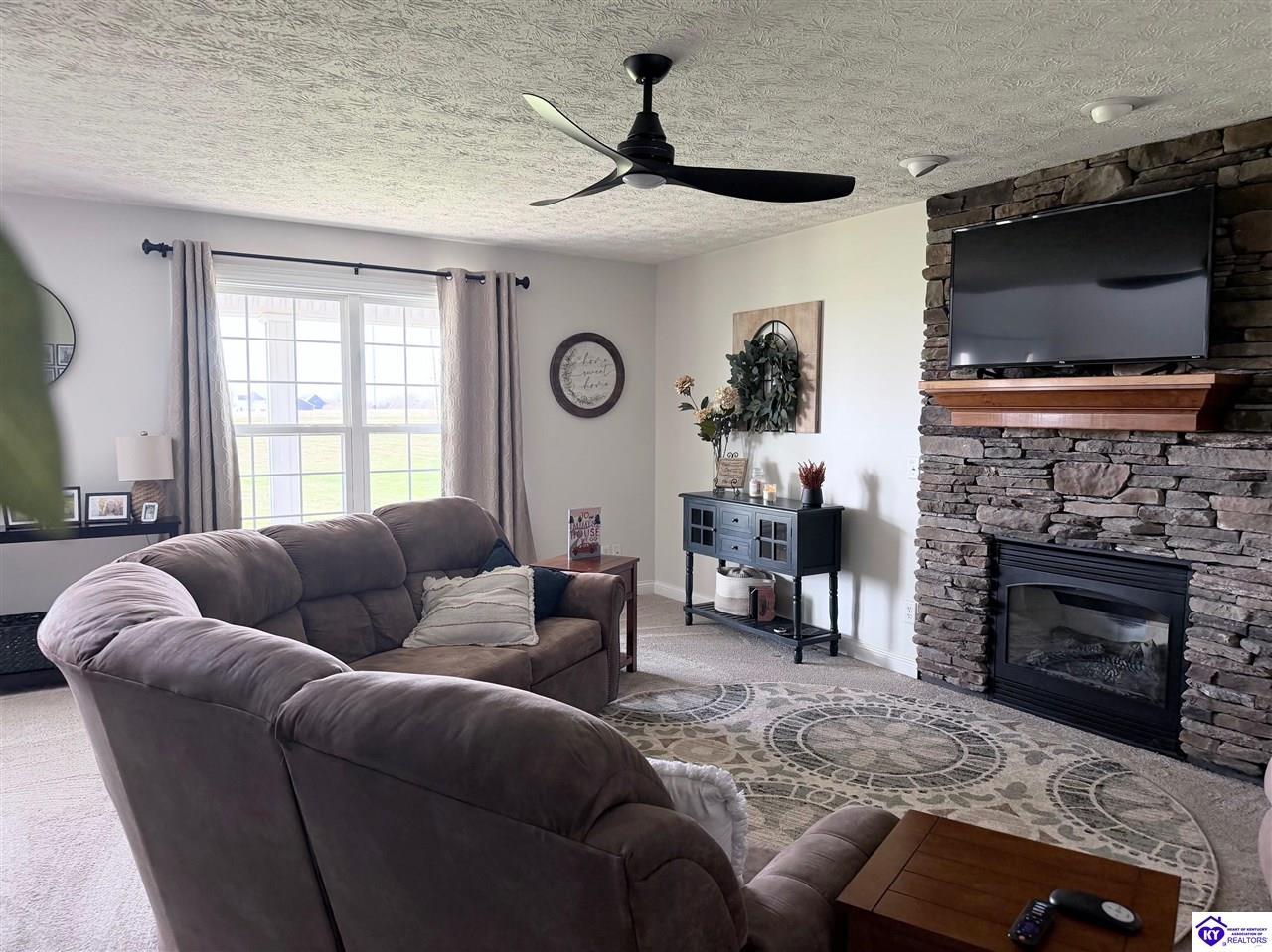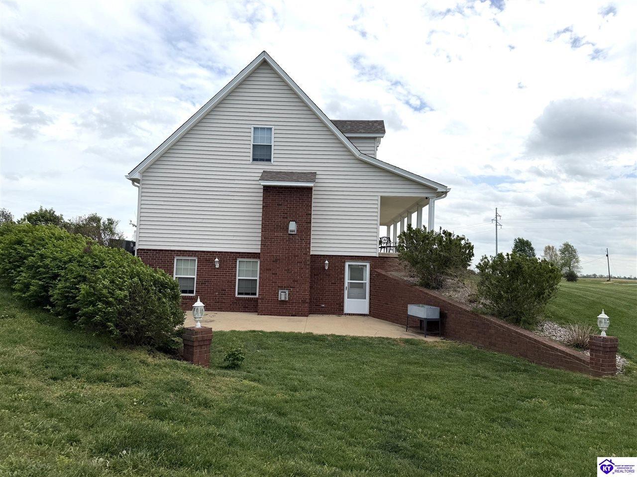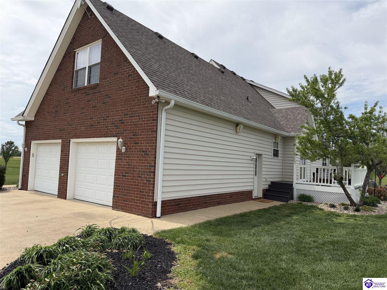 Realtor's notes: This Charming 2 story home w/4 bedrooms and 3.5 baths located on a 1.97 acre lot, situated just FIVE MILES TO ELIZABETHTOWN & 10 MINUTES TO I -65. Lovely 2 story foyer. Large primary bedroom located on main floor and EnSite walk in closet, Jetted tub and big ceramic tile shower. Roomy living room features stone gas log fireplace, open to the formal dining room. Large kitchen with breakfast area, lots of cabinetry, granite counter tops and has patio doors going to the deck. Nice main floor laundry room. 2nd and 3rd bedrooms and nice full bath on 2nd floor, huge bonus room now being used as an exercise room features large window seat area. Walkout basement has 4th bedroom, lovely full bath, there is a large rec room perfect for a pool table, roomy family room has a gas fire place and walks out onto a huge patio.