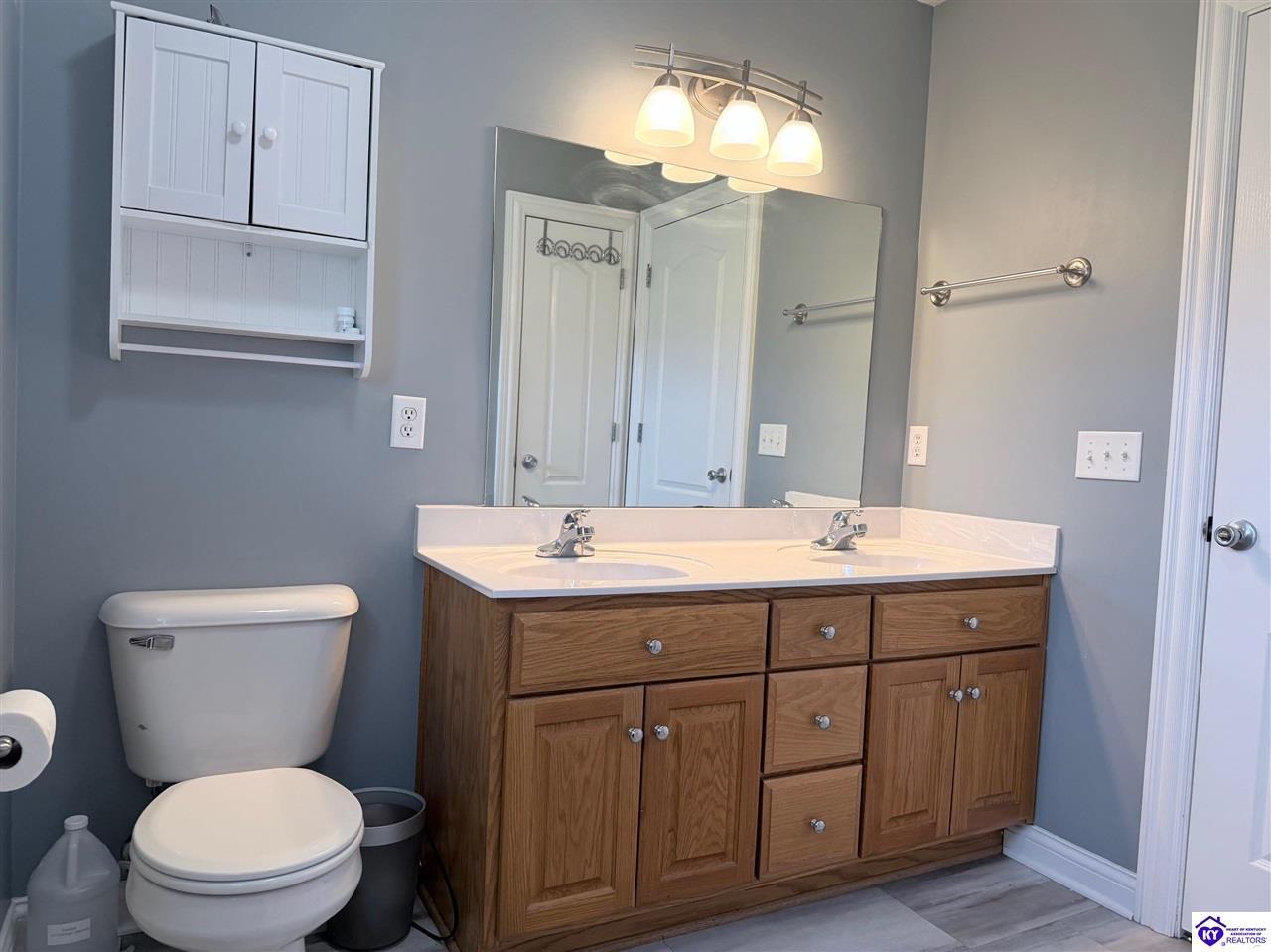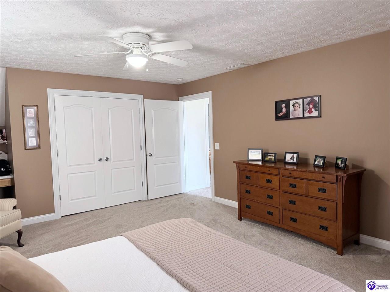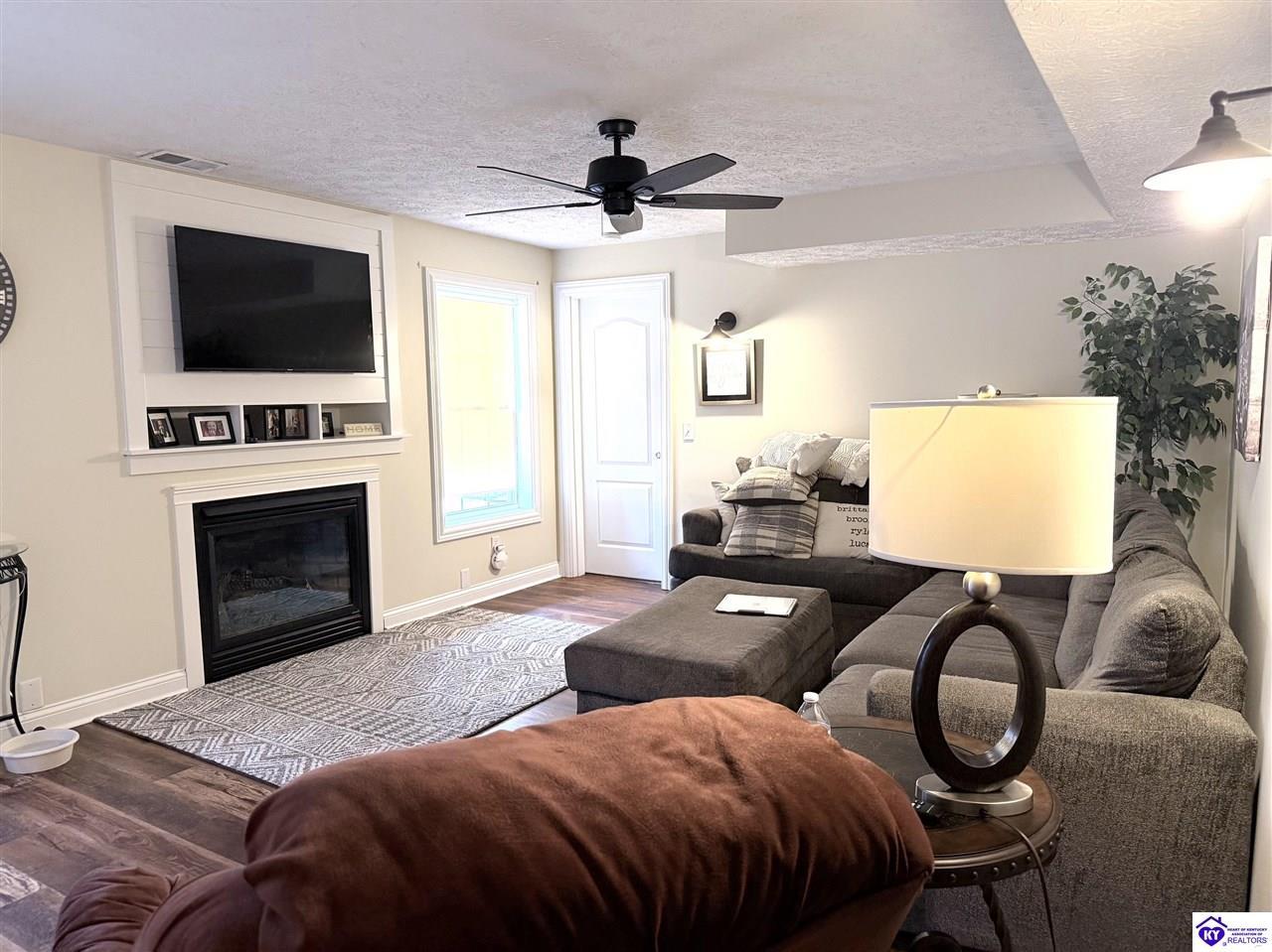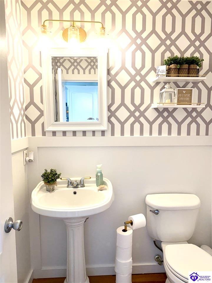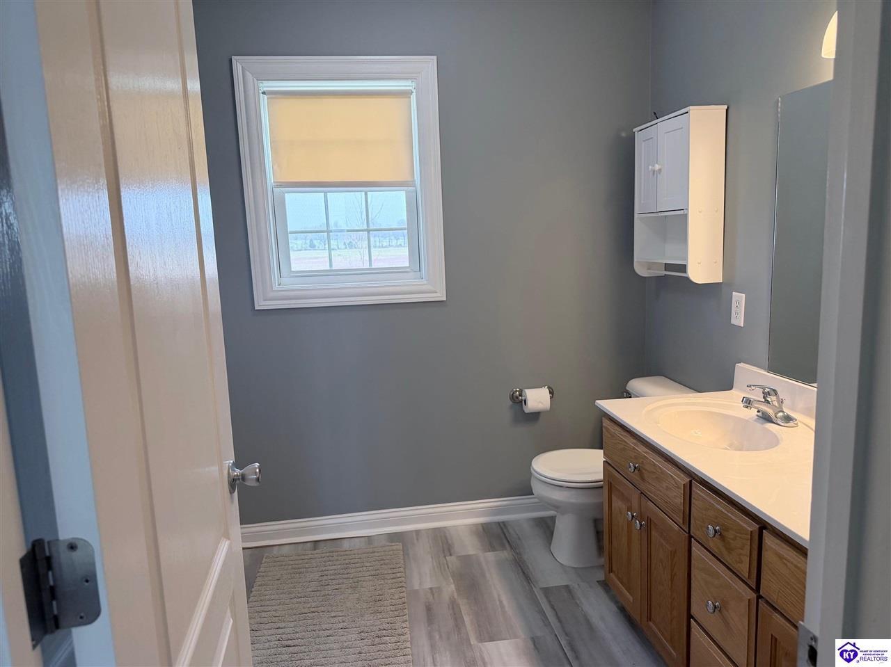 Realtor's notes: This Charming 2 story home w/4 bedrooms and 3.5 baths located on a 1.97 acre lot, situated just FIVE MILES TO ELIZABETHTOWN & 10 MINUTES TO I -65. Lovely 2 story foyer. Large primary bedroom located on main floor and EnSite walk in closet, Jetted tub and big ceramic tile shower. Roomy living room features stone gas log fireplace, open to the formal dining room. Large kitchen with breakfast area, lots of cabinetry, granite counter tops and has patio doors going to the deck. Nice main floor laundry room. 2nd and 3rd bedrooms and nice full bath on 2nd floor, huge bonus room now being used as an exercise room features large window seat area. Walkout basement has 4th bedroom, lovely full bath, there is a large rec room perfect for a pool table, roomy family room has a gas fire place and walks out onto a huge patio.
