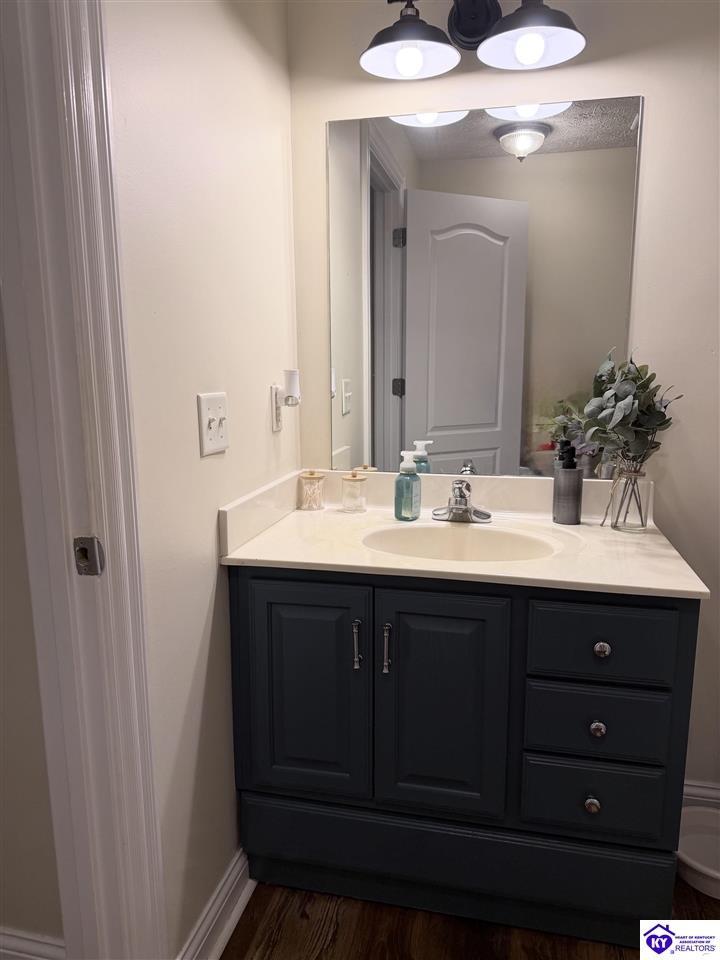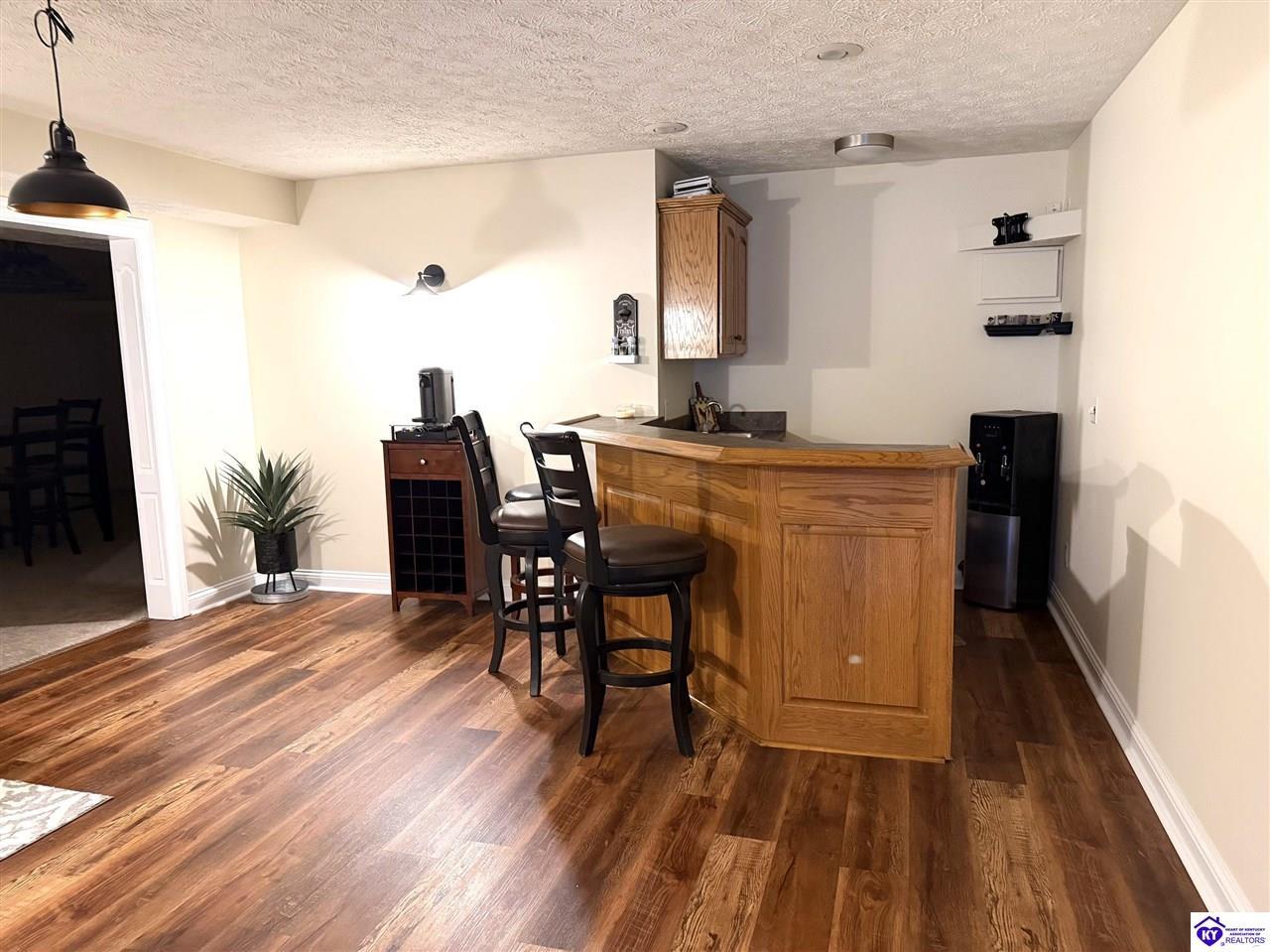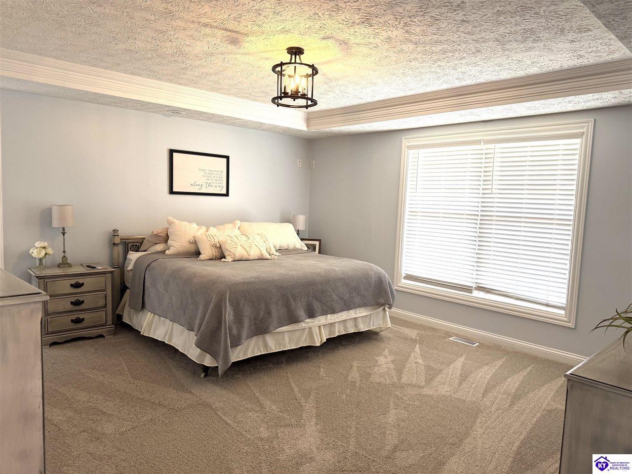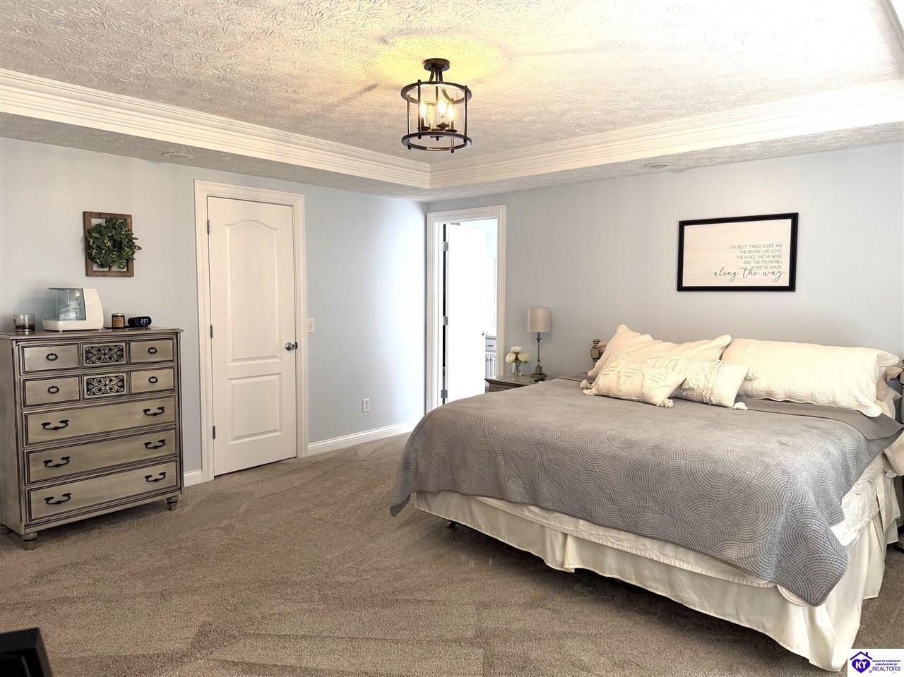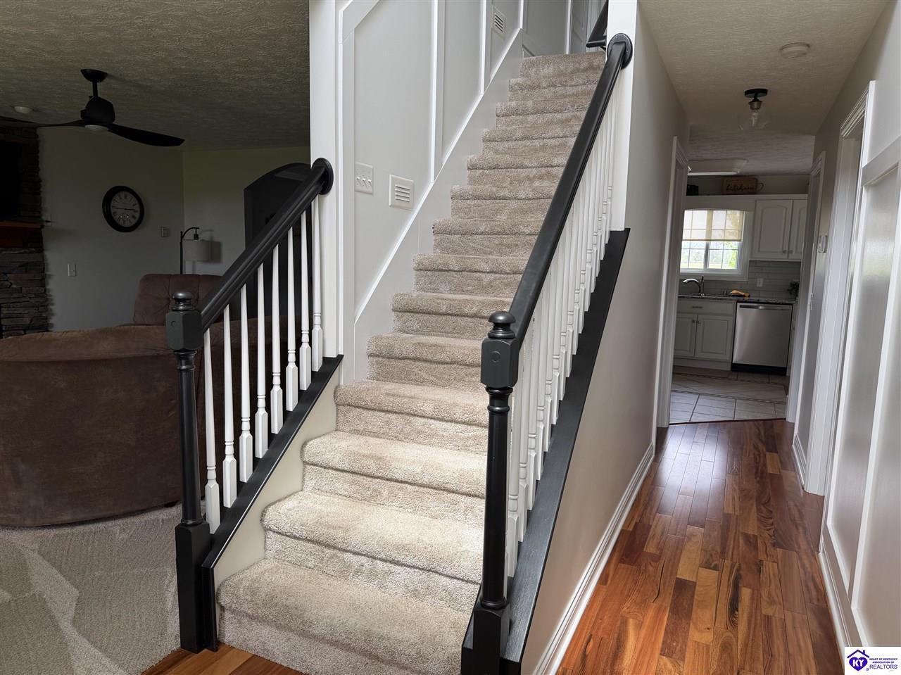 Realtor's notes: This Charming 2 story home w/4 bedrooms and 3.5 baths located on a 1.97 acre lot, situated just FIVE MILES TO ELIZABETHTOWN & 10 MINUTES TO I -65. Lovely 2 story foyer. Large primary bedroom located on main floor and EnSite walk in closet, Jetted tub and big ceramic tile shower. Roomy living room features stone gas log fireplace, open to the formal dining room. Large kitchen with breakfast area, lots of cabinetry, granite counter tops and has patio doors going to the deck. Nice main floor laundry room. 2nd and 3rd bedrooms and nice full bath on 2nd floor, huge bonus room now being used as an exercise room features large window seat area. Walkout basement has 4th bedroom, lovely full bath, there is a large rec room perfect for a pool table, roomy family room has a gas fire place and walks out onto a huge patio.