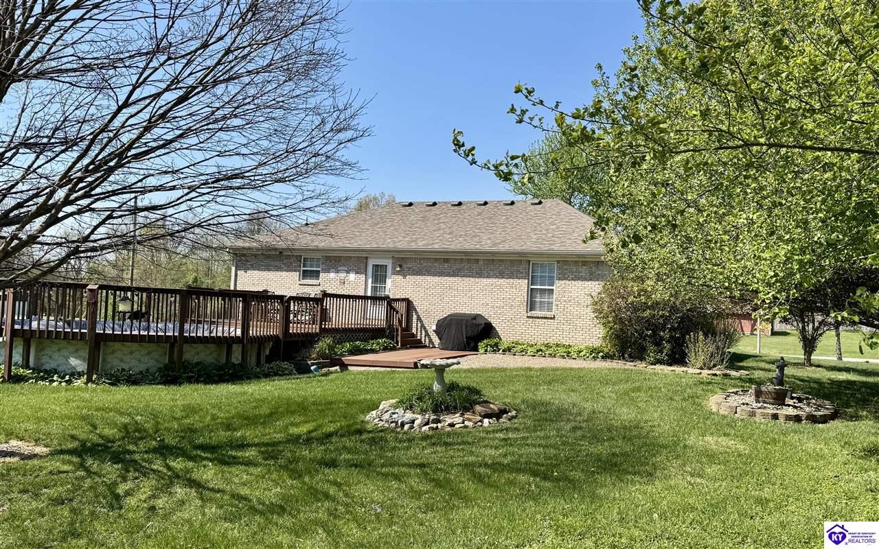 Realtor's notes: Lovely, well-maintained one-owner all-brick home featuring 3 bedrooms and 2 full baths, ideally situated on a quiet private cul-de-sac just minutes from Lincoln Trail Elementary School. This charming property offers a spacious, beautifully landscaped yard perfect for outdoor enjoyment, along with a newer deck that surrounds an above-ground swimming pool—ideal for relaxing or entertaining. A rare opportunity combining comfort, location, and pride of ownership.