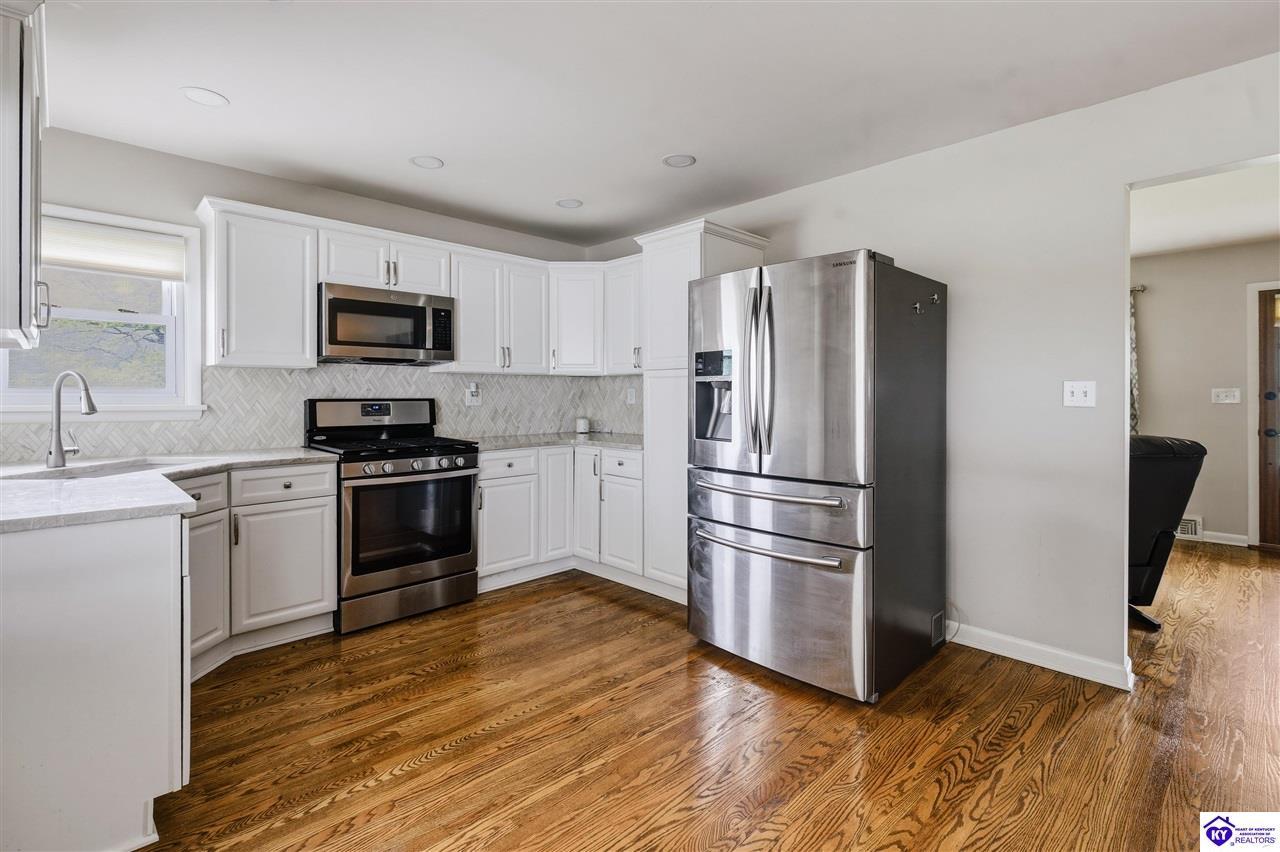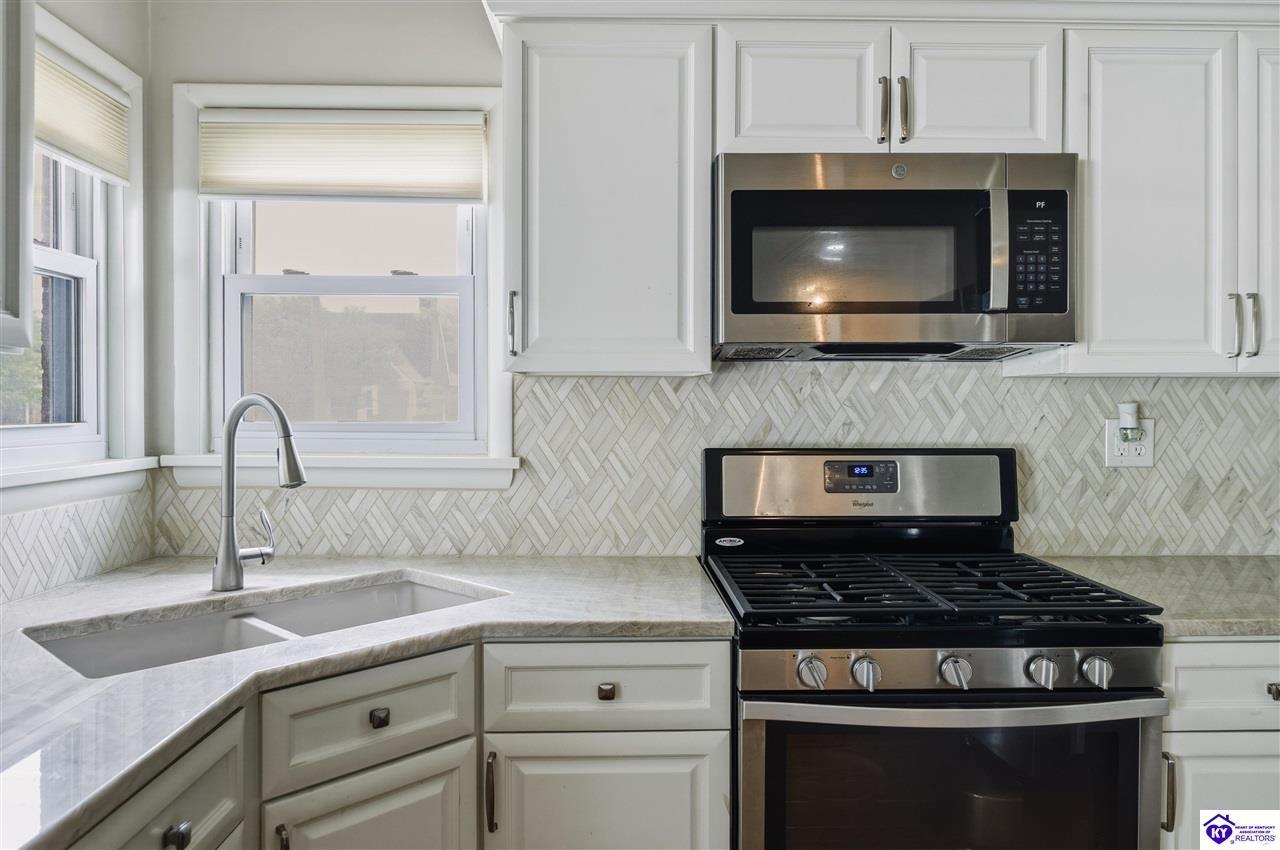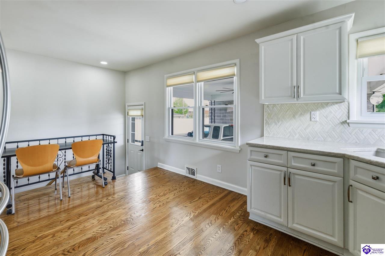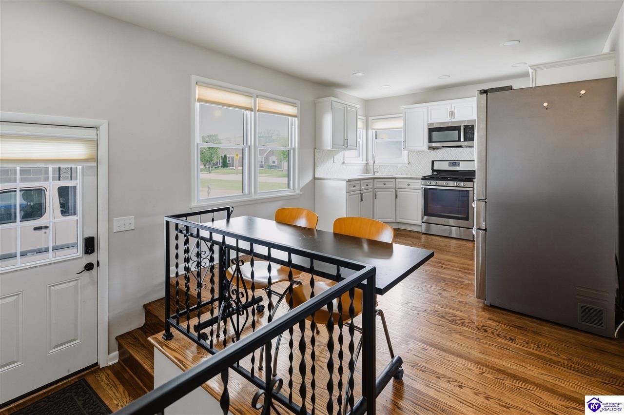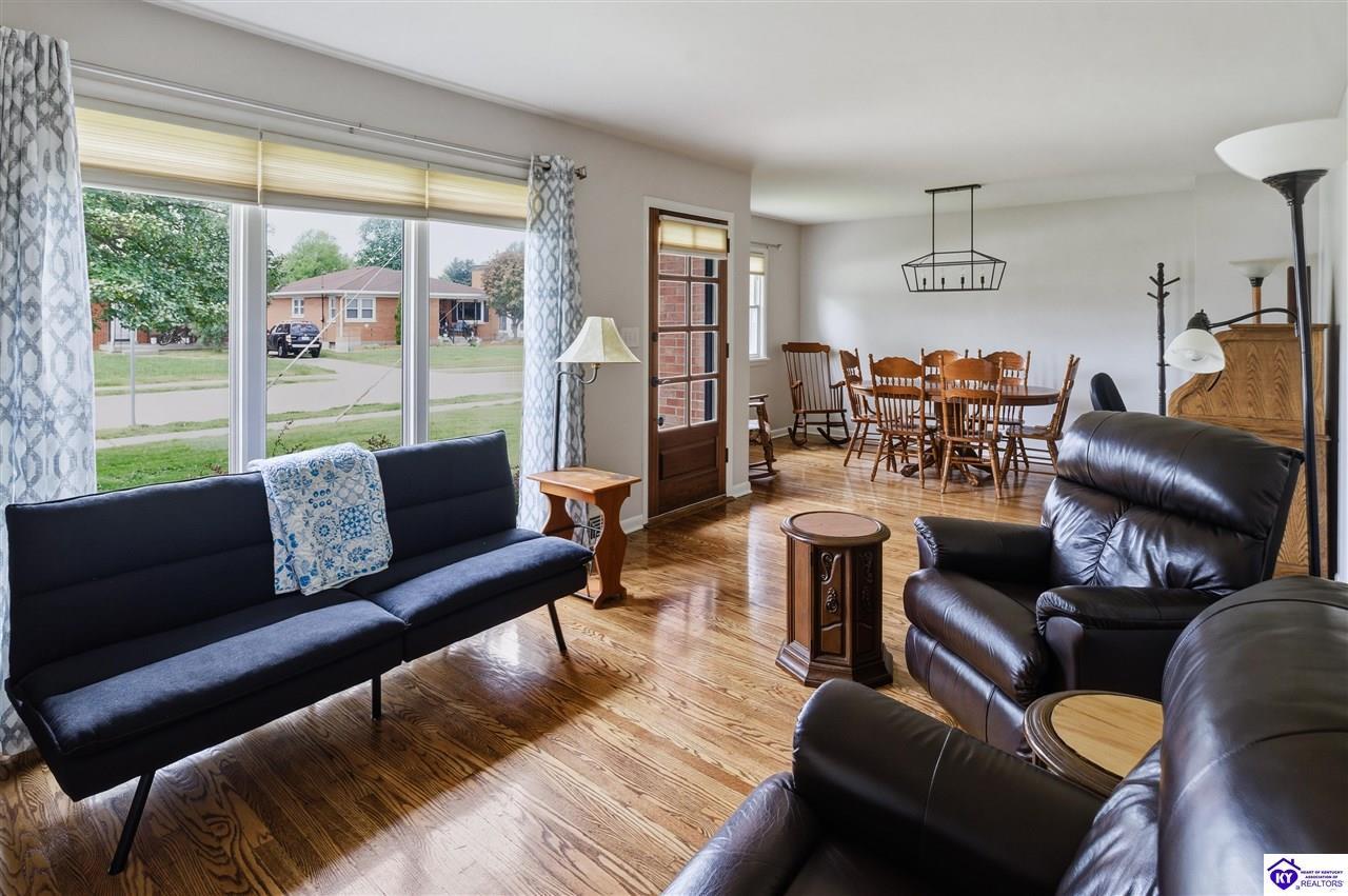Realtor's notes: Located in the highly desirable Audubon Park area, this beautifully maintained home offers curb appeal and welcoming feel from the moment you arrive. Gorgeous real hardwood floors in pristine condition and an abundance of natural light from newer windows.The living room features a cozy gas fireplace. Just off the entry, a spacious formal dining room provides an ideal setting for gatherings, the full bath has a unique charm with custom vanity and stylish tilework. The kitchen is functional and impressive, with newer appliances, stunning quartzite countertops, and a custom undermount sink. The finished basement adds even more living space, with two large. An extra-wide driveway provides plenty of parking.This home truly blends character, comfort, and convenience in a sought-after location!