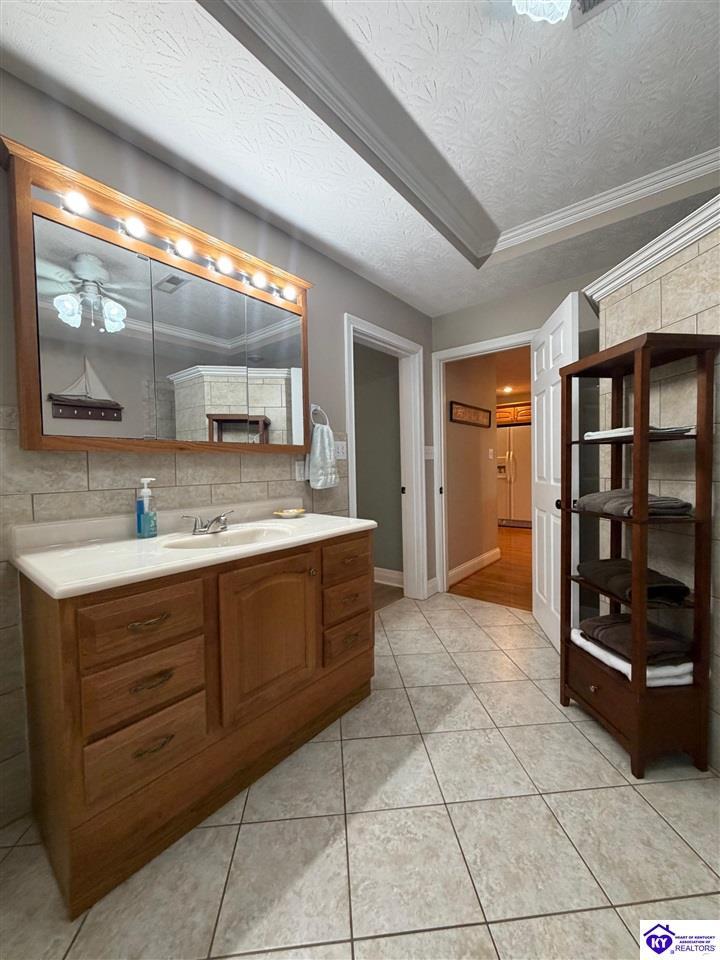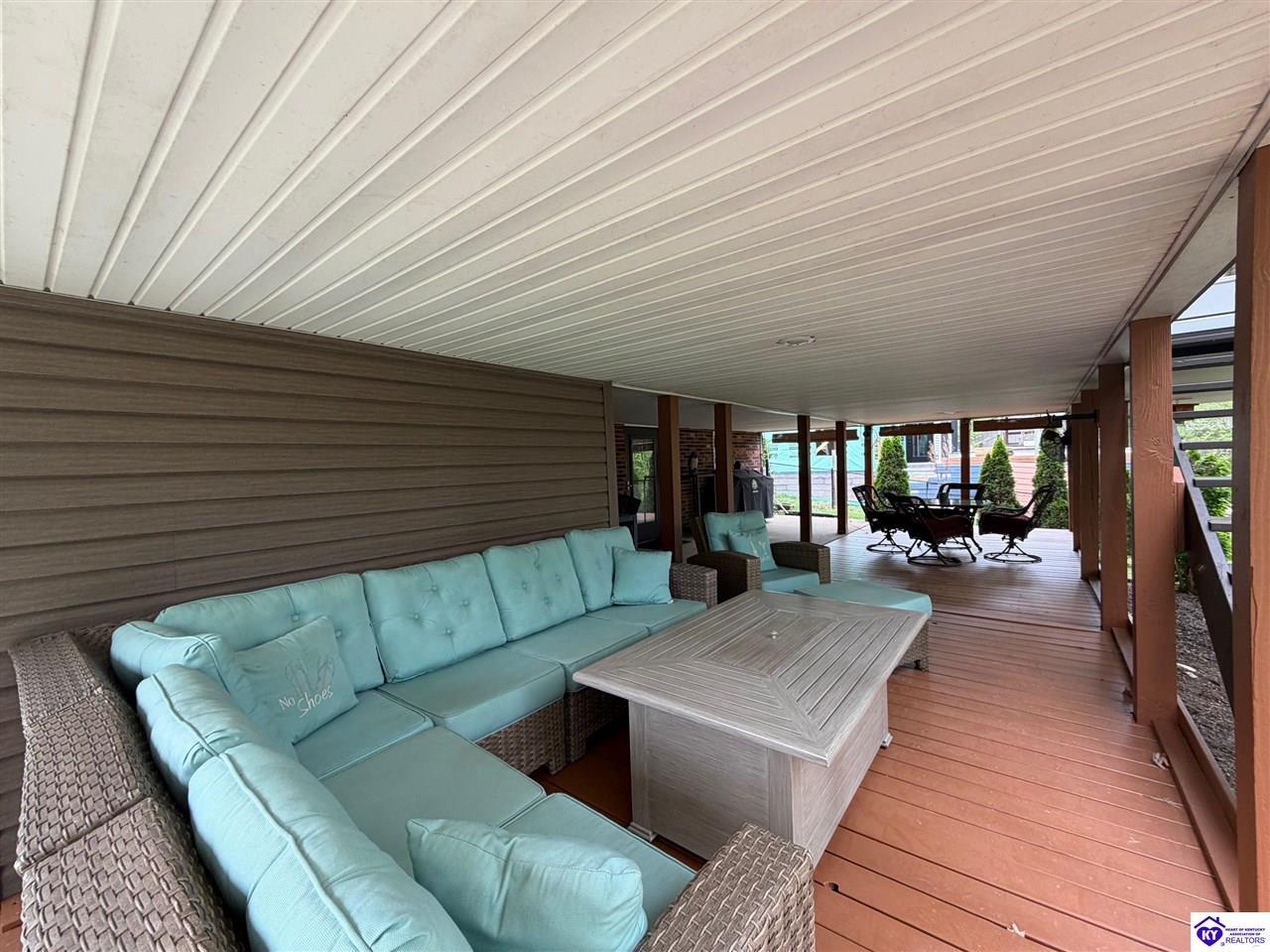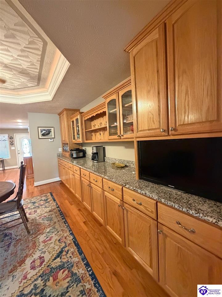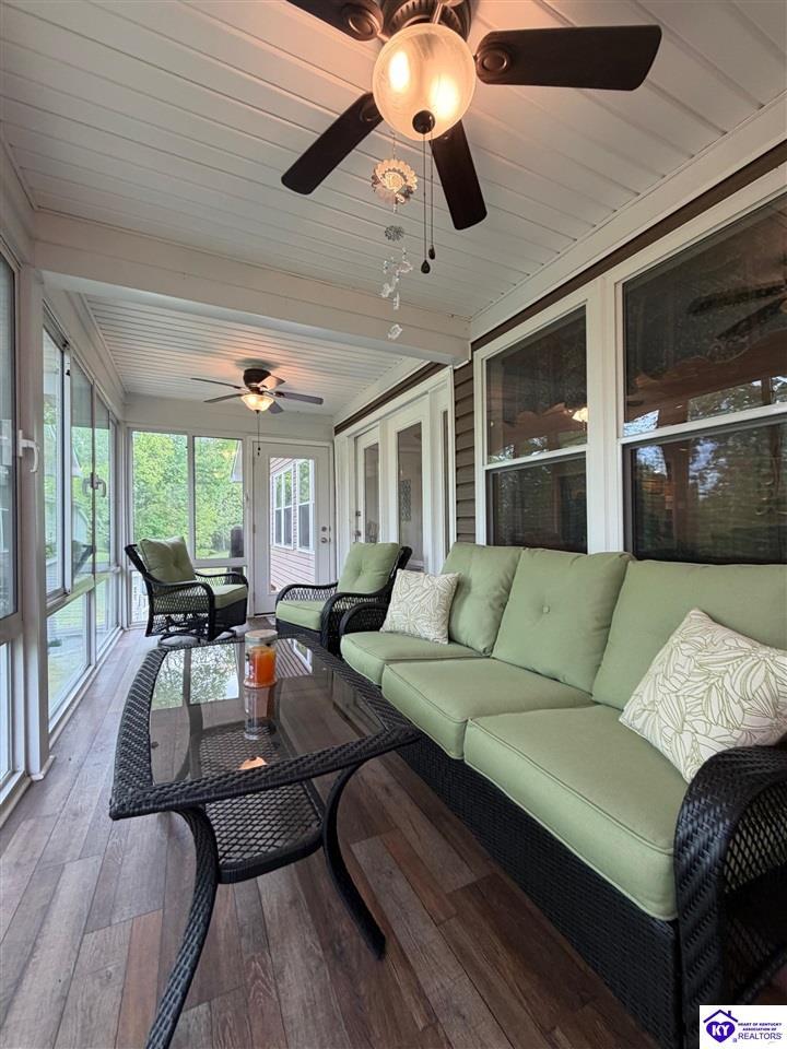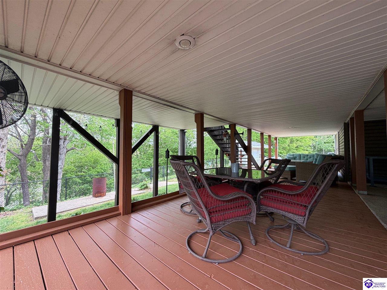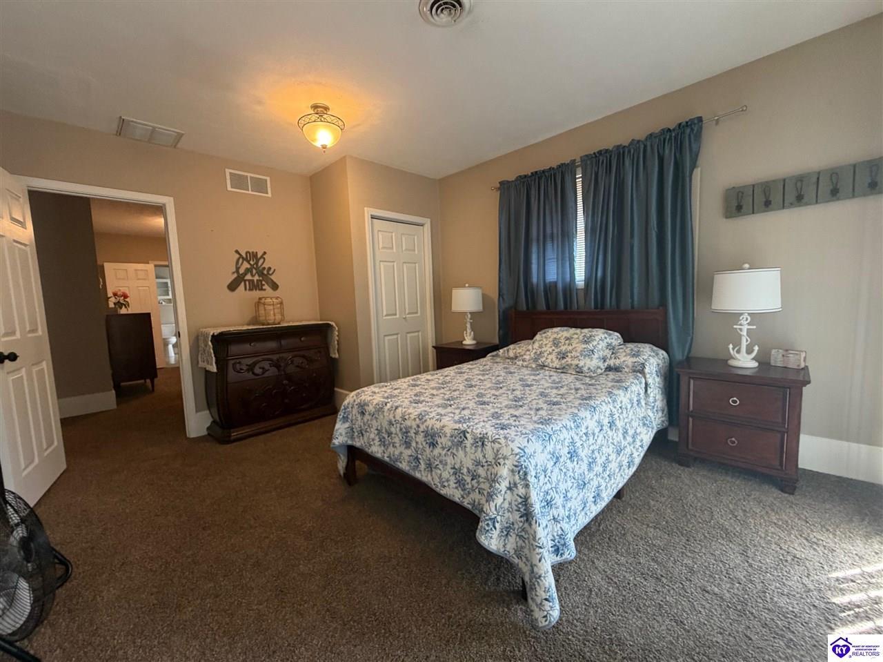 Realtor's notes: Lakefront home in Cannons Point Subdivision on Rough River Lake! This 3 bedroom, 3 bathroom home sits on a half-acre lot with direct backyard lake access and a private shared boat dock with COE approval. Enjoy easy lake living with a neighborhood boat ramp and courtesy dock just a short walk or golf cart ride away. The home features an open floor plan with hardwood floors, abundant natural light, and a spacious kitchen with granite countertops, custom cabinetry, and eat-in dining. The main level includes a private primary suite with walk-in shower, soaking tub, and attached laundry, plus two additional bedrooms and a full bath. The living area offers custom built-ins, tray ceilings, a gas fireplace, and access to a year-round sunroom with beautiful lake views. The finished walkout basement provides additional living space, a full bathroom, and access to a covered patio—perfect for entertaining. A standout feature is the incredible 6.5 car garage capacity, including multiple detached garages and a large 31x35 garage with heat, air, electric, and RV hookup—ideal for boats, campers, and lake toys. Don’t miss this rare opportunity to own a well-maintained lakefront home with direct access to Rough River Lake!