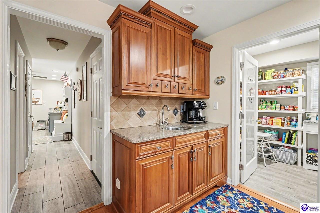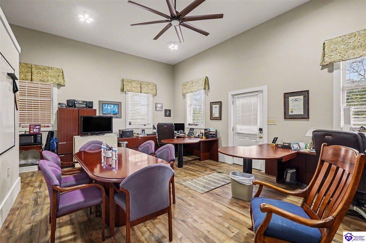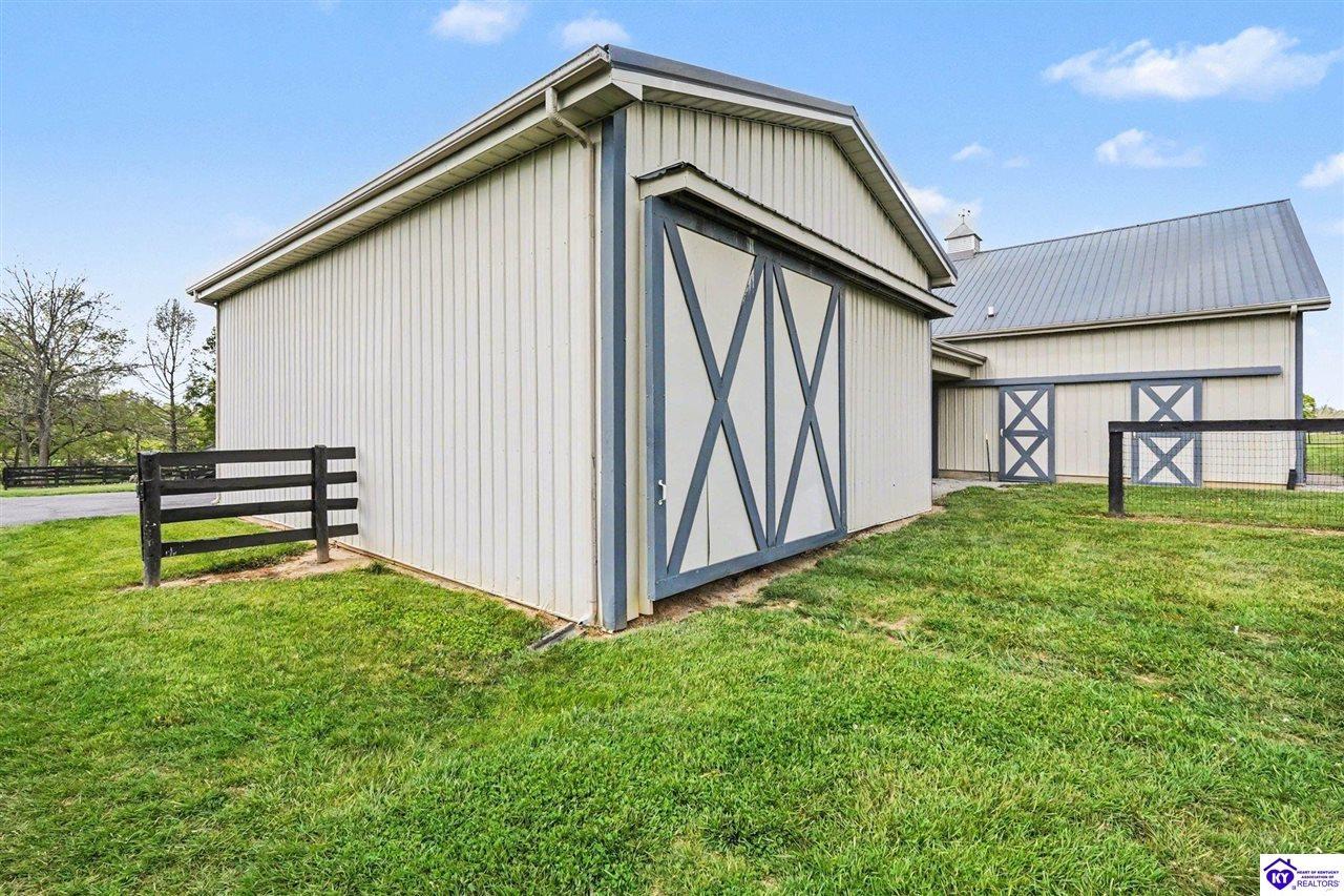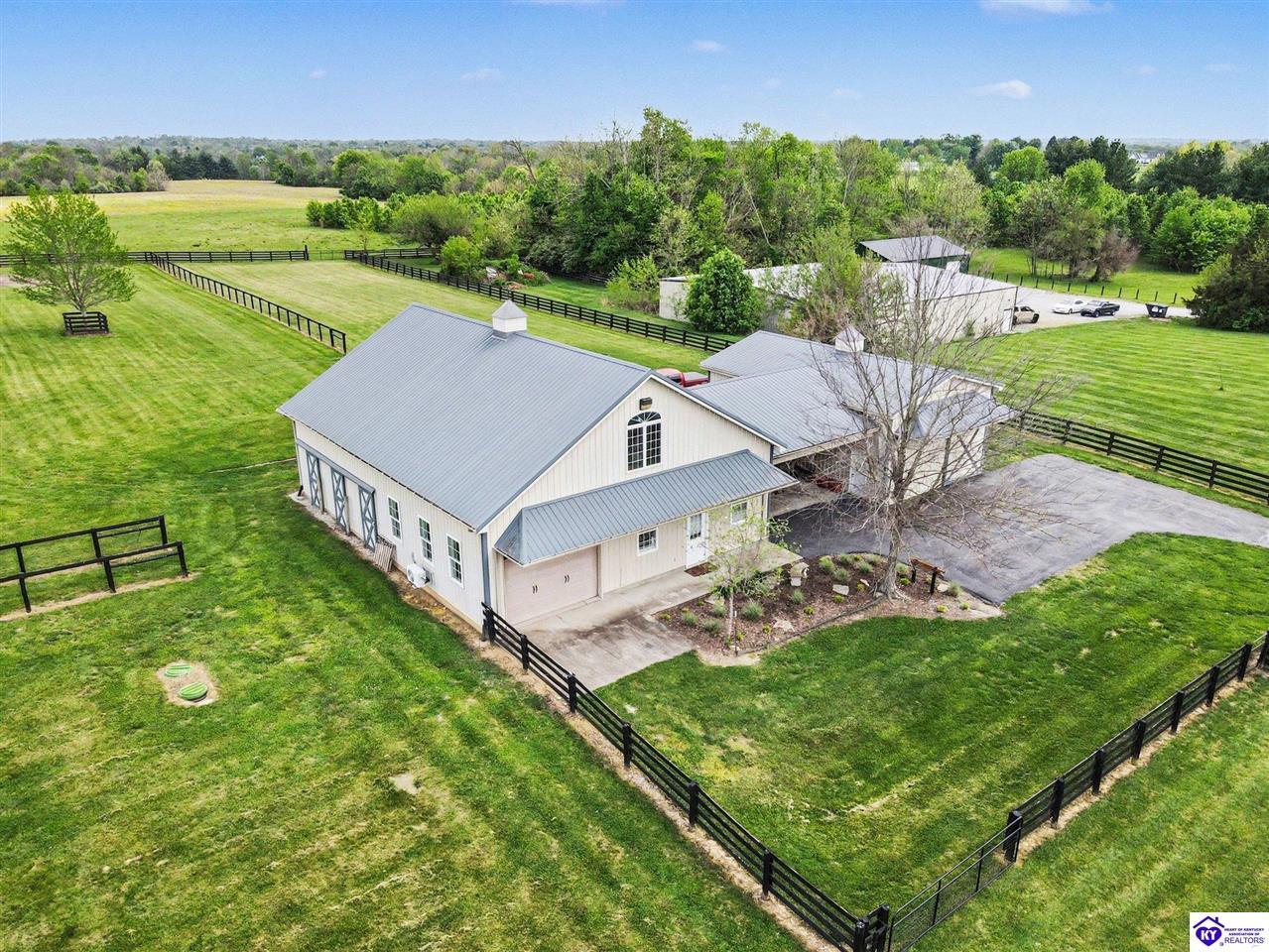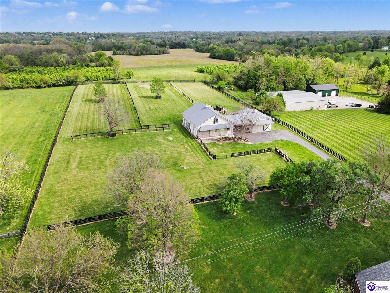 Realtor's notes: Welcome to a truly exceptional 5.07 acre estate offering space, versatility, & endless possibilities in the heart of Shelby County. Nestled in Simpsonville just minutes from the Outlet Shoppes, downtown Shelbyville, & everyday conveniences, this unique estate is designed for the way people live today, whether multigenerational living, working from home, or enjoying land & livestock. The main residence features 3 bedrooms & 2.5 baths with a thoughtfully designed layout blending comfort & functionality. The main level offers a spacious primary suite with walk-in closet & private bath, a beautifully appointed great room with gas fireplace, formal dining room, & a den perfect for a home office or flex space. The chef’s kitchen includes granite countertops, a large bar area, & a separate butler’s pantry with walk-in storage, ideal for everyday living & entertaining. A convenient laundry area & half bath are located just off the kitchen. Upstairs are two additional bedrooms & a full bath. Connected by a covered portion of the deck, the private guest house (ADU) offers a complete second living space with its own bedroom, full bath, kitchen, living area, & laundry, perfect for extended family, guests, or potential income. A ramp provides accessibility, plus additional upstairs storage. The property also features a well-equipped barn with stalls, a fully heated & air-conditioned office with full bath, & an upper level that could be finished for additional space. Previously home to prize-winning alpacas, the land is fully fenced with blackboard fencing & lush pastures seeded with orchard grass. Additional highlights include 4 HVAC units (2 main house, 1 ADU, 1 barn office mini split), encapsulated crawl spaces for energy efficiency, handicap accessible guest house with zero entry shower, Trex decking, buried propane tank, dedicated landscaping spigot, & a large barn with office, storage, stalls, & expansion potential. Professionally landscaped & thoughtfully maintained, this property offers beauty, usability, & flexibility for a private retreat, multigenerational living, or lifestyle with income potential.