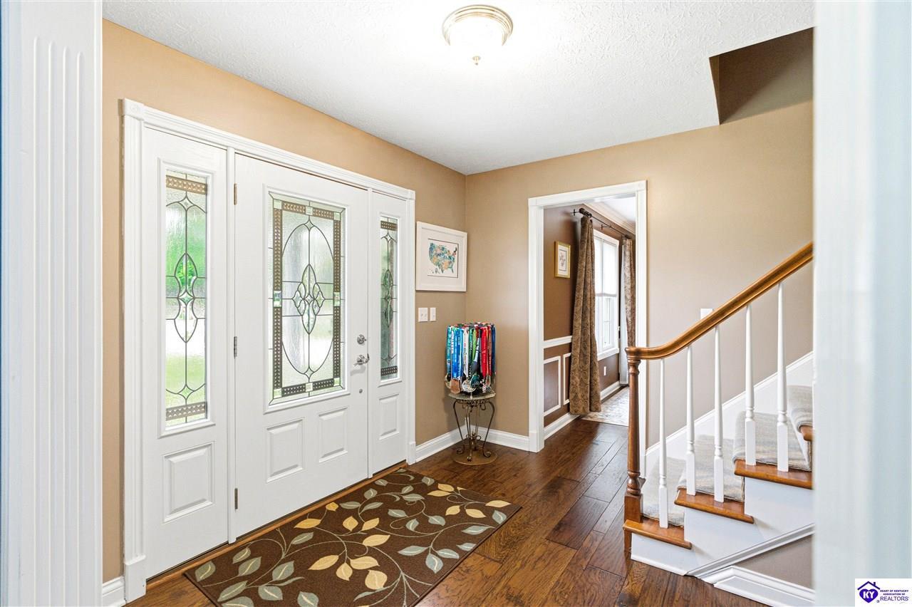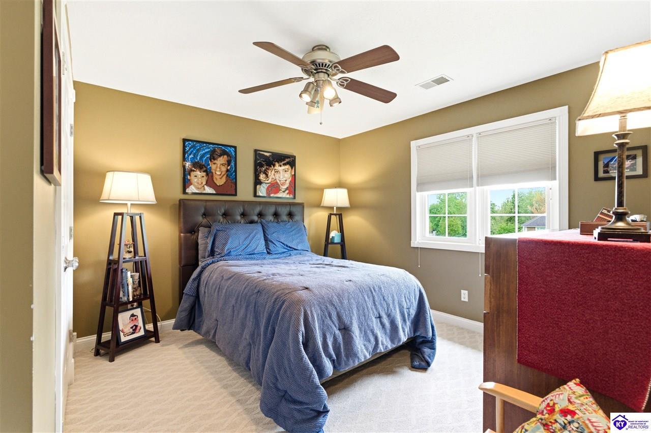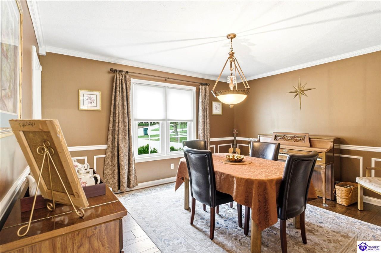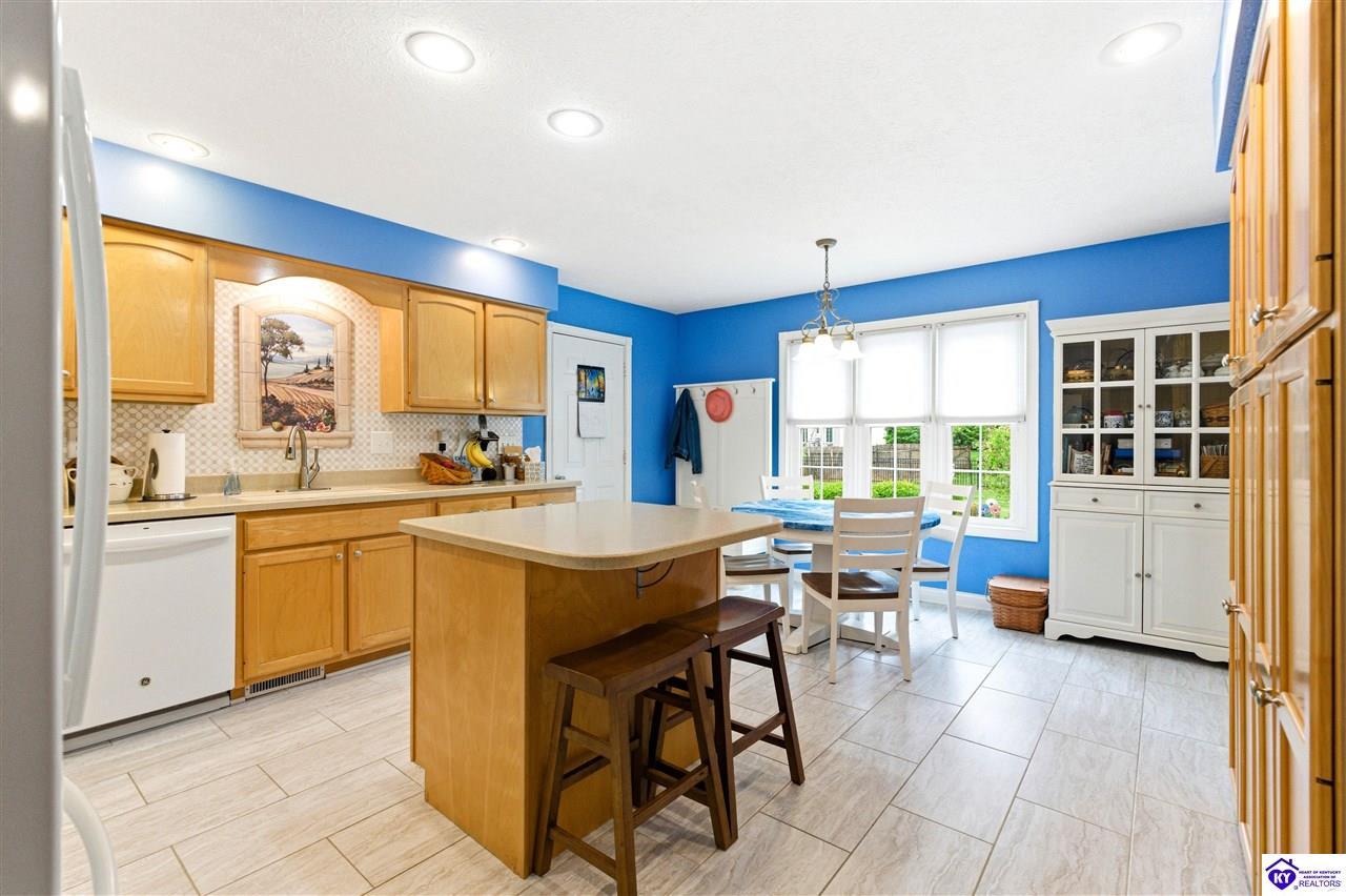 Realtor's notes: Located in the desirable Freeman Creek subdivision, this well-maintained brick home sits on an approximate half-acre lot and offers 4 bedrooms and 3.5 bathrooms. Upon entry, a welcoming foyer leads to a flexible front living space—perfect for a home office, formal dining room, or music room. The kitchen is filled with natural light and features ample cabinetry, along with space for an eat-in table, making it ideal for everyday living and entertaining. The main floor laundry adds convenience and functionality. The family room showcases abundant natural light, a beautiful built-in feature, and direct access to the backyard. Step outside to a stunning fenced yard with a covered patio, pergola and stamped concrete—perfect for outdoor enjoyment. Upstairs, you’ll find the primary suite along with three additional bedrooms and a full bath. The finished basement provides additional living space, including a large family/rec room, full bathroom, and excellent storage. Located in the Elizabethtown City Schools district, this home is a standout in today’s market.