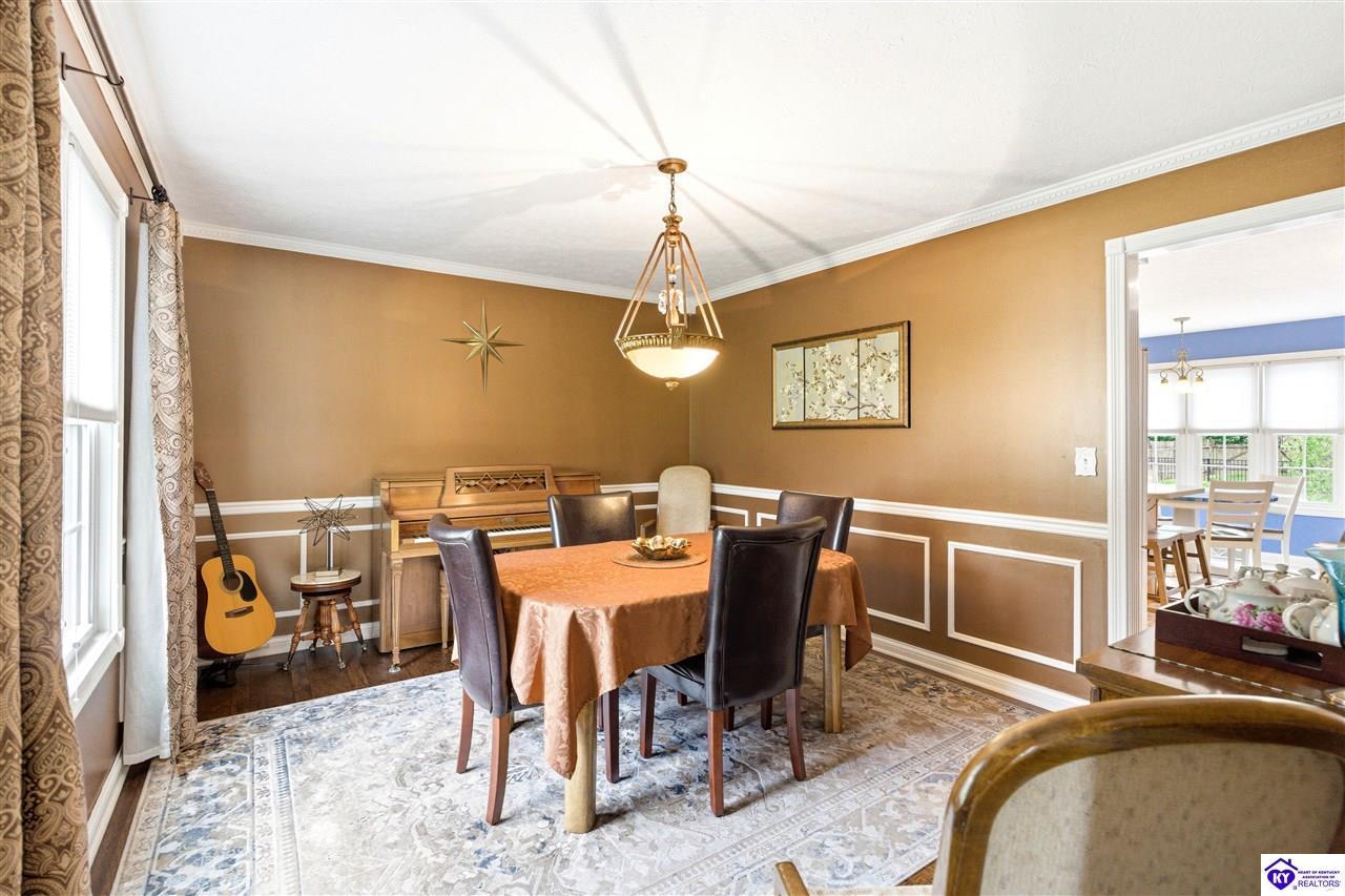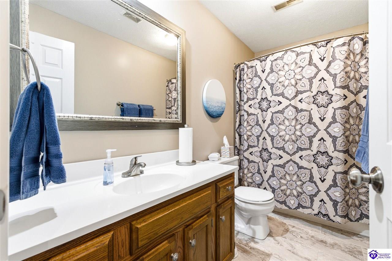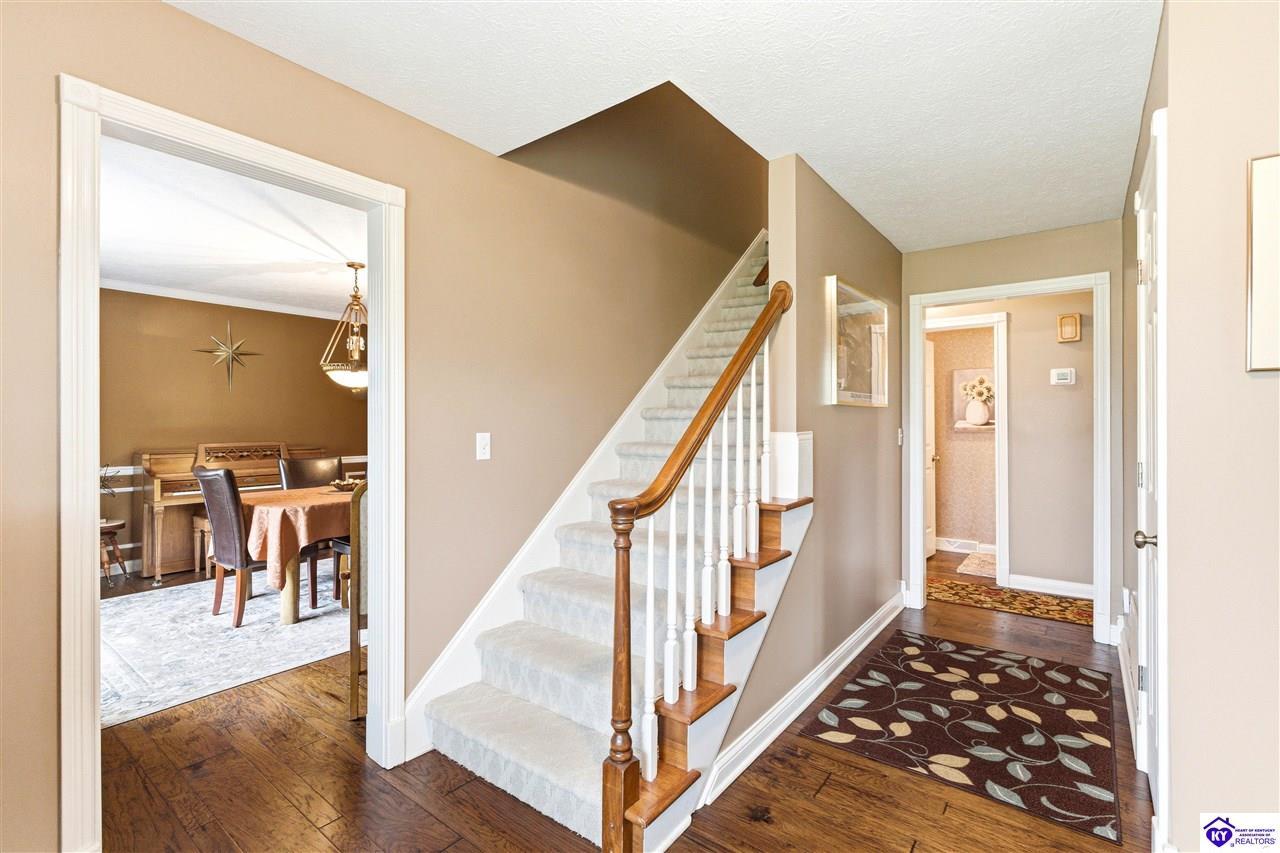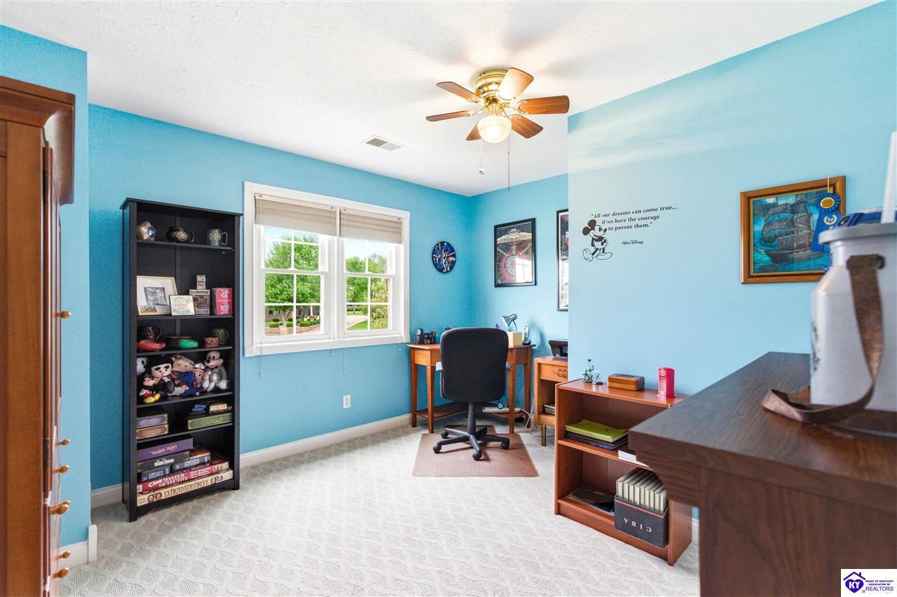 Realtor's notes: Located in the desirable Freeman Creek subdivision, this well-maintained brick home sits on an approximate half-acre lot and offers 4 bedrooms and 3.5 bathrooms. Upon entry, a welcoming foyer leads to a flexible front living space—perfect for a home office, formal dining room, or music room. The kitchen is filled with natural light and features ample cabinetry, along with space for an eat-in table, making it ideal for everyday living and entertaining. The main floor laundry adds convenience and functionality. The family room showcases abundant natural light, a beautiful built-in feature, and direct access to the backyard. Step outside to a stunning fenced yard with a covered patio, pergola and stamped concrete—perfect for outdoor enjoyment. Upstairs, you’ll find the primary suite along with three additional bedrooms and a full bath. The finished basement provides additional living space, including a large family/rec room, full bathroom, and excellent storage. Located in the Elizabethtown City Schools district, this home is a standout in today’s market.