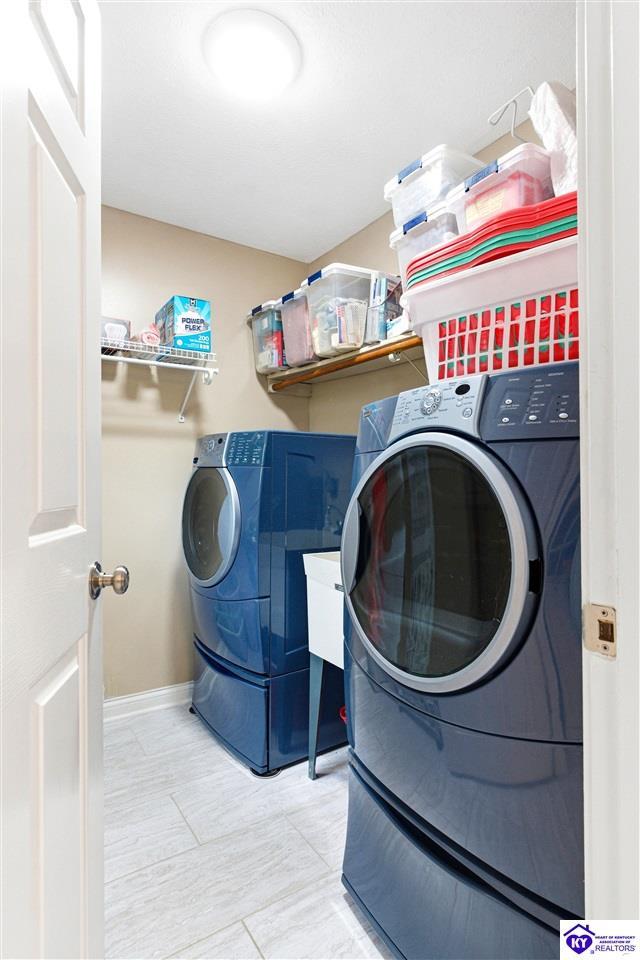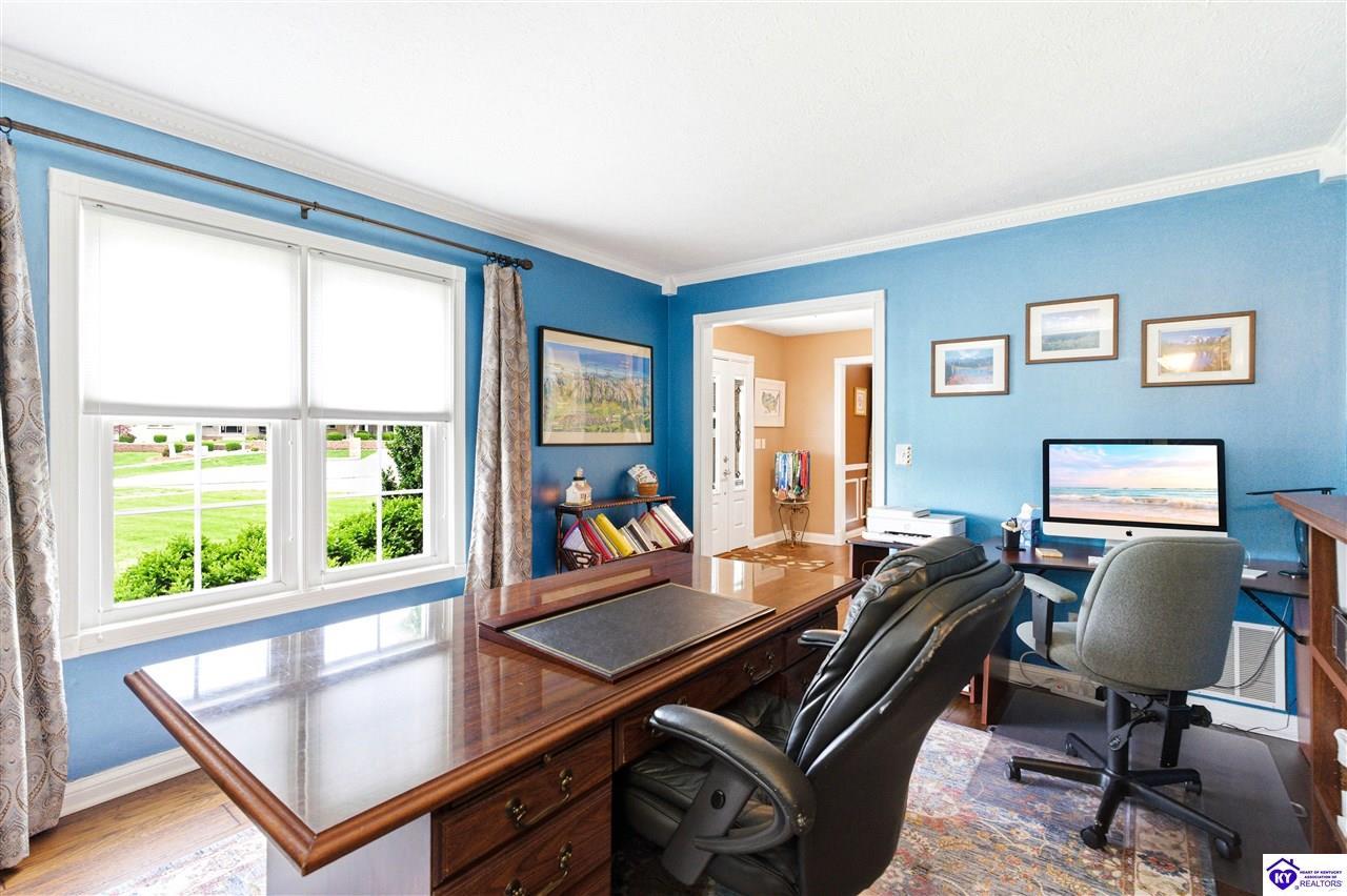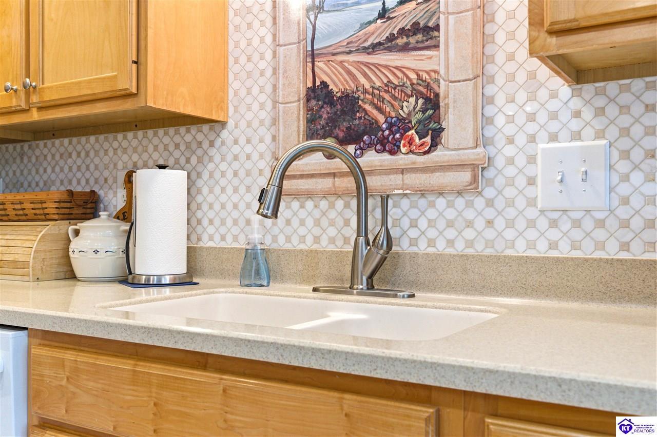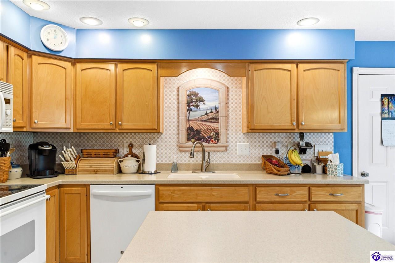 Realtor's notes: Located in the desirable Freeman Creek subdivision, this well-maintained brick home sits on an approximate half-acre lot and offers 4 bedrooms and 3.5 bathrooms. Upon entry, a welcoming foyer leads to a flexible front living space—perfect for a home office, formal dining room, or music room. The kitchen is filled with natural light and features ample cabinetry, along with space for an eat-in table, making it ideal for everyday living and entertaining. The main floor laundry adds convenience and functionality. The family room showcases abundant natural light, a beautiful built-in feature, and direct access to the backyard. Step outside to a stunning fenced yard with a covered patio, pergola and stamped concrete—perfect for outdoor enjoyment. Upstairs, you’ll find the primary suite along with three additional bedrooms and a full bath. The finished basement provides additional living space, including a large family/rec room, full bathroom, and excellent storage. Located in the Elizabethtown City Schools district, this home is a standout in today’s market.