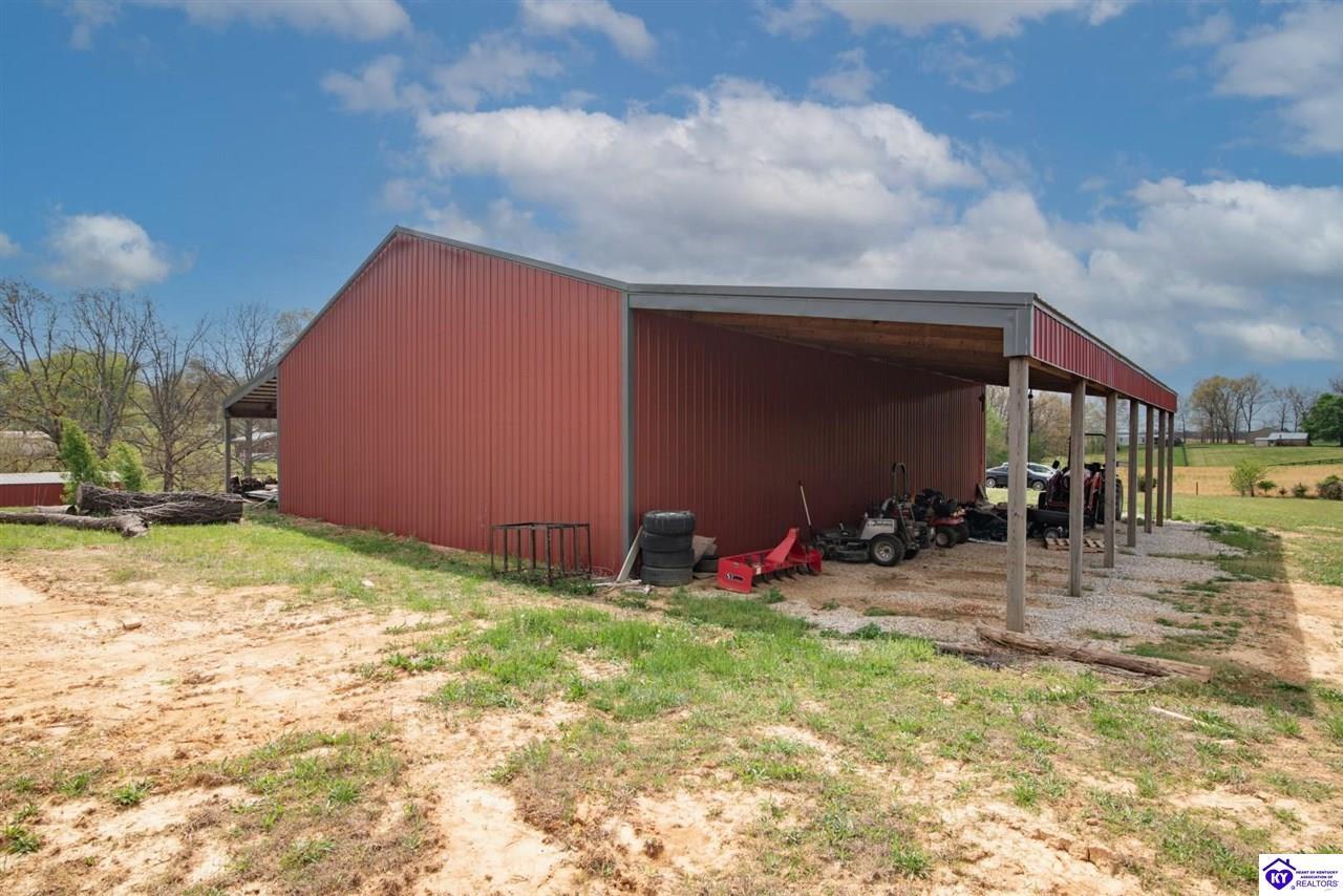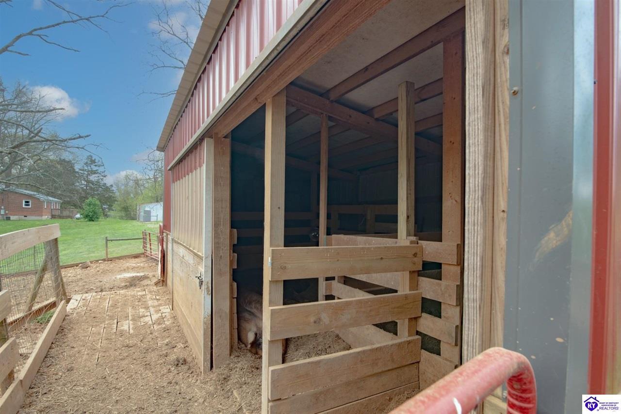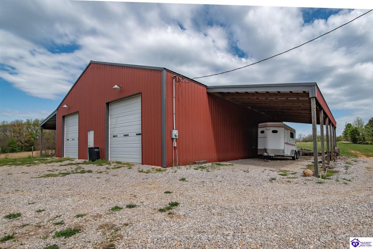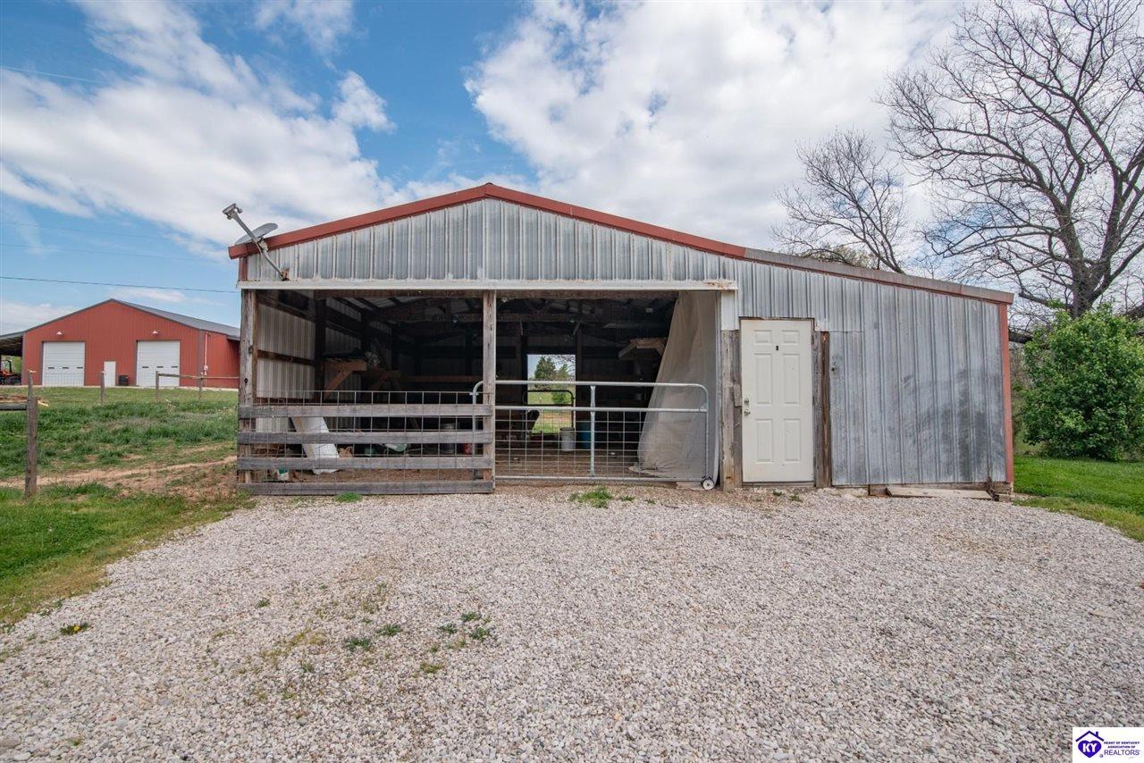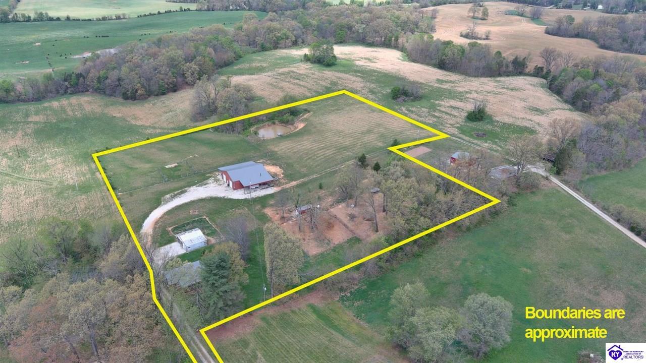 Realtor's notes: If you’ve been searching for a mini farm in Meade County, this one is a must-see. Situated on approximately 7 acres, this fully fenced property offers a 3-bedroom, 1 updated full bath country-style house with hard surface flooring throughout the main living areas. The layout is comfortable and functional, complemented by an oversized covered front porch—perfect for relaxing summer evenings. Outbuildings include a 28x30 detached garage near the home and a 10x28 structure currently used as a pig barn. The standout feature is the impressive 48x60 shop (concrete floor and electric) and complete with two lean-tos measuring 18x50 and 18x60, providing excellent space for equipment, storage, or hobby use. The land also features a pond, apple and pear trees, along with blackberry and blueberry bushes—offering both beauty and productivity. Properties like this don’t come along often—don’t miss your opportunity to own your own slice of country living.