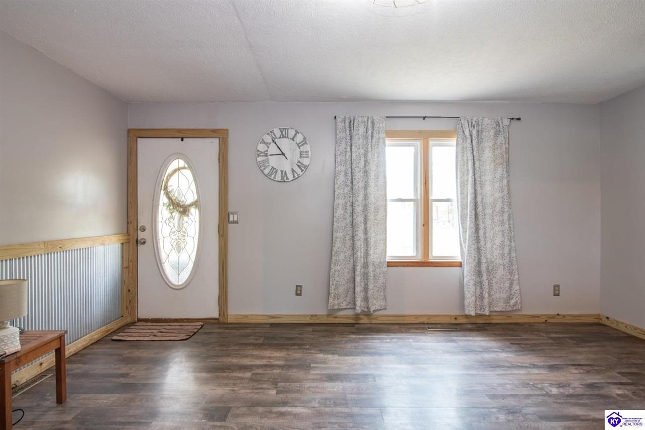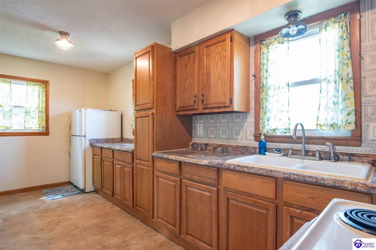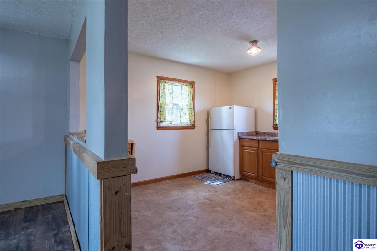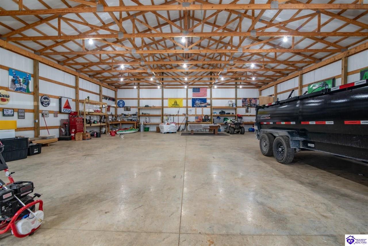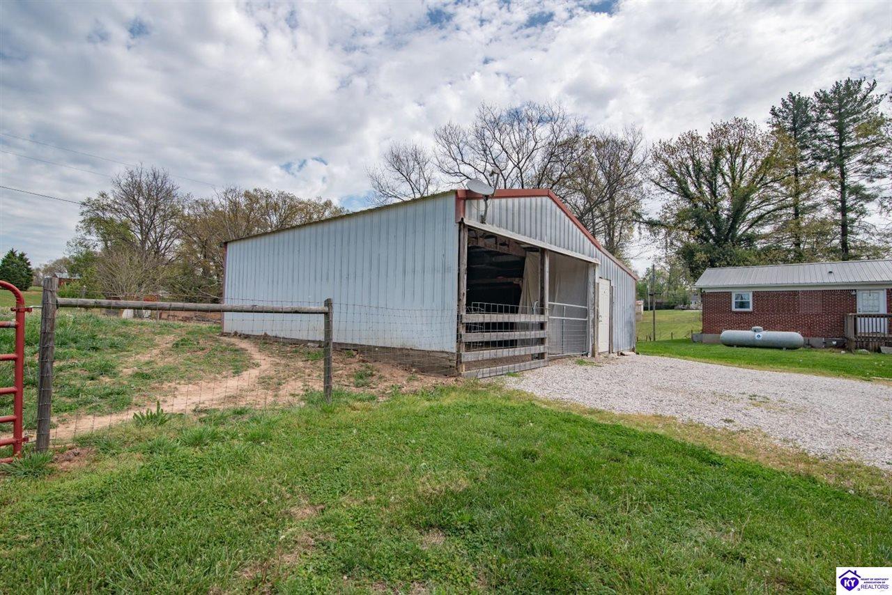 Realtor's notes: If you’ve been searching for a mini farm in Meade County, this one is a must-see. Situated on approximately 7 acres, this fully fenced property offers a 3-bedroom, 1 updated full bath country-style house with hard surface flooring throughout the main living areas. The layout is comfortable and functional, complemented by an oversized covered front porch—perfect for relaxing summer evenings. Outbuildings include a 28x30 detached garage near the home and a 10x28 structure currently used as a pig barn. The standout feature is the impressive 48x60 shop (concrete floor and electric) and complete with two lean-tos measuring 18x50 and 18x60, providing excellent space for equipment, storage, or hobby use. The land also features a pond, apple and pear trees, along with blackberry and blueberry bushes—offering both beauty and productivity. Properties like this don’t come along often—don’t miss your opportunity to own your own slice of country living.