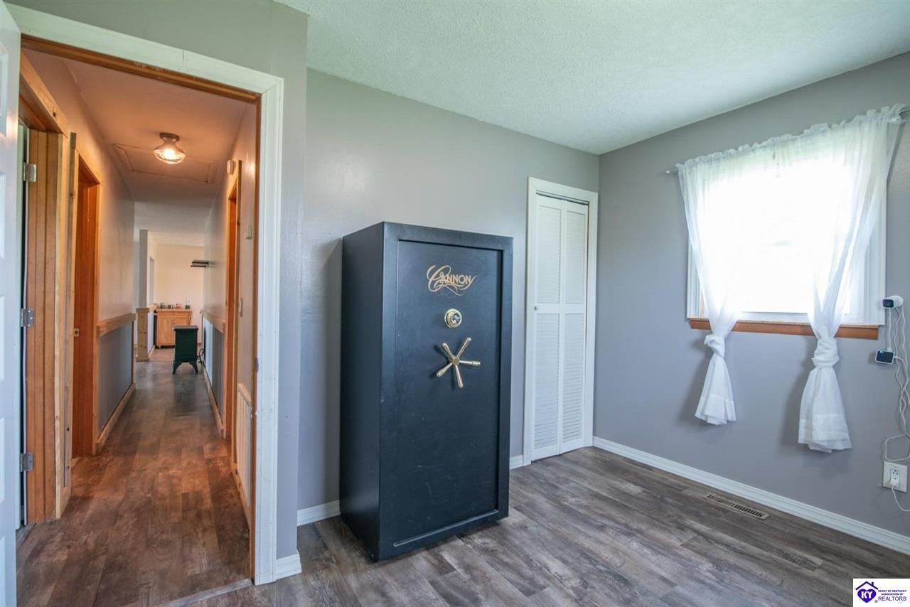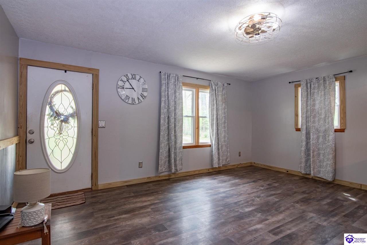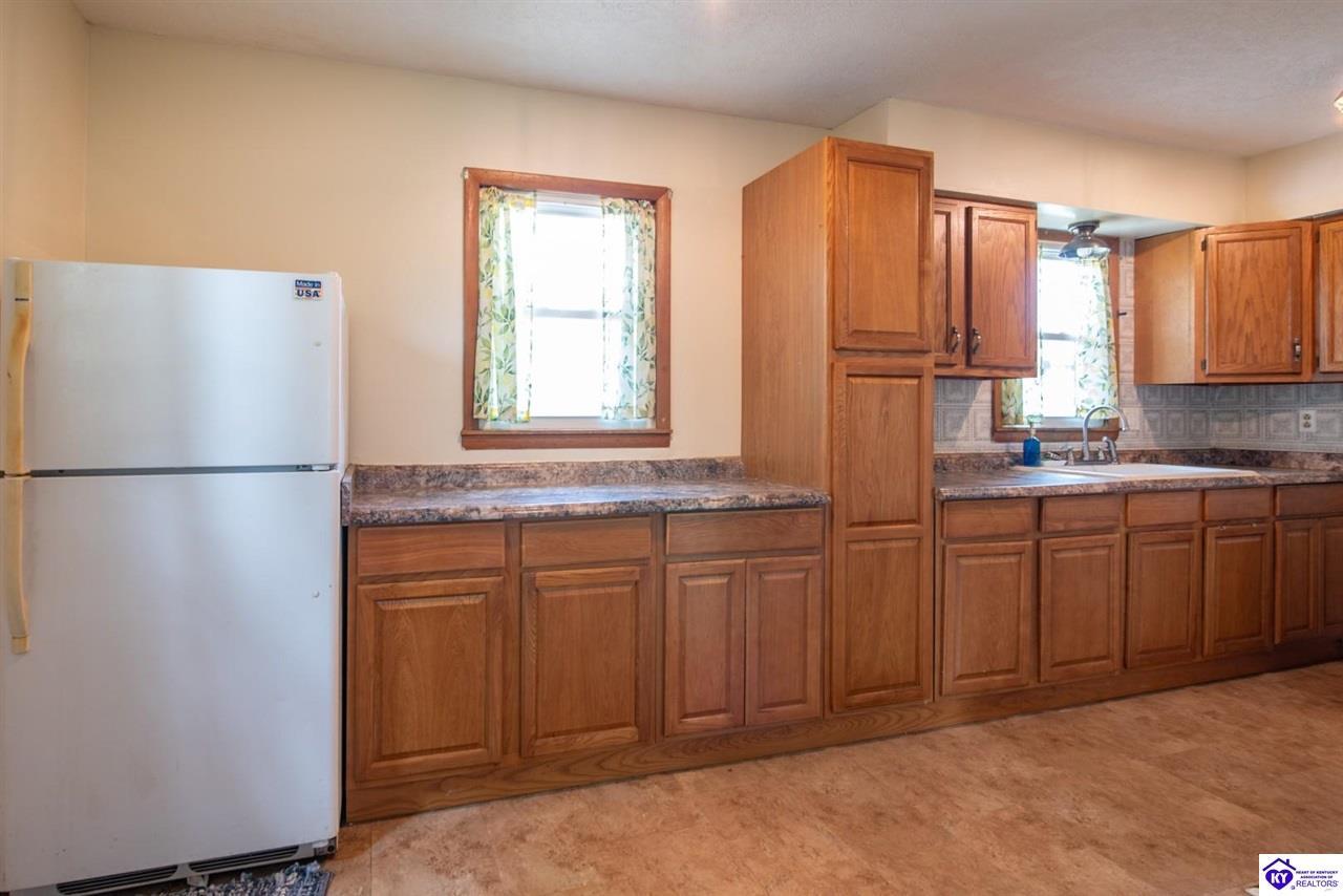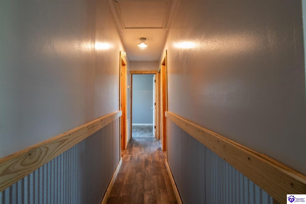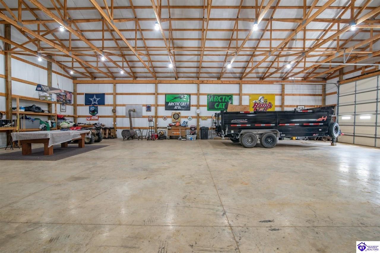 Realtor's notes: If you’ve been searching for a mini farm in Meade County, this one is a must-see. Situated on approximately 7 acres, this fully fenced property offers a 3-bedroom, 1 updated full bath country-style house with hard surface flooring throughout the main living areas. The layout is comfortable and functional, complemented by an oversized covered front porch—perfect for relaxing summer evenings. Outbuildings include a 28x30 detached garage near the home and a 10x28 structure currently used as a pig barn. The standout feature is the impressive 48x60 shop (concrete floor and electric) and complete with two lean-tos measuring 18x50 and 18x60, providing excellent space for equipment, storage, or hobby use. The land also features a pond, apple and pear trees, along with blackberry and blueberry bushes—offering both beauty and productivity. Properties like this don’t come along often—don’t miss your opportunity to own your own slice of country living.