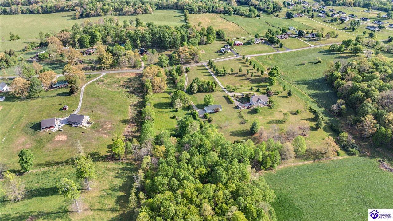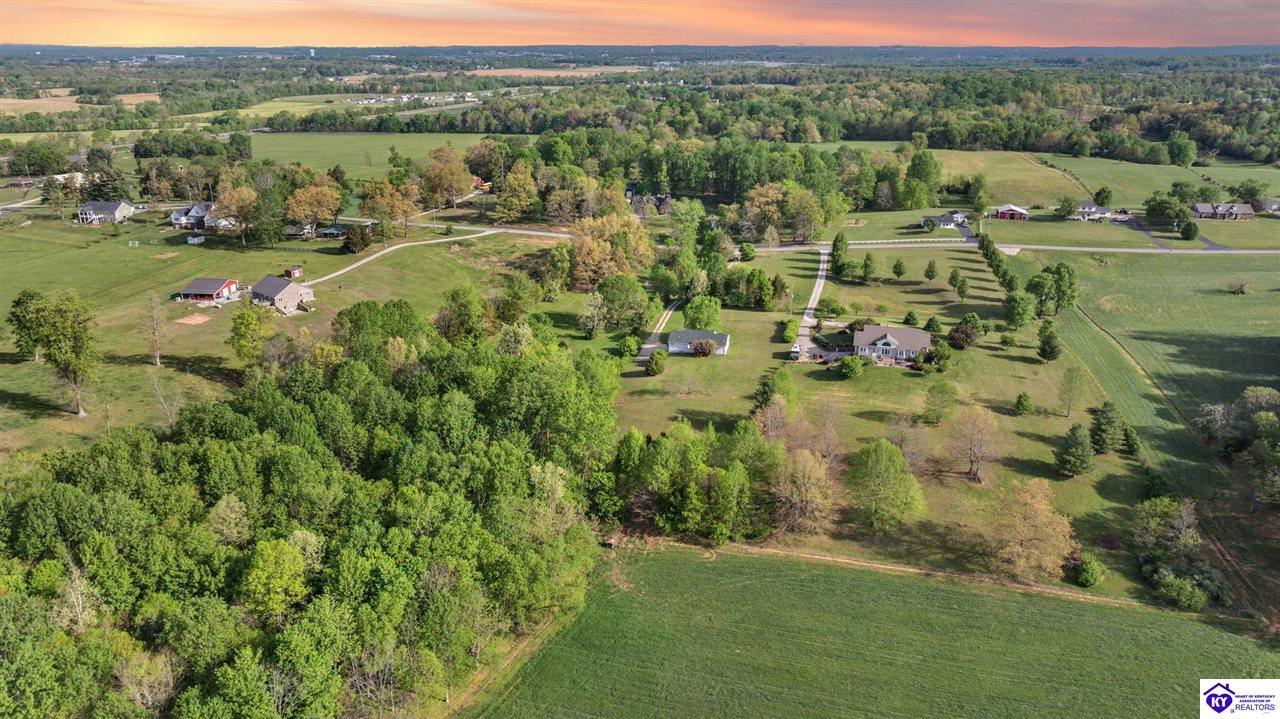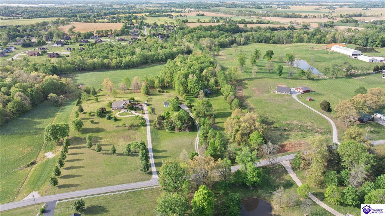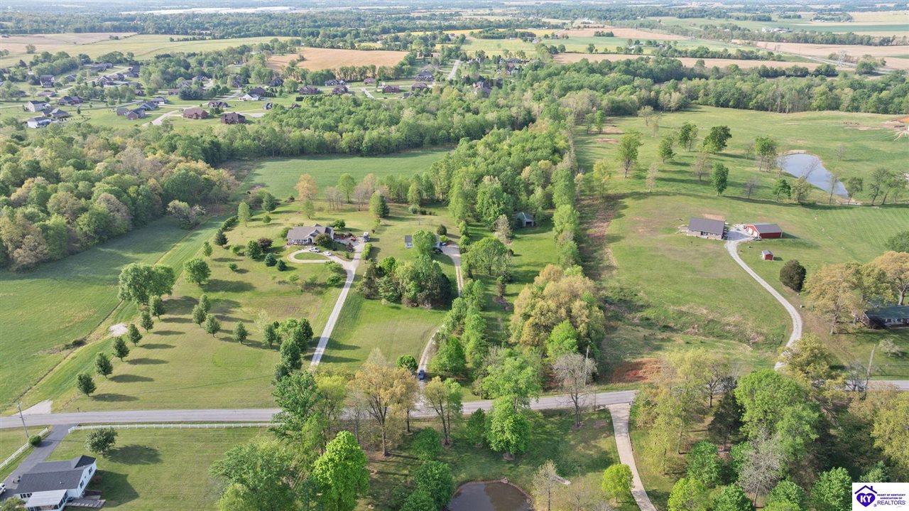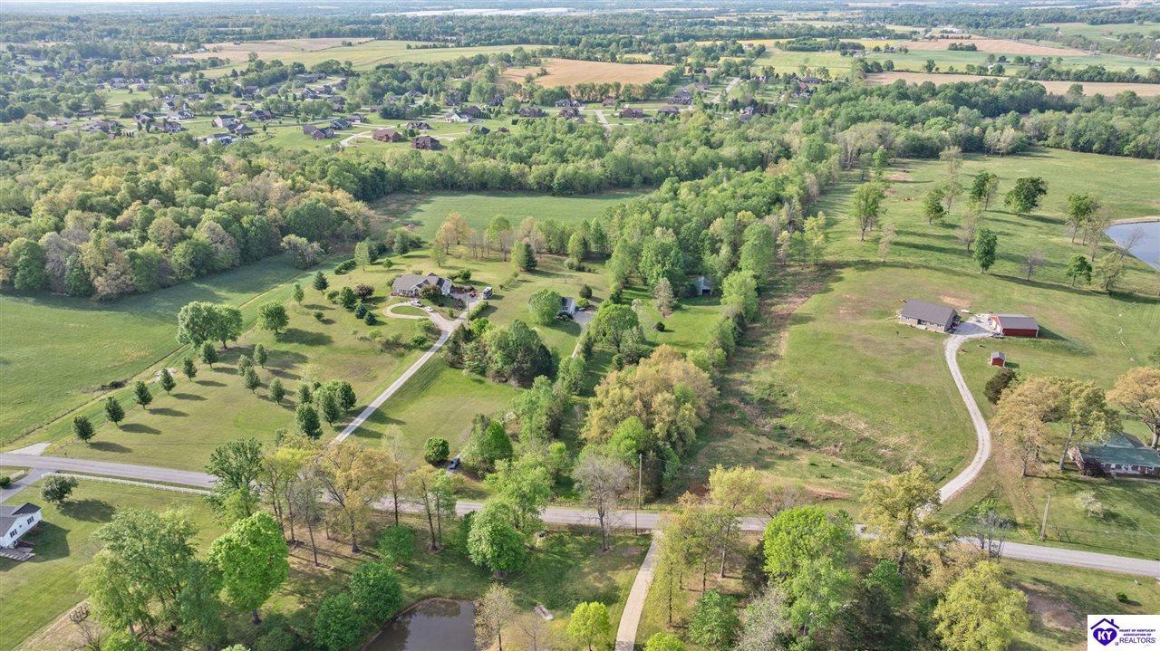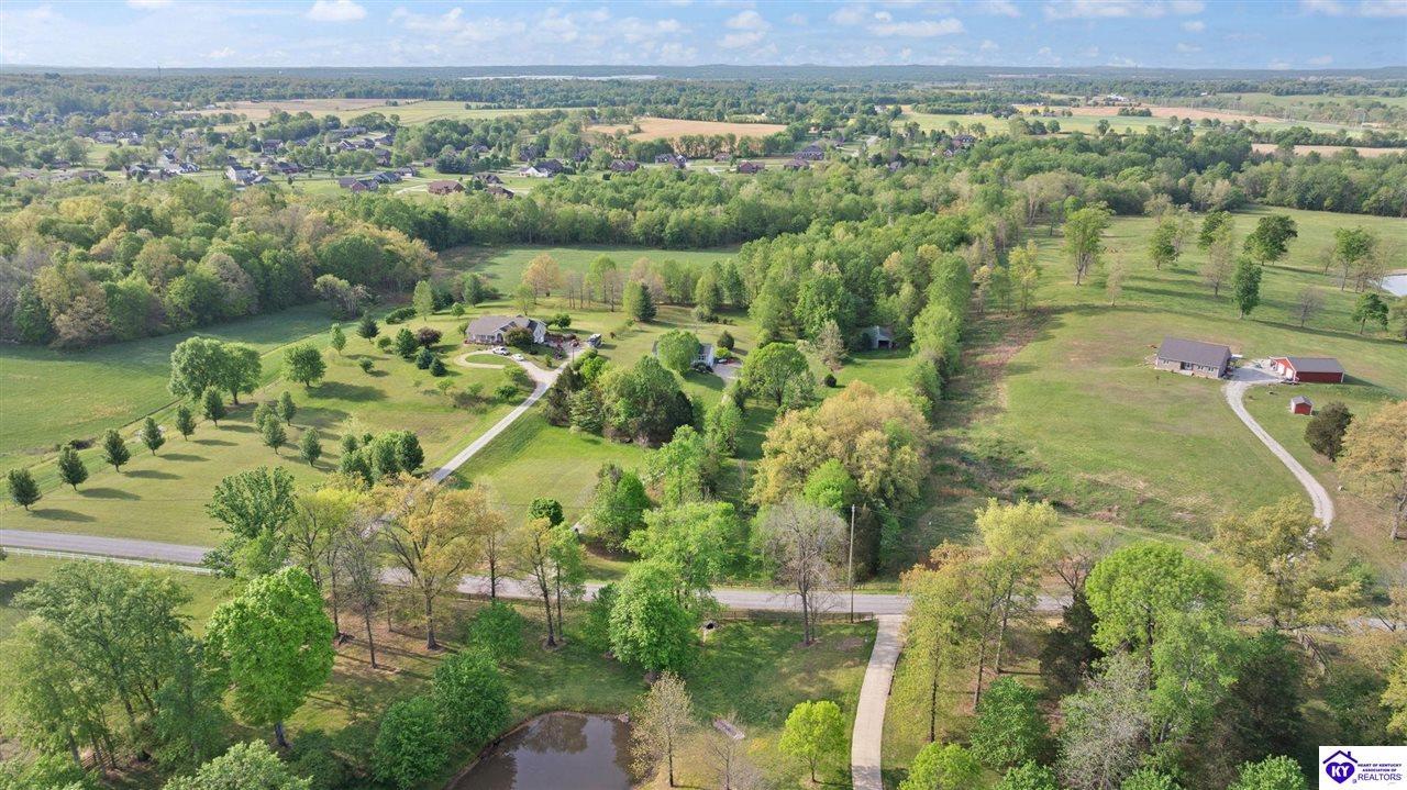 Realtor's notes: Welcome home to this raised ranch situated on 5 private, tree-lined acres just outside the Elizabethtown city limits. This custom-built, one-owner home has been well maintained and features a desirable split floor plan with an open-concept living area and hardwood floors. All bedrooms are generously sized and include walk-in closets. The recently remodeled primary suite offers a spacious walk-in closet with a custom storage system and a beautifully updated bathroom featuring a double vanity, separate walk-in shower, and relaxing whirlpool tub. The kitchen includes a walk-in pantry, full appliance package, and recent updates such as a newer refrigerator and dishwasher. The unfinished basement provides excellent potential for additional living space, ready for your personal touch. Enjoy the versatility of the 5-acre property, complete with a detached building previously used for horses—ideal for a hobby farm, workshop, or recreational use. Bring your ideas and make it your own!