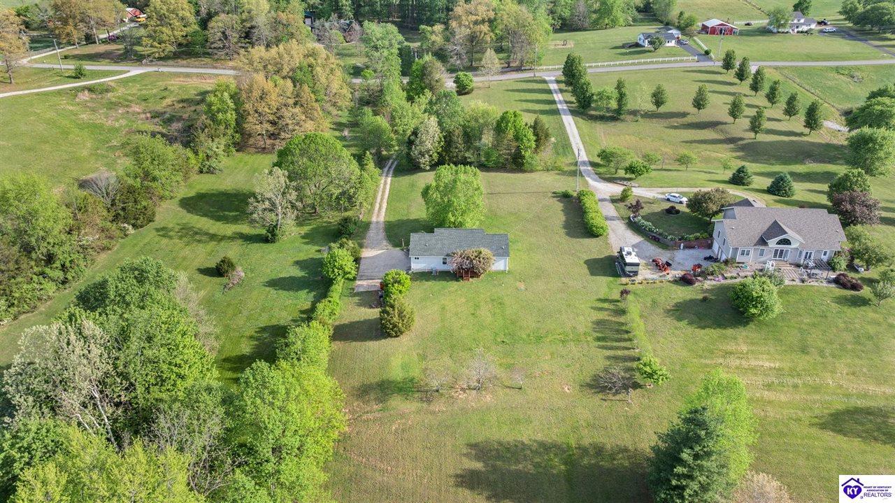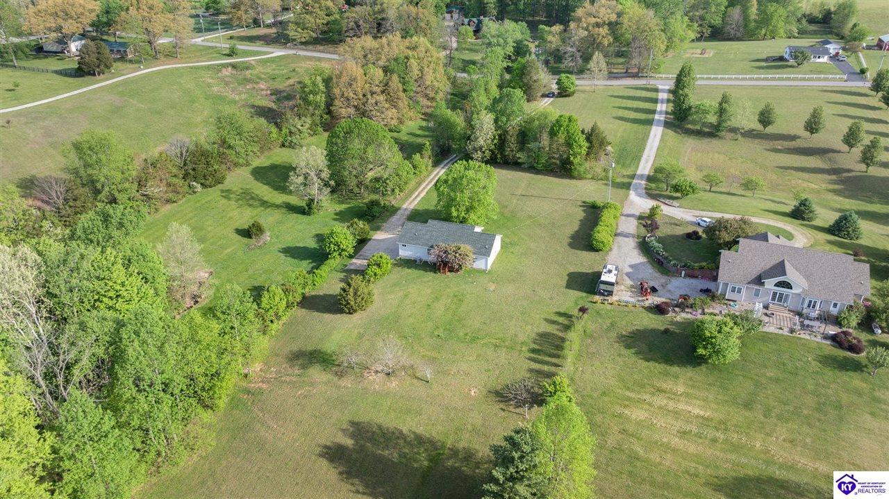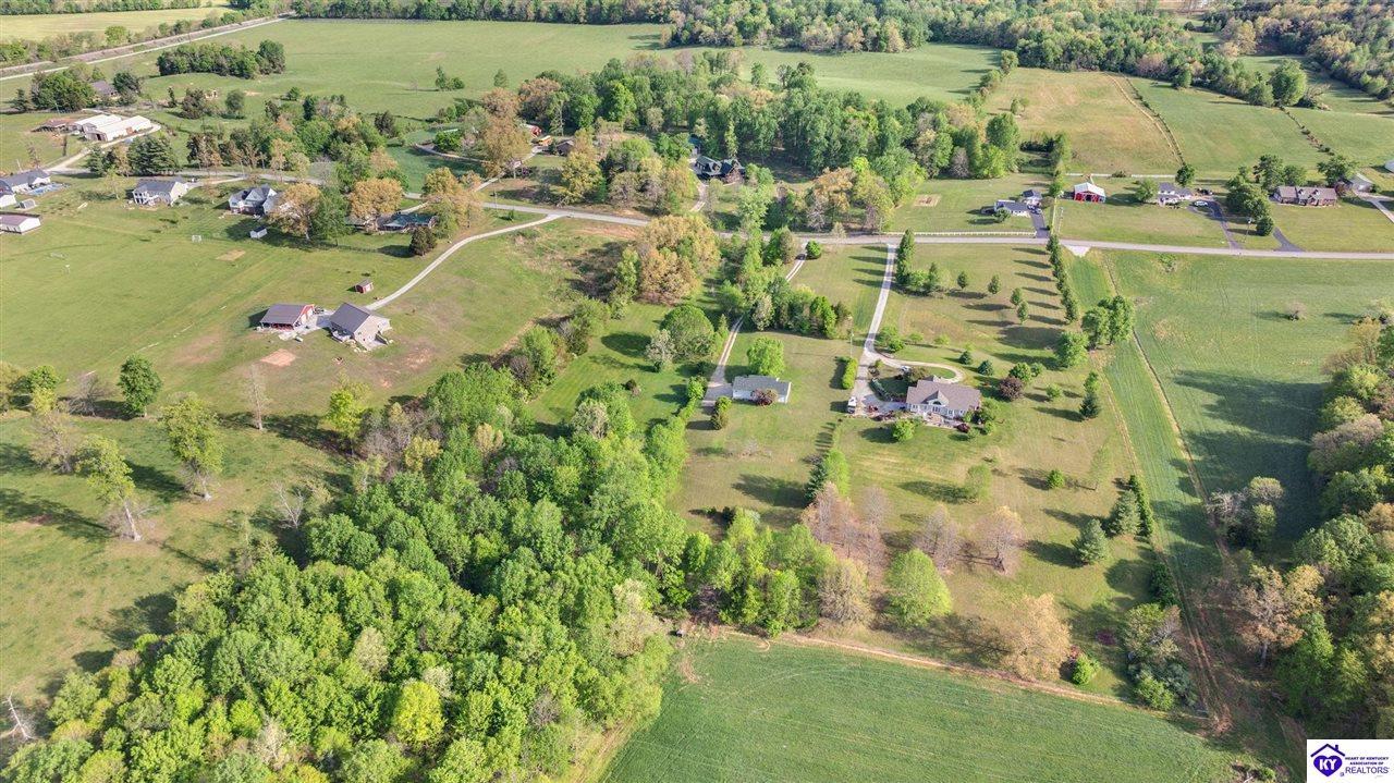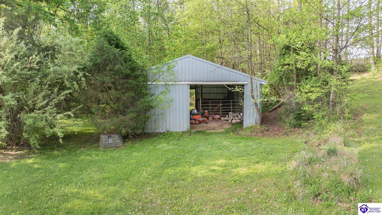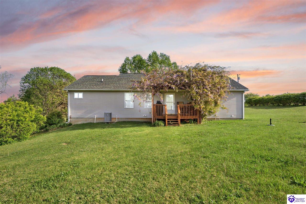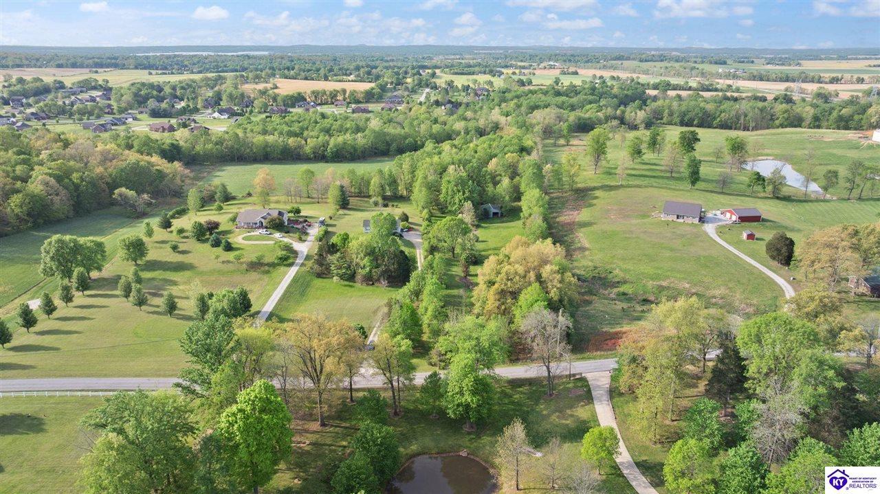 Realtor's notes: Welcome home to this raised ranch situated on 5 private, tree-lined acres just outside the Elizabethtown city limits. This custom-built, one-owner home has been well maintained and features a desirable split floor plan with an open-concept living area and hardwood floors. All bedrooms are generously sized and include walk-in closets. The recently remodeled primary suite offers a spacious walk-in closet with a custom storage system and a beautifully updated bathroom featuring a double vanity, separate walk-in shower, and relaxing whirlpool tub. The kitchen includes a walk-in pantry, full appliance package, and recent updates such as a newer refrigerator and dishwasher. The unfinished basement provides excellent potential for additional living space, ready for your personal touch. Enjoy the versatility of the 5-acre property, complete with a detached building previously used for horses—ideal for a hobby farm, workshop, or recreational use. Bring your ideas and make it your own!