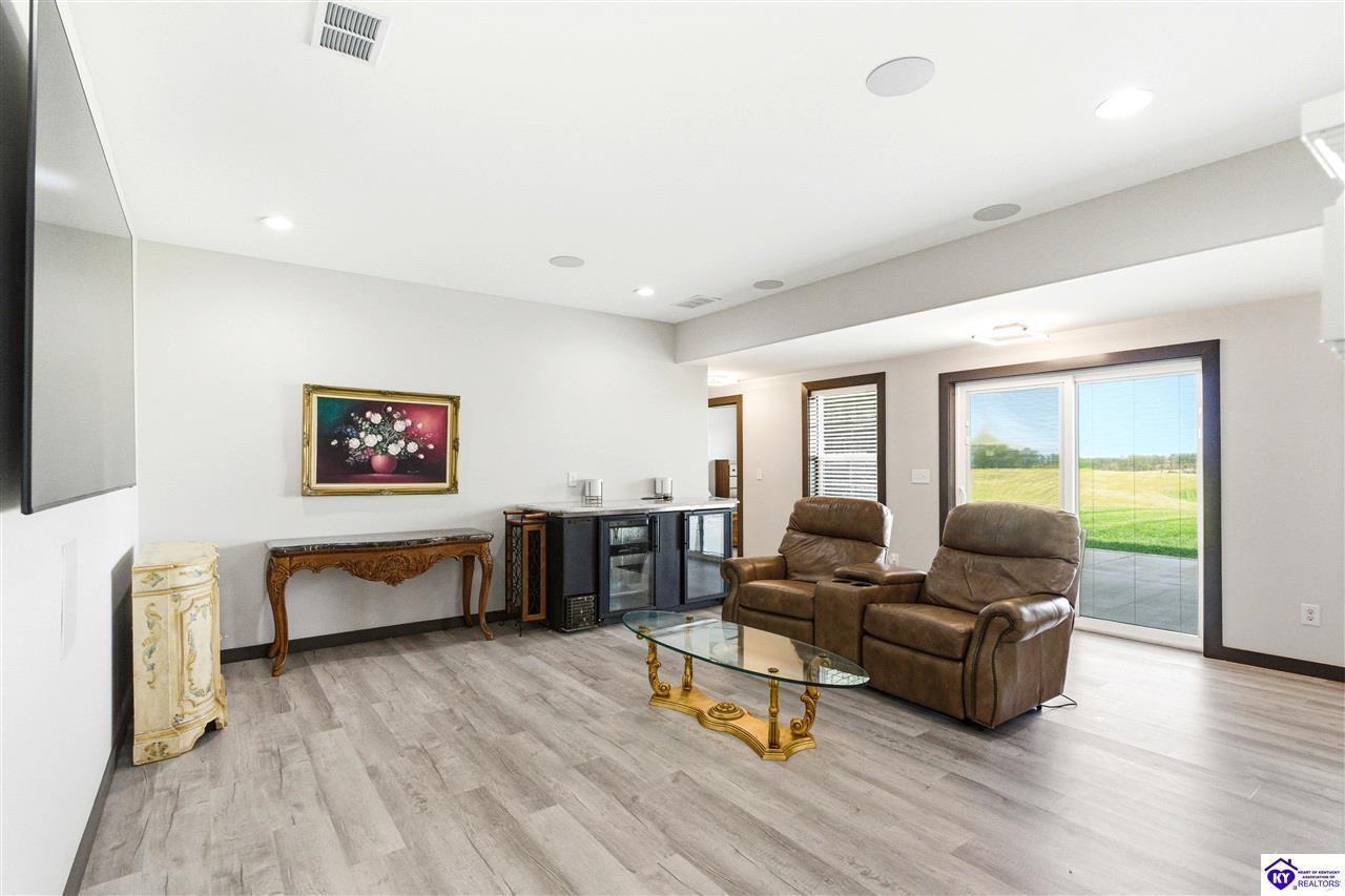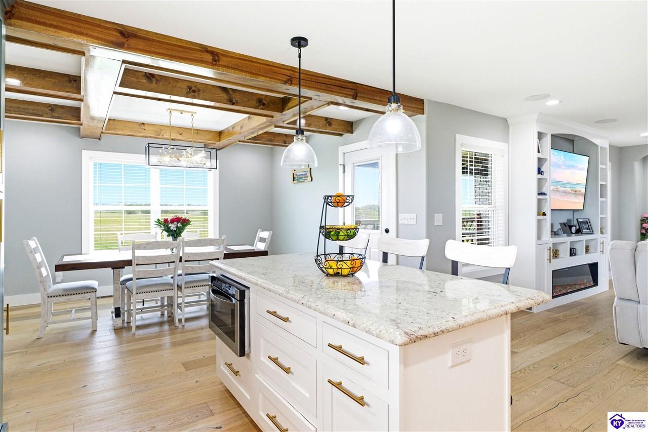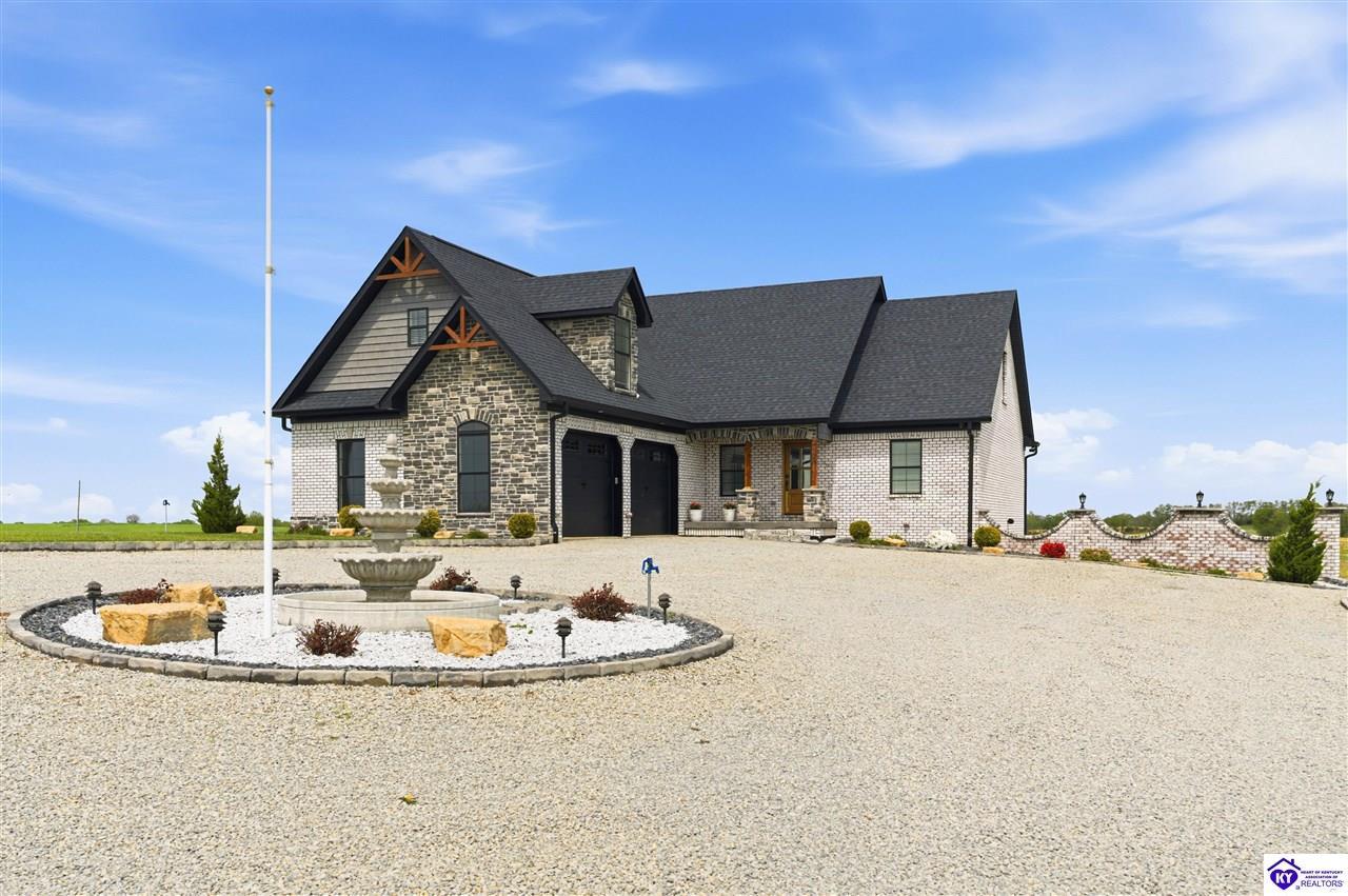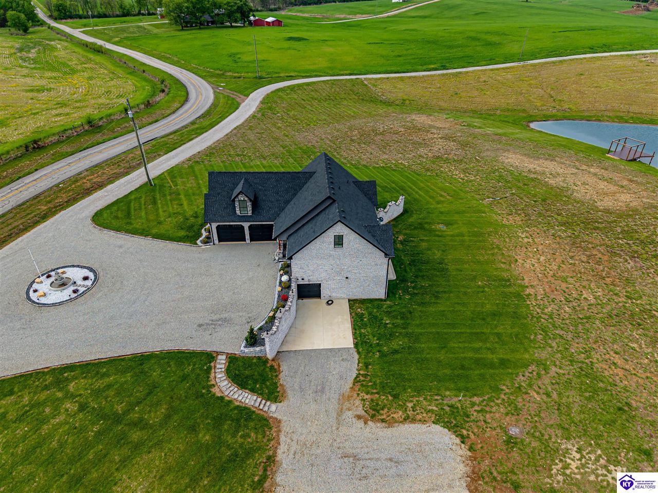 Realtor's notes: Why wait years to build when your absolute dream home is standing ready right now? This is the rare opportunity to skip the construction stress and move directly into a 2024-built architectural masterpiece sitting on over 15 pristine acres of pure tranquility. This stunning all-brick estate is a rare jewel in today’s market, offering the perfect combination of modern luxury, wide-open space, and total peace of mind. From the moment you arrive, you will feel completely at ease knowing the entire property is protected by a professional-grade security camera system already installed throughout the home. Inside, you are greeted by a breathtaking open living space defined by soaring ceilings, elegant built-in bookshelves, and rich engineered hardwood floors. The atmosphere is further enhanced by an integrated surround sound system that carries your favorite music throughout the entire home. The chef-inspired kitchen is a dream come true, featuring a massive bartop where family can gather, all leading into a magical dining room adorned with beautiful ceiling beams. Every inch of this home showcases superior craftsmanship, from the custom rounded doorways to the intricate architectural details in the ceilings of every bedroom. The layout is designed for effortless living, with the primary suite and laundry conveniently located on the main level. The primary bathroom is a true show-stopper, featuring exquisite tile work, a deep soaking tub, and a custom shower that feels like a private spa. Upstairs, the children have their own secluded sanctuary with two spacious bedrooms located at opposite ends of the house, separated by a large flex room perfect for a playroom or study. The luxury extends all the way to the fully finished walkout basement. This massive additional living space is ready for your movie theater, a secondary entertainment hub, and features extra guest quarters. There is even a built-in storm shelter for the ultimate safety of your family. Outside, your private oasis awaits on the covered back porch, which is already pre-wired for a jacuzzi and an inground pool. Imagine looking out over your 15 acres of rolling fields and mother nature at its finest. An opportunity of this caliber—a fully finished, high-tech new construction on significant acreage—is nearly impossible to find. Do not wait for the "perfect" home to be built; it is standing here, safe and sound, waiting for you. Call today for your private viewing before someone buys your home.