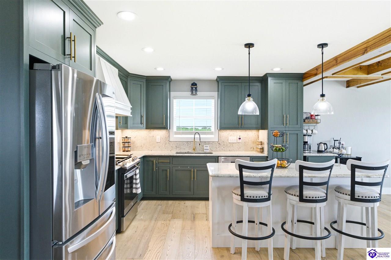 Kitchen Dishwasher, Disposal, Eat-In, Granite Counter Tops, Kitchen Bar, Microwave, Range Gas, Range Hood, Refrigerator