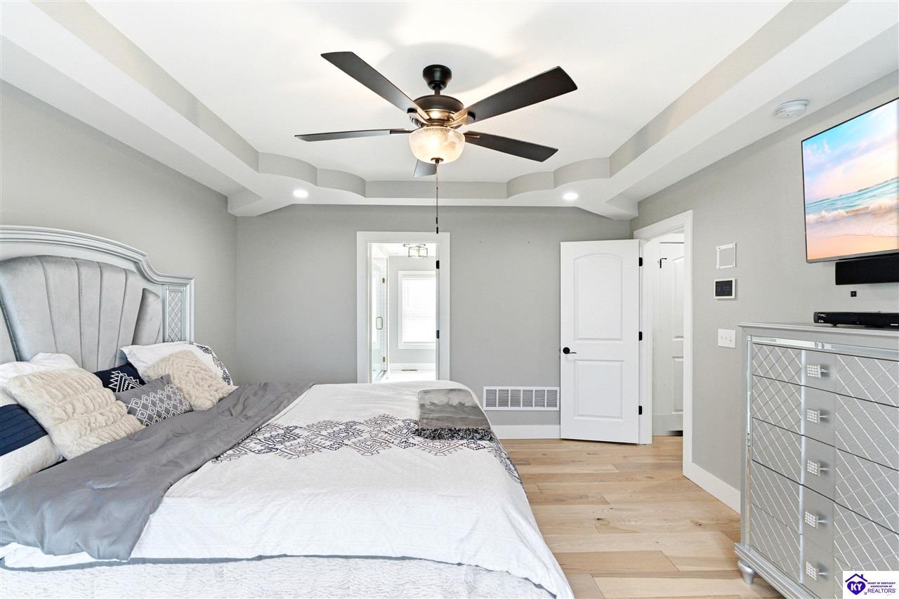 Interior Bookshelves, Ceiling Fan(s), Chandeliers, Closet Light(s), Tray Ceiling(s), Walk-in Closet(s)