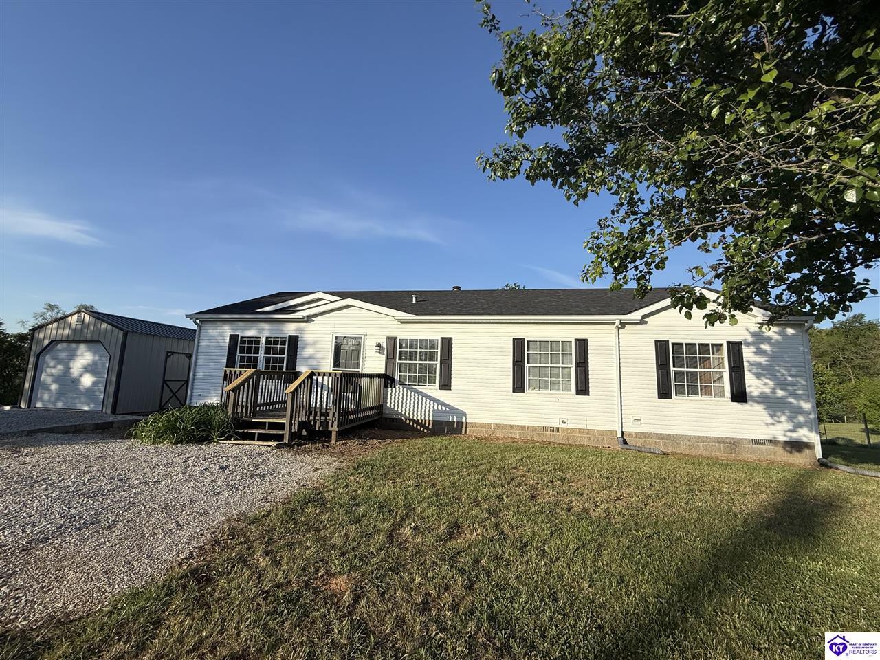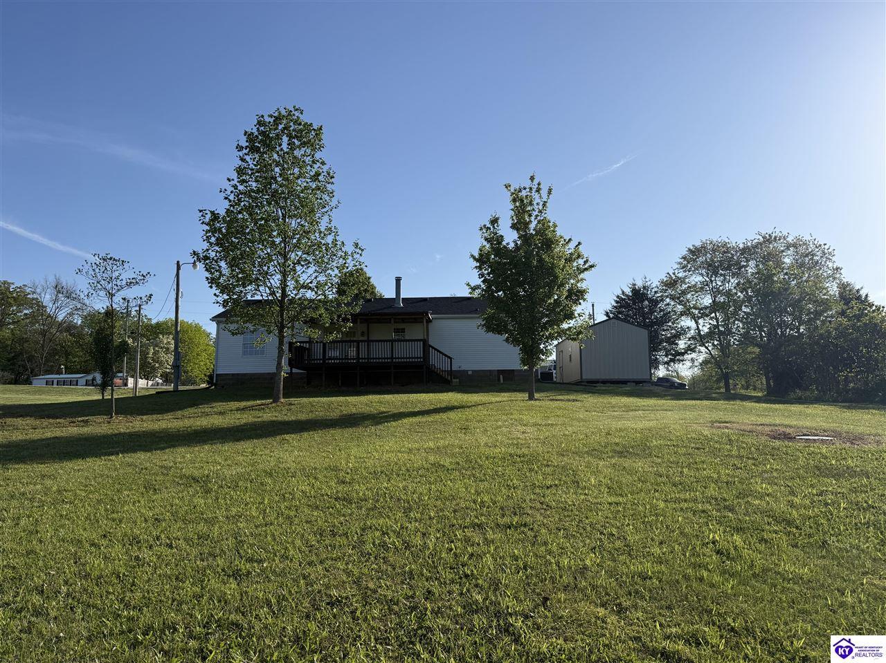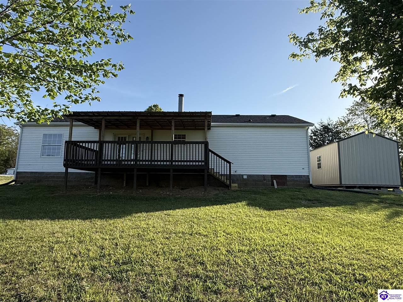 Realtor's notes: Charming 3 bedroom, 2 bathroom home located in the heart of Ekron, KY! This property offers a great location with convenient access to nearby amenities while still providing a peaceful setting. Inside, you’ll find a cozy wood fireplace, spacious walk-in closets, and a functional layout perfect for everyday living. Step outside to enjoy the covered rear deck overlooking a large backyard—ideal for relaxing or entertaining. Additional building remains on the property provide extra potential for storage or future use. Qualifies for FHA & VA financing. Don't miss out on your chance to own this beautiful home!