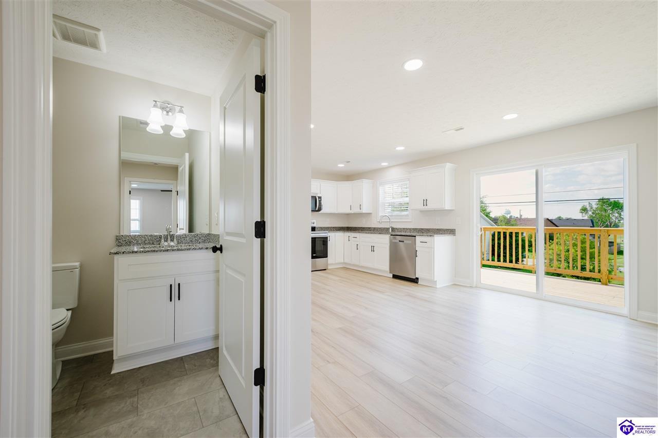 Realtor's notes: Step into this brand-new home crafted by a trusted local builder who takes pride in quality, detail, and thoughtful design. With 1,885 finished square feet, this home perfectly balances modern finishes with timeless comfort. The open-concept main level features bright natural light and a spacious living area ideal for relaxing or entertaining. The kitchen shines with granite countertops, stainless steel appliances, and a seamless flow into the dining and living spaces. Just off the kitchen, the sliding glass doors lead to a new back deck—the perfect spot for summer cookouts or morning coffee. The primary bedroom suite is conveniently located on the main floor, offering privacy and ease of living. It includes a walk-in closet and a large bathroom with dual vanity. Upstairs, you'll find two additional bedrooms and a full bath. Buyers get a 1 Year Home Warranty and blue tape punch list walkthrough with the builder rep before closing.