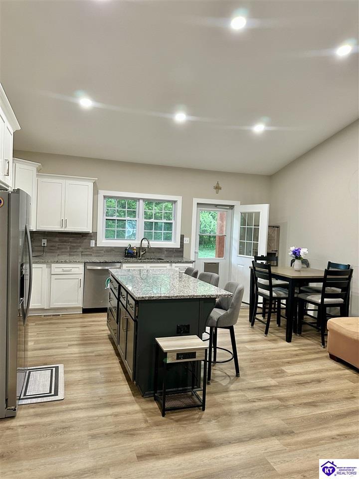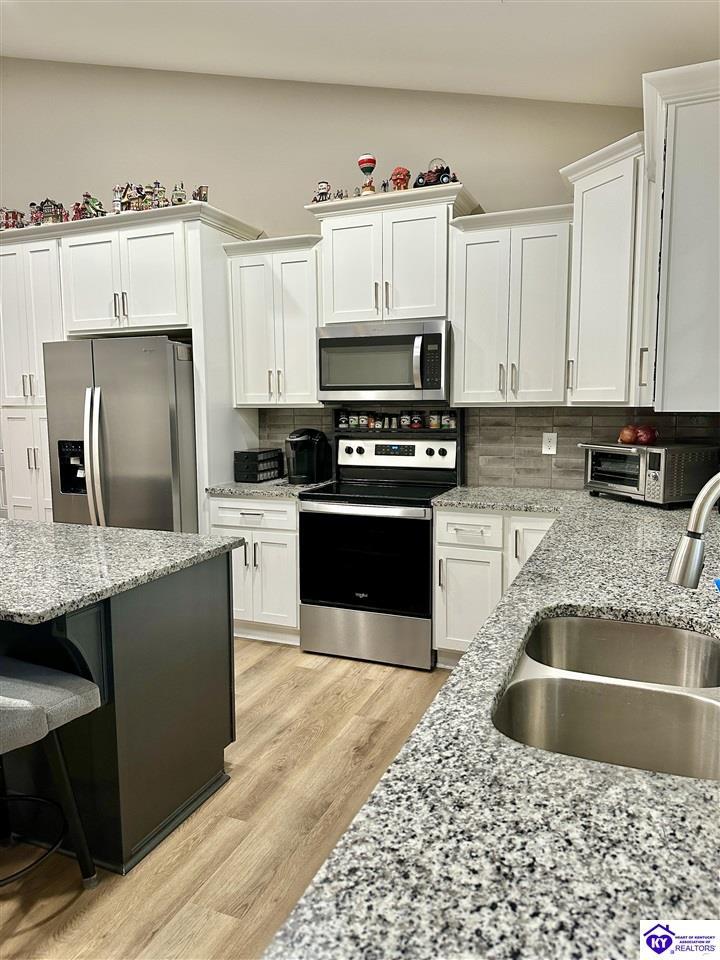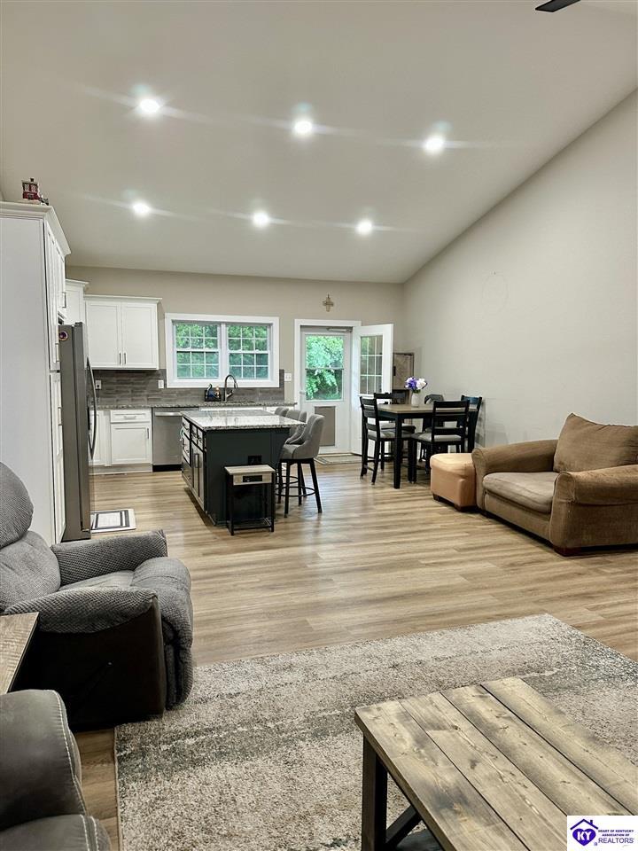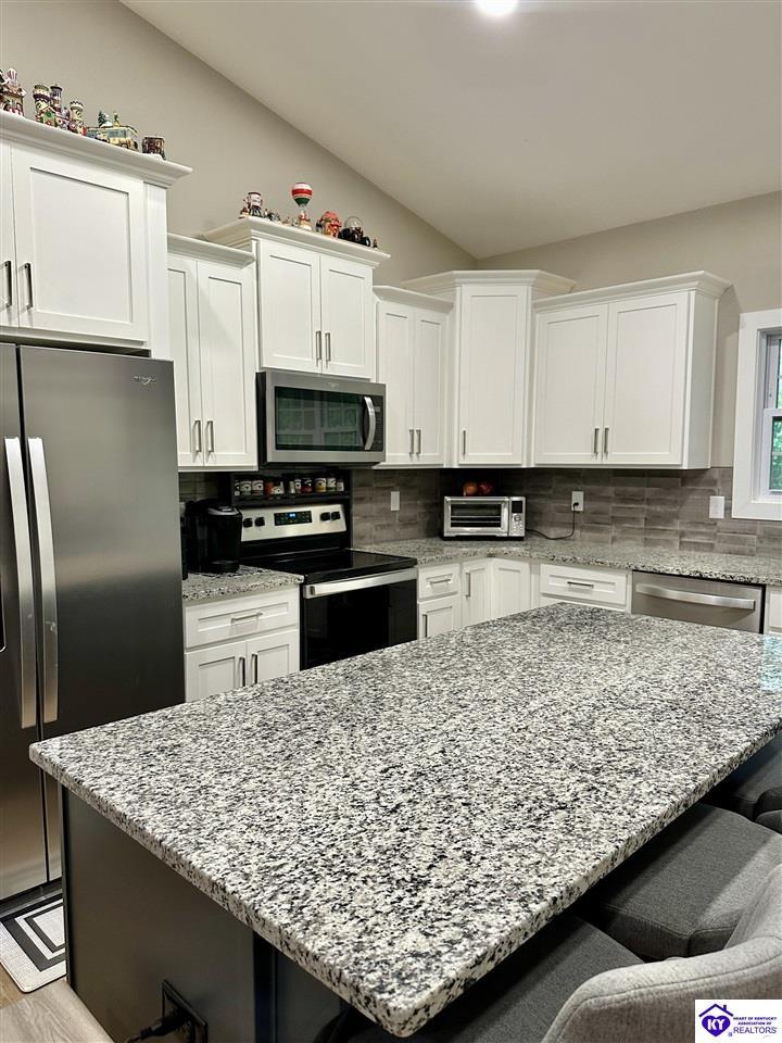 Realtor's notes: Spacious and beautifully designed, this 5-bedroom, 3-bath brick home offers the perfect blend of comfort and style. Step inside to a stunning vaulted great room that flows seamlessly into the open-concept living and kitchen area—ideal for entertaining and everyday living. The kitchen features granite countertops and ample space for gathering. The finished basement boasts a large family room with durable LVP flooring, providing plenty of room for relaxation or recreation. The primary suite includes a tiled shower for a touch of luxury, while two water heaters ensure convenience for a busy household. Enjoy outdoor living year-round with both covered front and back porches, perfect for morning coffee or evening unwinding. This home truly has the space, features, and layout to meet all your needs.