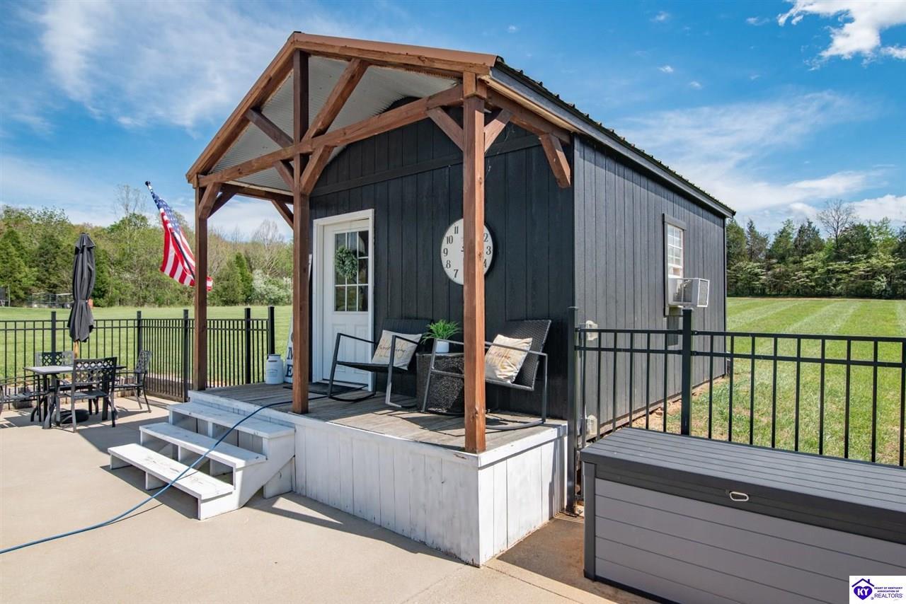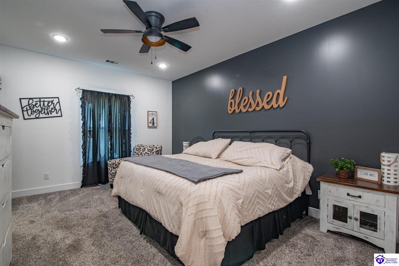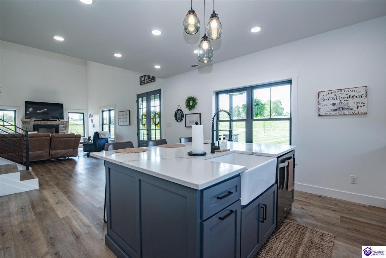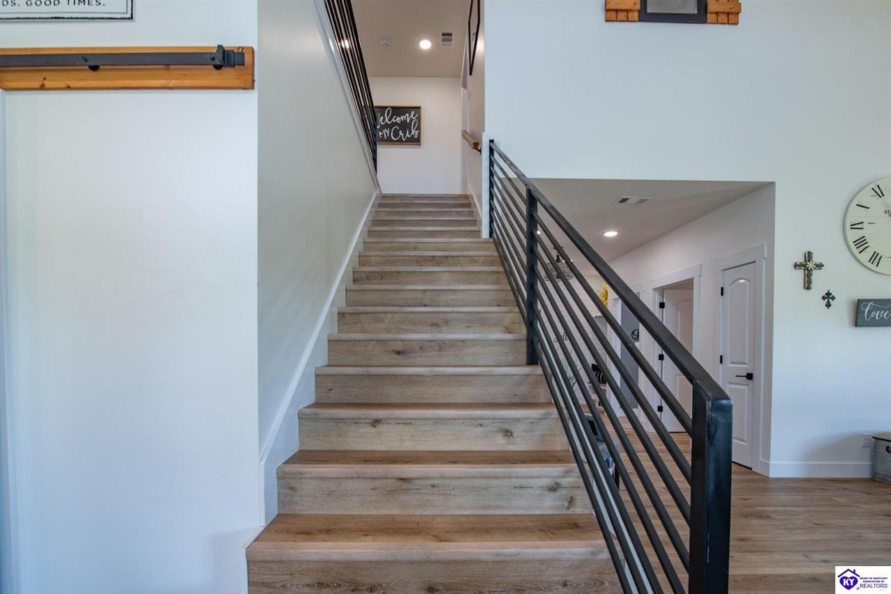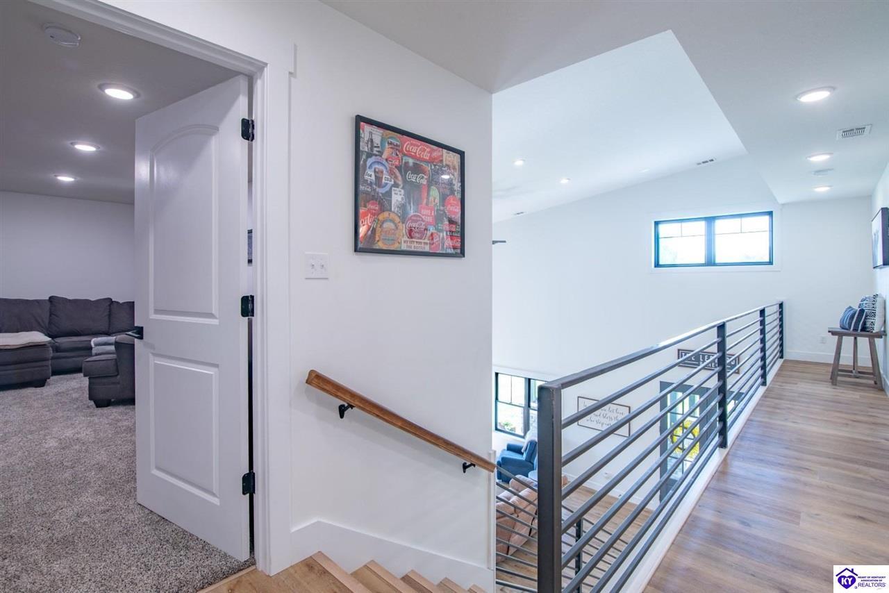 Realtor's notes: WELCOME TO 888 MILAN RD., Payneville, KY. This Beautiful custom designed Barndominium-style home features 3 bedrooms and 4 baths,2 kitchens, a 50' x 60' Shop/Garage complete with 2: 12' x 12' Garage Doors, and 1: 16' x 12' Center Door with Commercial & wall mount openers. A 10' x 10' glass Garage door leads out to covered patio & breathtaking pool area . The main kitchen is a standout with quartz countertops, custom cabinetry, large island, pantry, & Gas range/oven, opening to a warm, inviting living space with a Gas Log fireplace. The Primary Suite offers a relaxing retreat with a beautiful en-suite bath and Large walk in closet. A spacious , well-organized Main level Laundry Room adds to this home's everyday functionality & convenience. Upper level features a Lg. Bonus/Family room, 2 bedrooms with walk in closets, and a full bathroom with double vanity. The TRUE highlight of this property is the separate entertainment living area, complete with a 2nd kitchen & 4th Bathroom, offering flexible space for guests, and large gatherings. This area opens directly onto a large covered patio, leading to a stunning custom designed inground pool with expansive concrete decking & pool house-creating a private outdoor oasis. All situated on mostly open, beautifully maintained acreage with added privacy, this property offers the perfect combination of country living, modern amenities, & exceptional entertaining space. Schedule your Showing today.