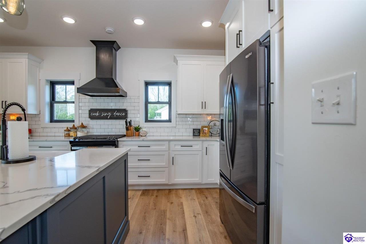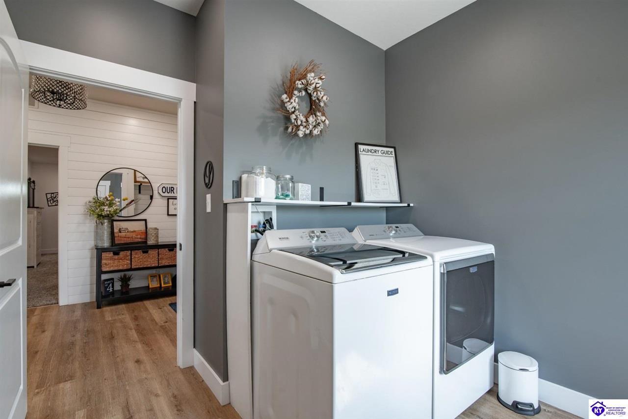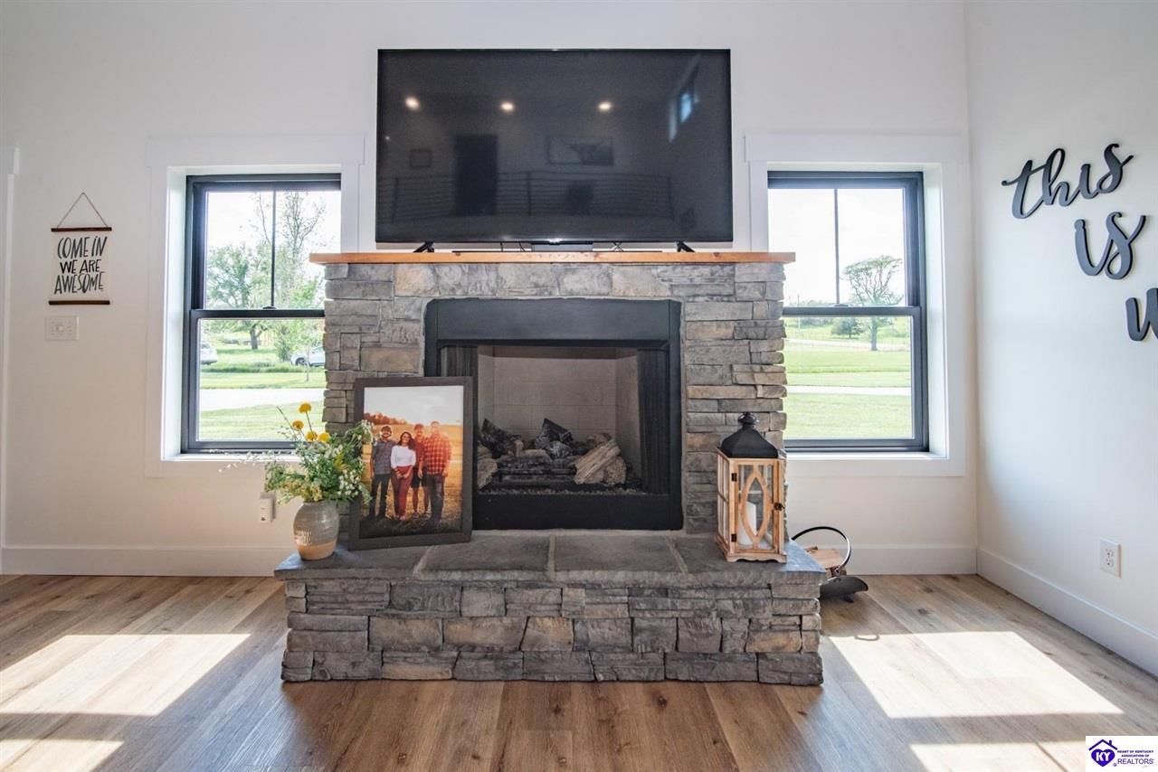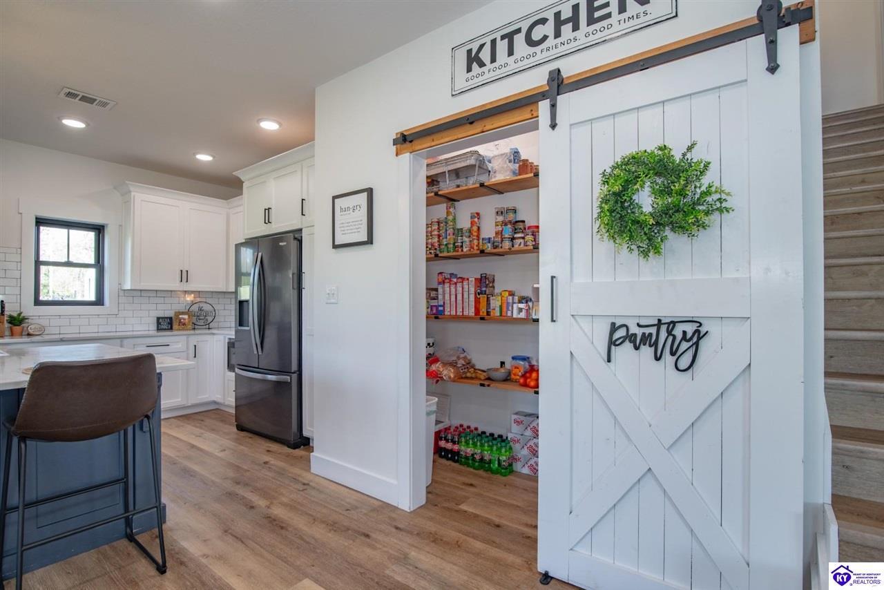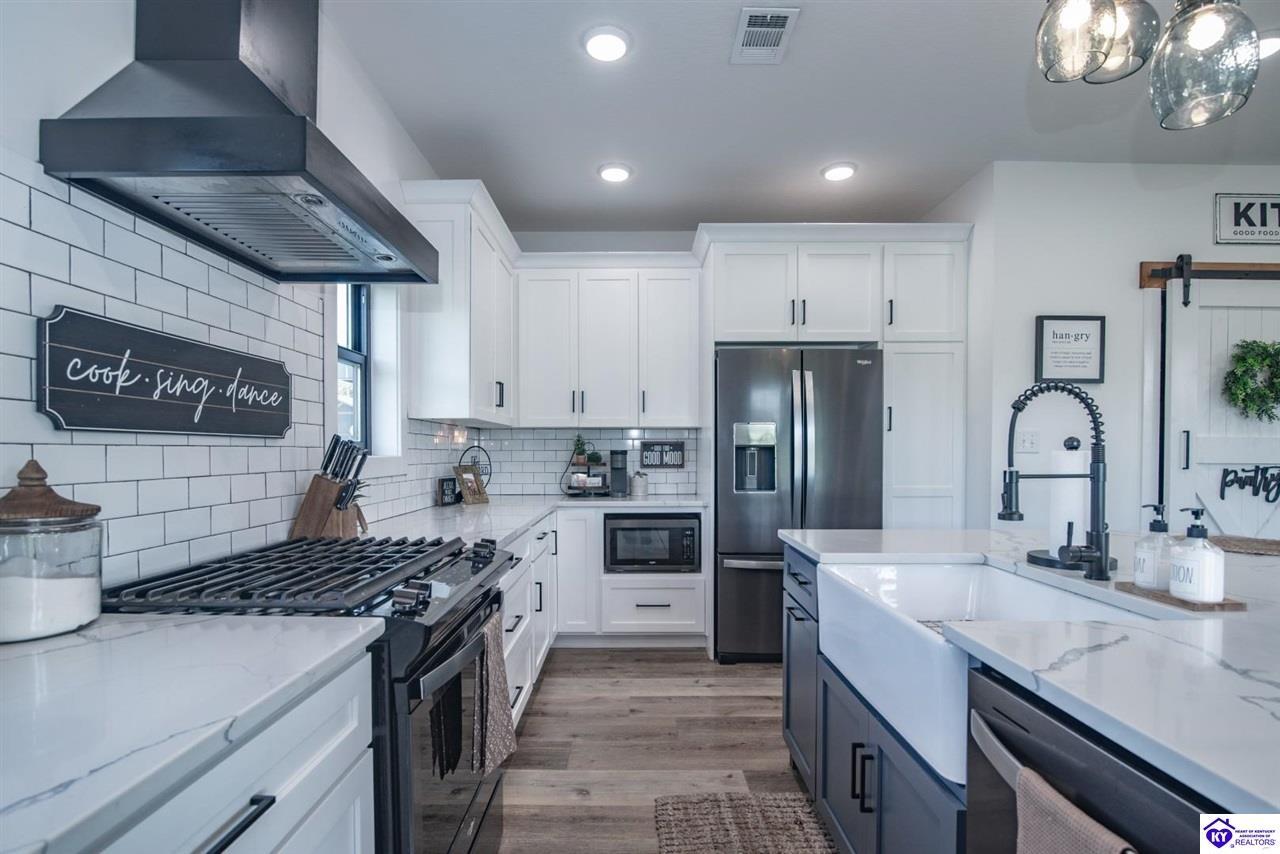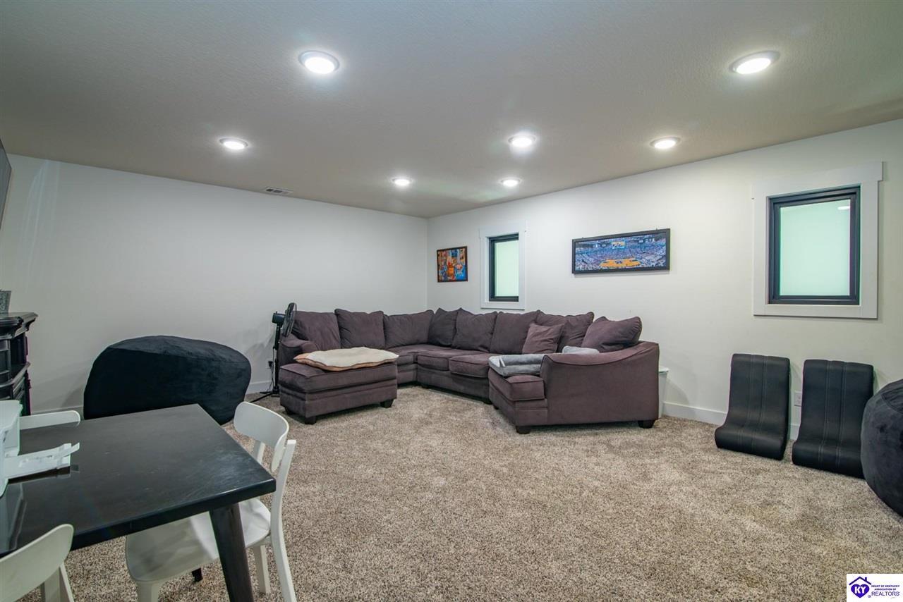 Realtor's notes: WELCOME TO 888 MILAN RD., Payneville, KY. This Beautiful custom designed Barndominium-style home features 3 bedrooms and 4 baths,2 kitchens, a 50' x 60' Shop/Garage complete with 2: 12' x 12' Garage Doors, and 1: 16' x 12' Center Door with Commercial & wall mount openers. A 10' x 10' glass Garage door leads out to covered patio & breathtaking pool area . The main kitchen is a standout with quartz countertops, custom cabinetry, large island, pantry, & Gas range/oven, opening to a warm, inviting living space with a Gas Log fireplace. The Primary Suite offers a relaxing retreat with a beautiful en-suite bath and Large walk in closet. A spacious , well-organized Main level Laundry Room adds to this home's everyday functionality & convenience. Upper level features a Lg. Bonus/Family room, 2 bedrooms with walk in closets, and a full bathroom with double vanity. The TRUE highlight of this property is the separate entertainment living area, complete with a 2nd kitchen & 4th Bathroom, offering flexible space for guests, and large gatherings. This area opens directly onto a large covered patio, leading to a stunning custom designed inground pool with expansive concrete decking & pool house-creating a private outdoor oasis. All situated on mostly open, beautifully maintained acreage with added privacy, this property offers the perfect combination of country living, modern amenities, & exceptional entertaining space. Schedule your Showing today.