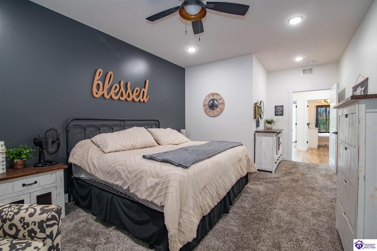 Directions: From Kroger In Brandenburg, take right onto Bypass Rd, Drive 3 miles, turn left onto Battletown Rd., drive 2.8 miles , turn left onto Milan Rd. drive .9 miles, Home is on left. Genesis Realty For Sale Sign in yard. A very short 7 mile drive to Kroger.