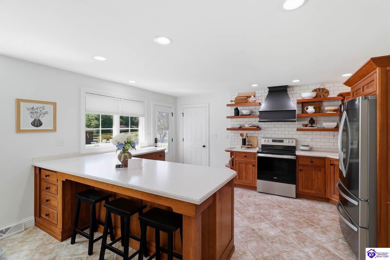 Kitchen Dishwasher, Disposal, Pantry, Range/Oven, Refrigerator, Solid Surface Counter Top