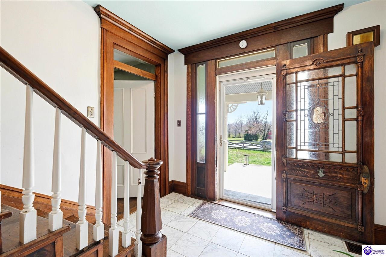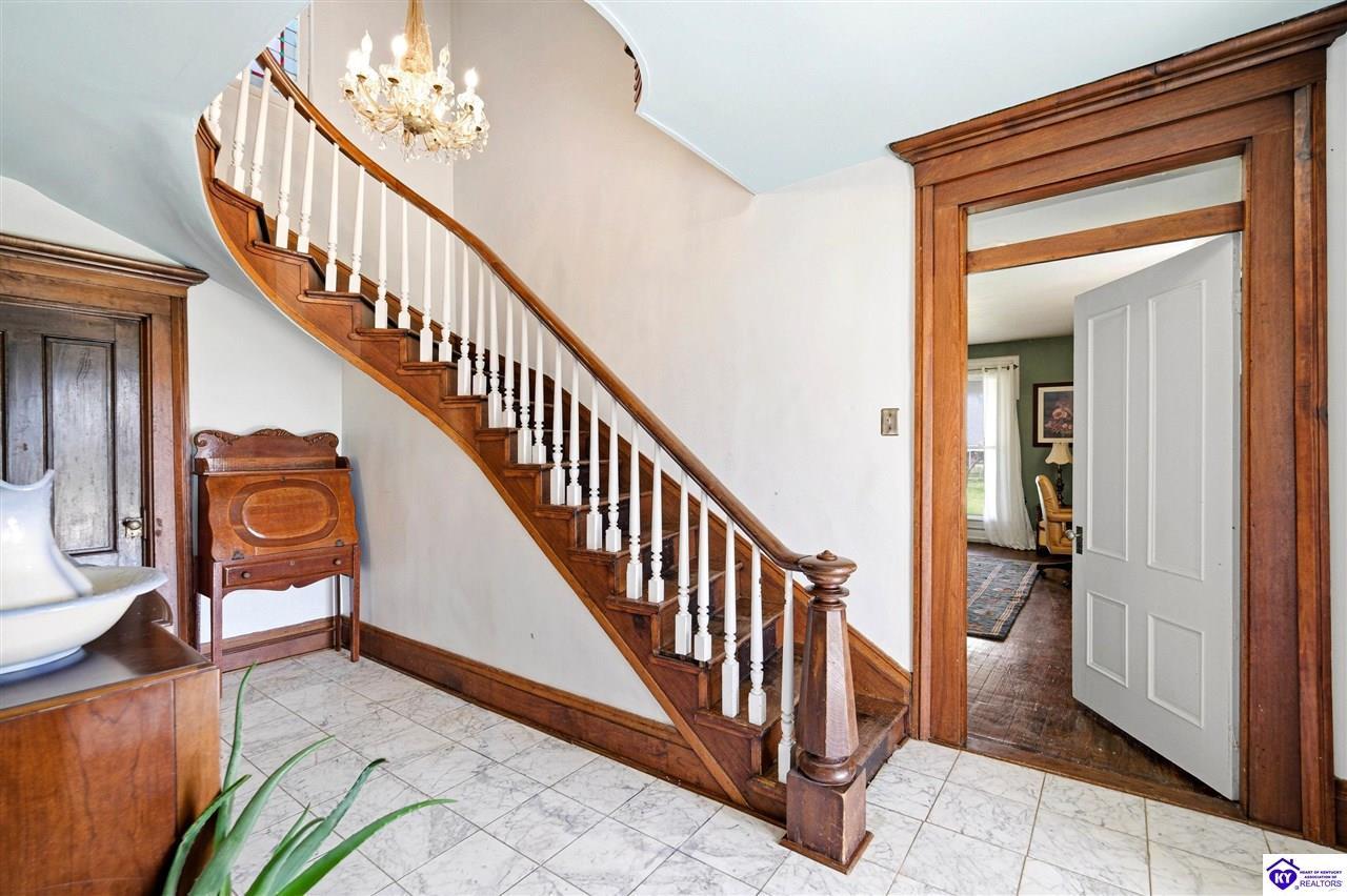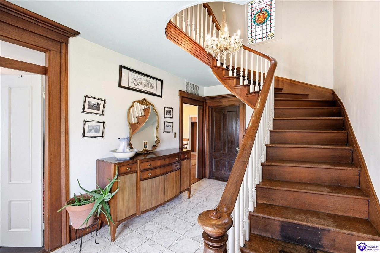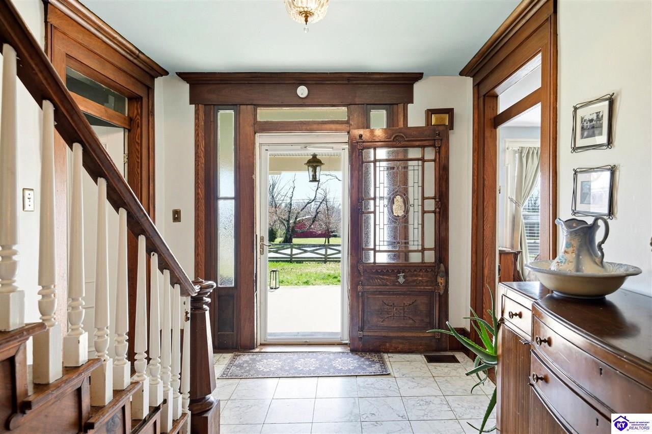 Realtor's notes: MOTIVATED SELLERS! Step into a piece of Kentucky history with this charming, late-1800s farmhouse, known locally as the McKenna House. Built in 1869 by Irish immigrant and bourbon pioneer, Henry McKenna, this remarkable property offers timeless character, Victorian Folk architecture, and modern comforts. Just up the road, his original distillery remains standing, and his legacy lives through his namesake bourbon, still produced today by Heaven Hill. Set on 4.5+ fully fenced acres, the home features over 3,500 square feet of living space, including 5 bedrooms, 3 full bathrooms, a formal dining room, a fully renovated kitchen, a library, and six fireplaces. Two main-level, spacious primary suites each include their own private parlor, fireplace, a dedicated full bathroom, and a separate interior/exterior entrance - offering both comfort and autonomy. Upstairs, the original winding staircase leads to two additional bedrooms and a third full bath. Updated/replaced plumbing, septic lines, mechanicals, and all new vinyl siding are just a few of many updates to give you peace of mind! And that's just the beginning... In addition to the main residence, the property includes a separate 2,100-square-foot carriage house with 2 bedrooms and 2 full bathrooms—ideal for guests, extended family, or rental opportunities. With its rich history and generous layout, the McKenna House presents endless possibilities: a distinctive primary residence, a multi-generational living opportunity, or a high-performing investment property with proven income & potential for up to four short-term rentals. Ideally located along Kentucky's famed Bourbon Trail, and just minutes from Bardstown, Mount Washington, Bloomfield, and Taylorsville—with Louisville and Lexington under an hour away—this one-of-a-kind property is truly special. Priced well under appraised value & motivated sellers! Schedule your private showing today!