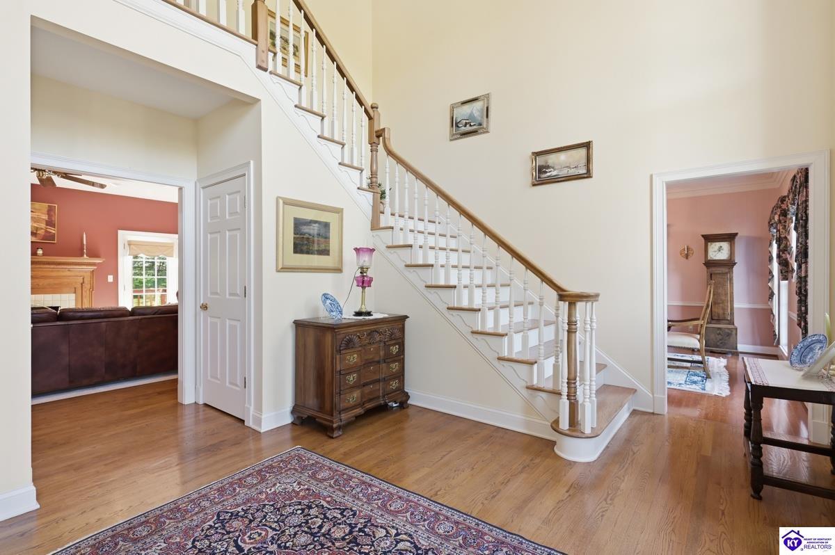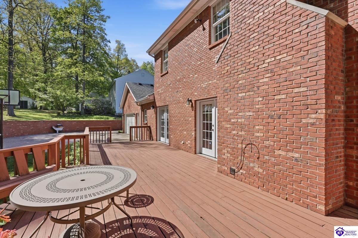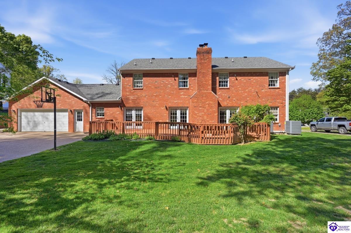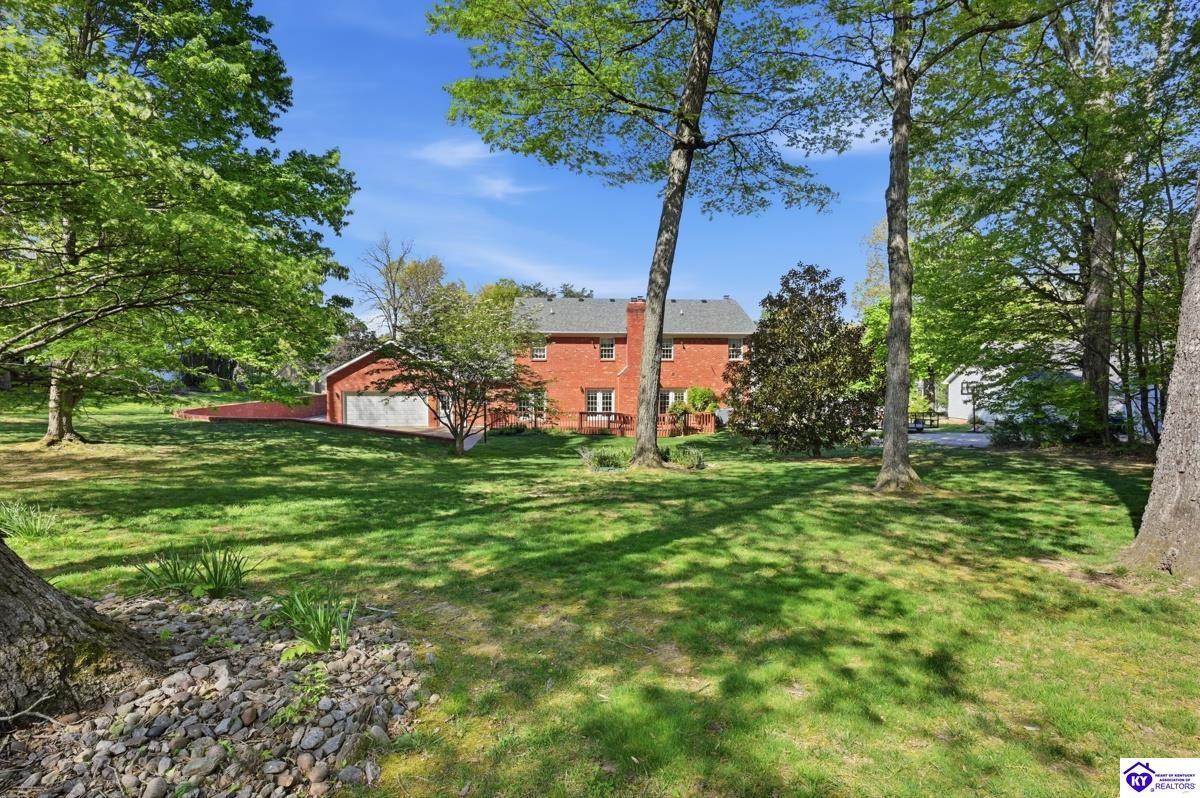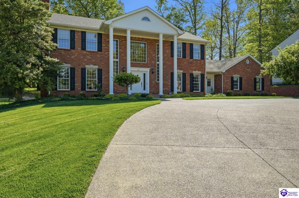 Realtor's notes: Stately 5 bedroom, 3.5 bath custom-built brick colonial located in the heart of Elizabethtown. Situated on a spacious 0.60 acre partially wooded lot on a quiet, low-traffic street, this property offers over 4,400 square feet of living space. The home has been meticulously maintained and offers peace of mind with major updates already completed, including a roof replacement in 2017, along with newer HVAC systems and water heater. It is complemented by a beautifully maintained yard and landscaping. A large driveway and attached 2-car garage provide generous parking and everyday convenience. Inside, you’ll find a well-designed layout featuring hardwood flooring throughout the main living areas and generous spaces ideal for both everyday living and entertaining. With five bedrooms and three and a half baths, there is plenty of room for family, guests, a home office, or flexible living needs. The partially finished basement provides additional living space, complete with a full bathroom and non-conforming bedroom—perfect for guests, a recreation area, or home gym—while still offering sufficient unfinished storage space. Step outside to enjoy a private, wooded backyard—providing a peaceful setting that’s hard to find—while still being conveniently located just minutes from shopping, dining, and everyday amenities and only about 20 minutes to Fort Knox, and just 10 minutes to I-65, this home offers an ideal balance of privacy and accessibility. Blending traditional character, functional space, and a prime location, this home is a standout opportunity in an established neighborhood.