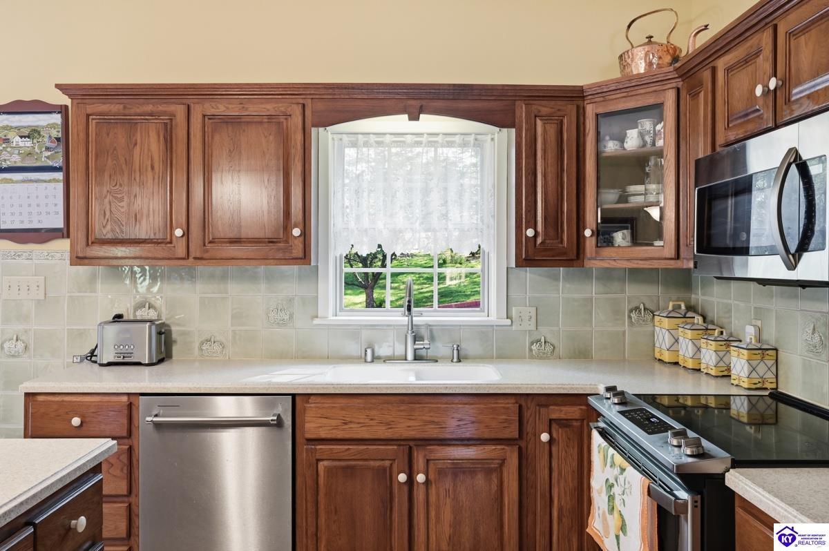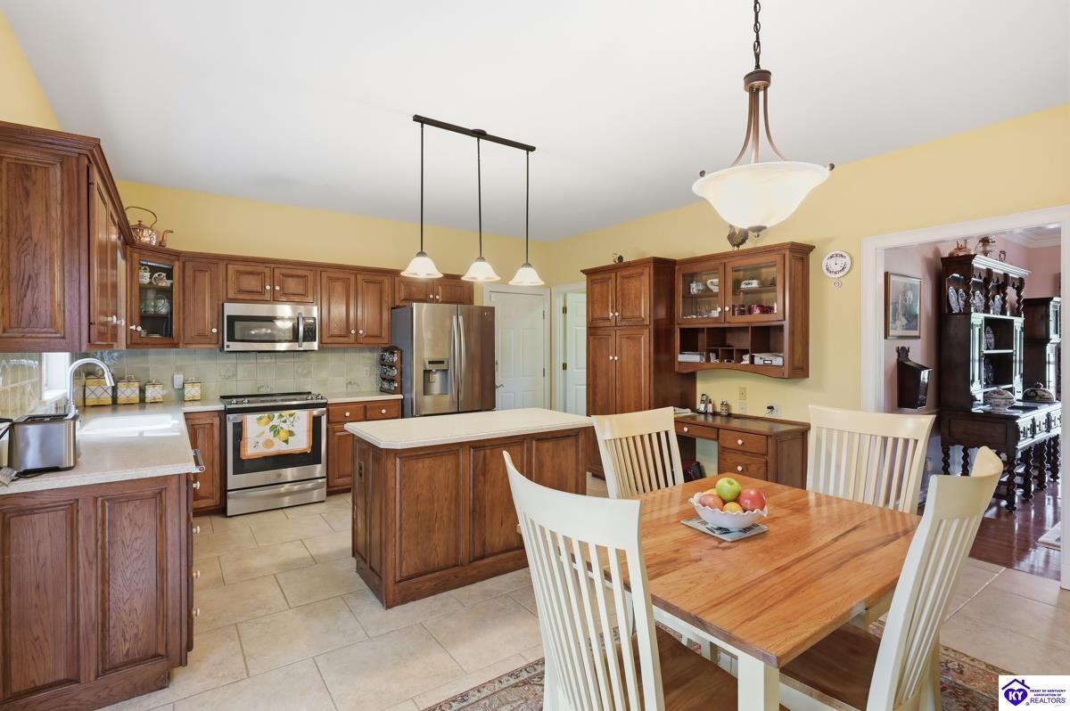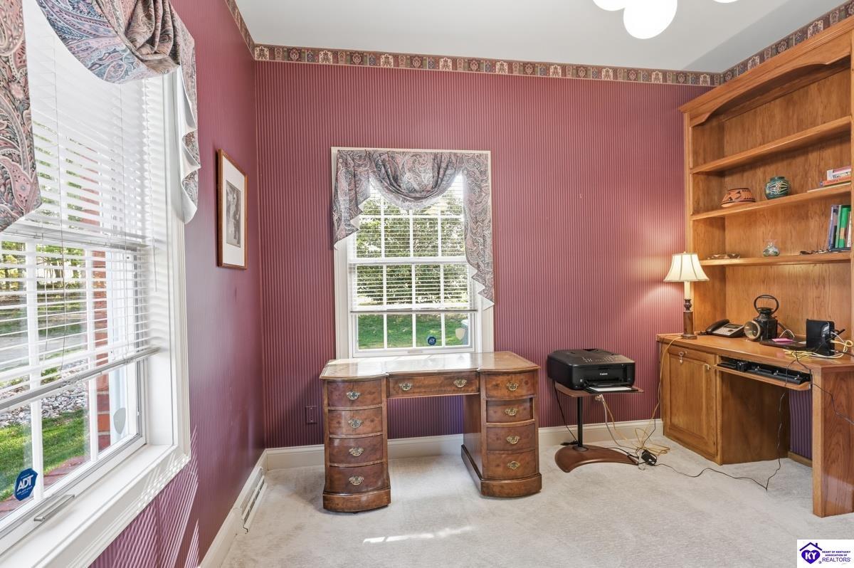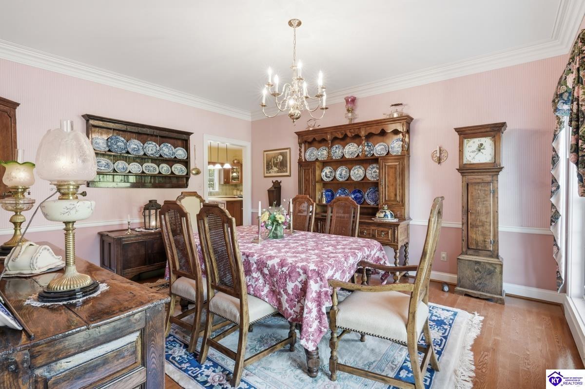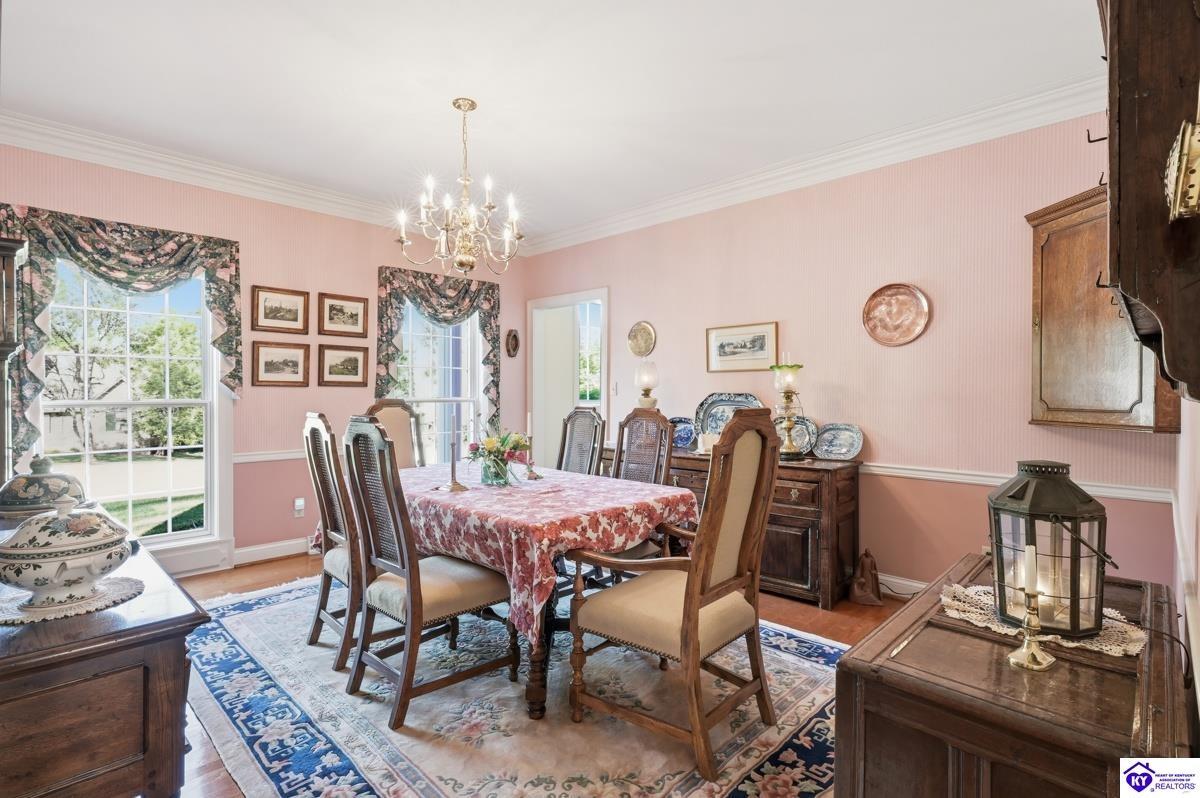 Realtor's notes: Stately 5 bedroom, 3.5 bath custom-built brick colonial located in the heart of Elizabethtown. Situated on a spacious 0.60 acre partially wooded lot on a quiet, low-traffic street, this property offers over 4,400 square feet of living space. The home has been meticulously maintained and offers peace of mind with major updates already completed, including a roof replacement in 2017, along with newer HVAC systems and water heater. It is complemented by a beautifully maintained yard and landscaping. A large driveway and attached 2-car garage provide generous parking and everyday convenience. Inside, you’ll find a well-designed layout featuring hardwood flooring throughout the main living areas and generous spaces ideal for both everyday living and entertaining. With five bedrooms and three and a half baths, there is plenty of room for family, guests, a home office, or flexible living needs. The partially finished basement provides additional living space, complete with a full bathroom and non-conforming bedroom—perfect for guests, a recreation area, or home gym—while still offering sufficient unfinished storage space. Step outside to enjoy a private, wooded backyard—providing a peaceful setting that’s hard to find—while still being conveniently located just minutes from shopping, dining, and everyday amenities and only about 20 minutes to Fort Knox, and just 10 minutes to I-65, this home offers an ideal balance of privacy and accessibility. Blending traditional character, functional space, and a prime location, this home is a standout opportunity in an established neighborhood.