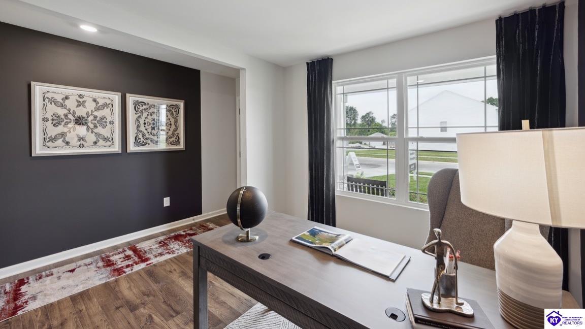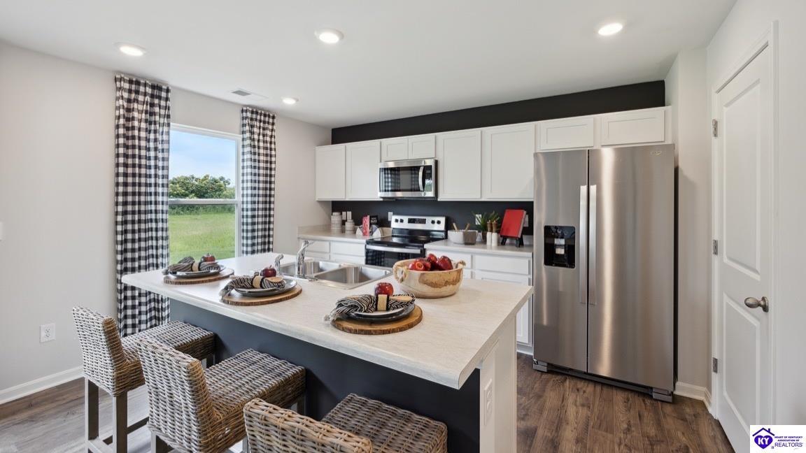 Realtor's notes: Welcome to 154 Ellis Park, Elizabethtown, KY, a beautiful new home in our serene Cowley Farms community. This 0.41-acre home site offers an appealing environment suitable for both residents and their pets. The Bellamy floor plan is a stunning two-story design offering 4 spacious bedrooms and 2.5 bathrooms—perfect for anyone looking for flexible living space. The open-concept layout creates a seamless flow from the kitchen to the main living areas, making it ideal for both everyday living and entertaining. Luxury vinyl plank flooring flows throughout the foyer, flex room, great room, kitchen, and bathrooms, delivering both style and durability. In addition to its generous living areas, this home features a dedicated flex room—perfect for a home office, library, or playroom. Whether you work remotely or simply need additional functional space, the Bellamy offers versatility to fit your lifestyle. The kitchen is truly the heart of the home, showcasing beautiful white cabinetry with soft-close doors, quartz countertops, stainless-steel appliances, a large pantry, and a built-in island with ample seating—ideal for cooking, gathering, and hosting guests. Upstairs, the oversized primary suite offers a private retreat with an ensuite bathroom featuring a double bowl vanity, a stand-alone shower, private water closet, and a spacious walk-in closet. Three additional bedrooms and a conveniently located laundry room complete the upper level. Contact us today to schedule a private tour. Photos are representative of the plan only and may vary as built. Estimated completion is June/July 2026.