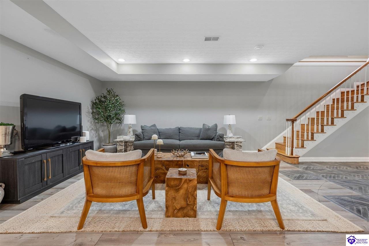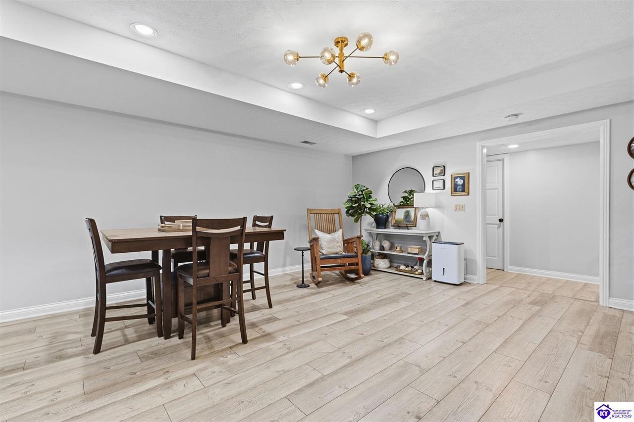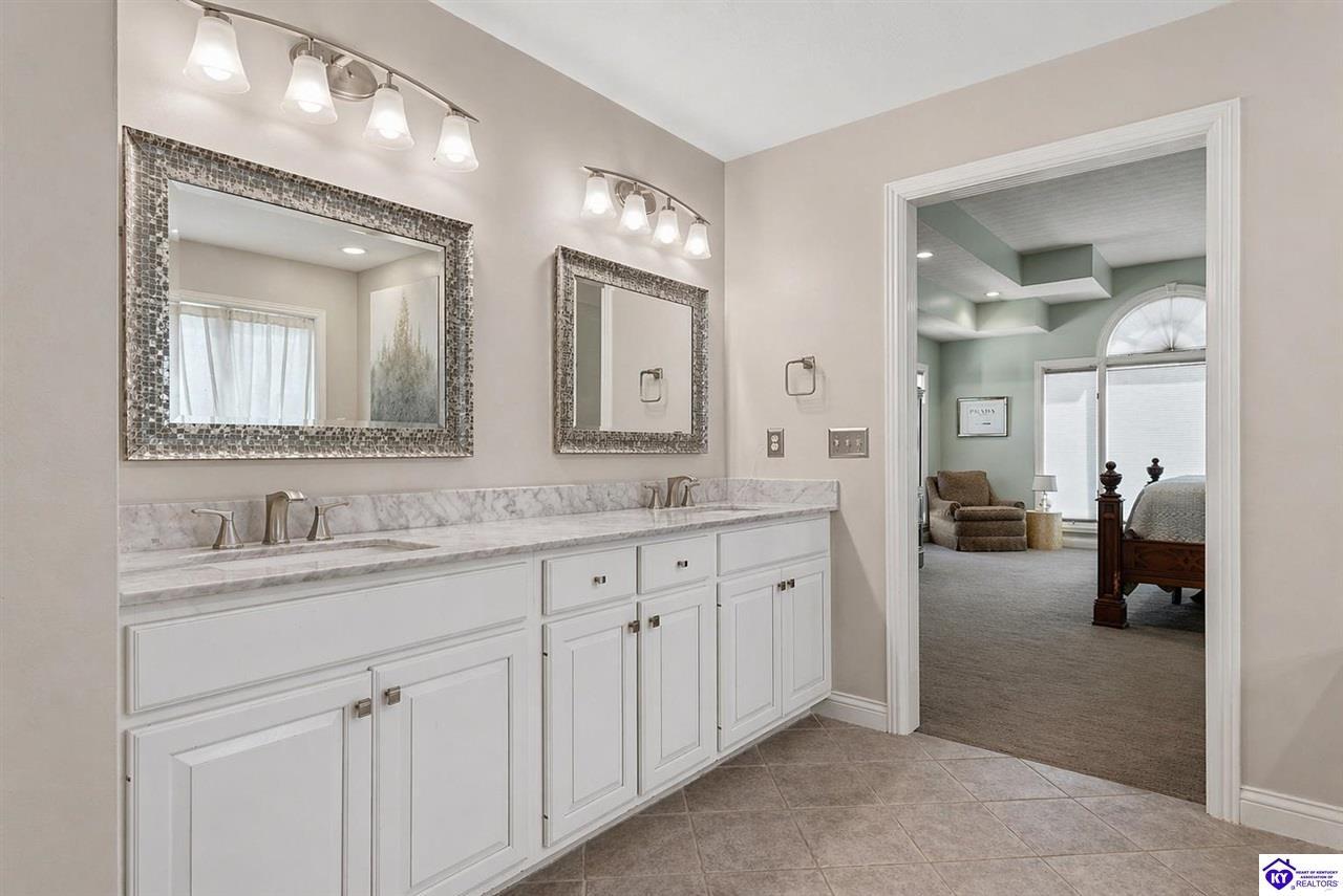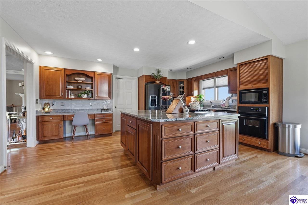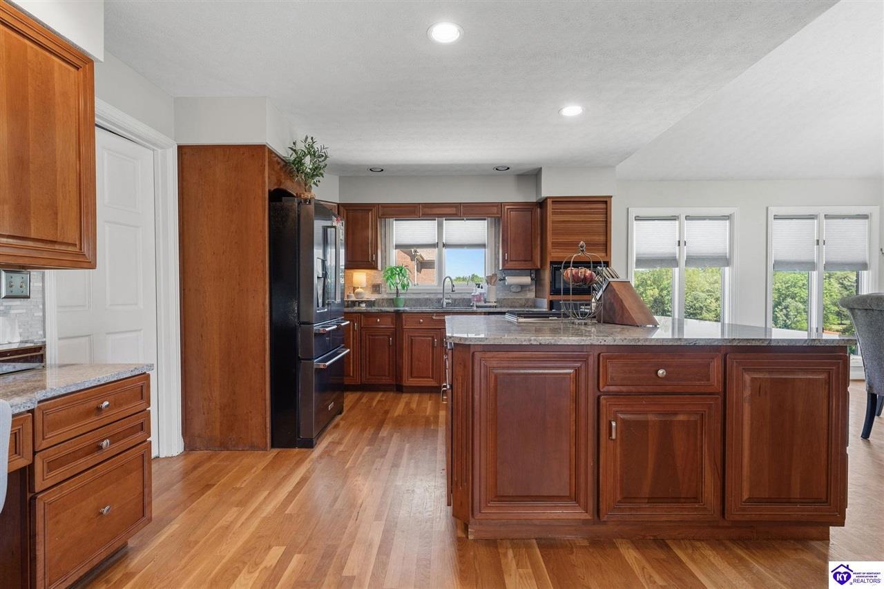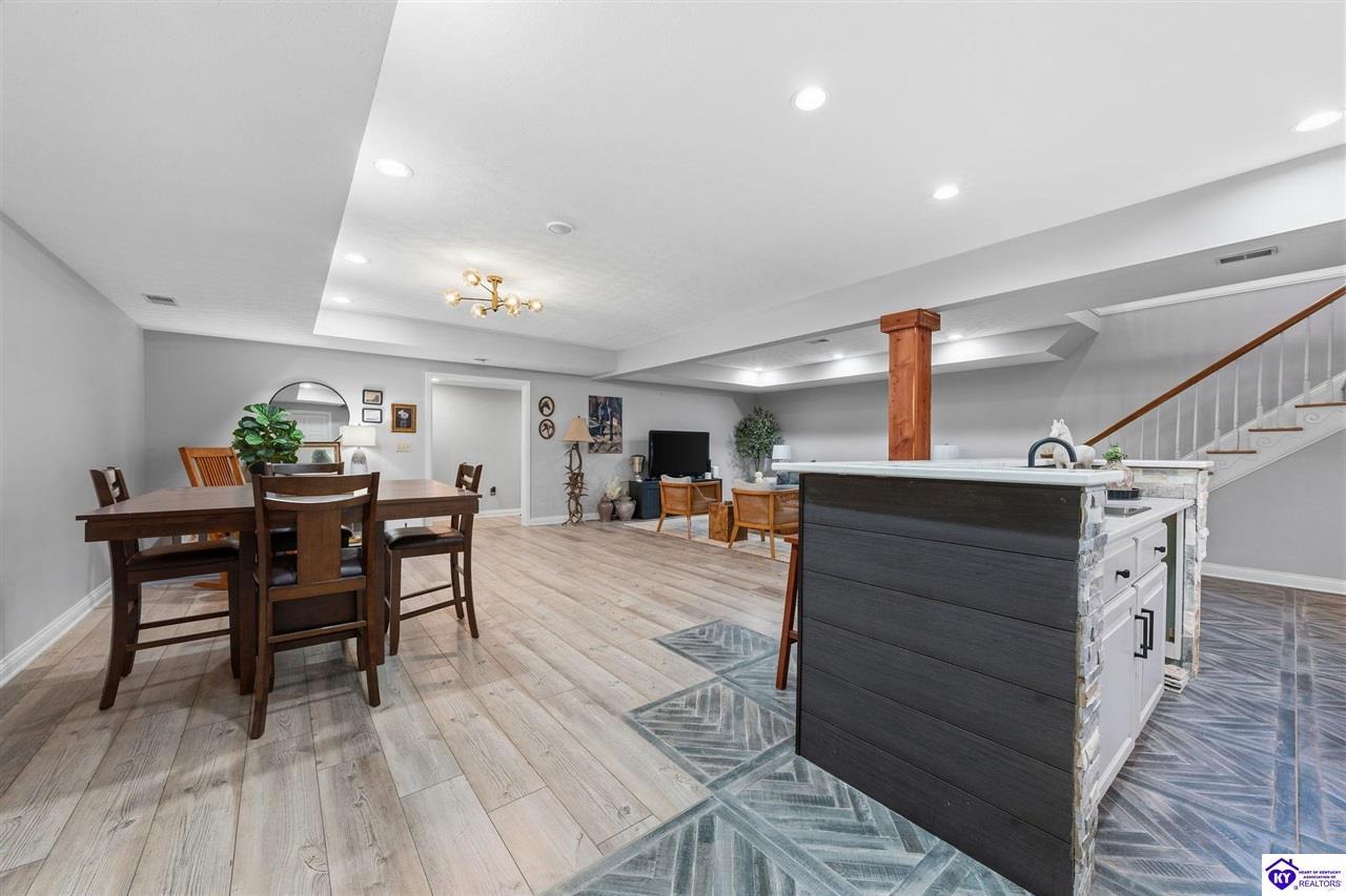 Realtor's notes: Nestled on the picturesque Hole 11 of the Lincoln Trail Golf Course, 557 St. Andrews Drive offers an unparalleled blend of luxury and leisure. Imagine waking each morning to serene golf-course views, stepping out your back door onto lush fairways, and enjoying a peaceful neighborhood that embodies refined living. Inside, the living room captivates with stately columns, rich hardwood floors, and a gas fireplace, while natural light pours in through expansive windows. The gourmet kitchen features custom cabinetry, granite countertops, a walk-in pantry, and a spacious island perfect for entertaining. A convenient mud room/laundry room is located just off the garage. This expansive home boasts three spacious bedrooms, plus two large bonus rooms easily transformed into fourth and fifth bedrooms. The master suite is a serene retreat with a spa-like bath, offering a daily escape. Below, the finished walk-up basement features a chic bar and expansive family entertainment space, full bathroom, with abundant storage throughout. Additional features include a water softener and new hot water heater. Finally, step onto your covered patio and savor the serene golf-course views—this is luxury, comfort, and elegance in one remarkable home.