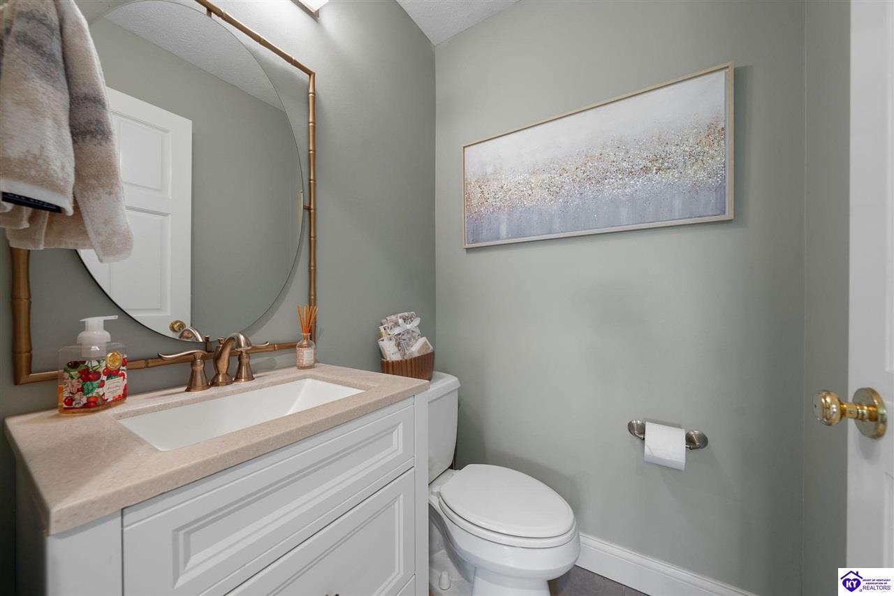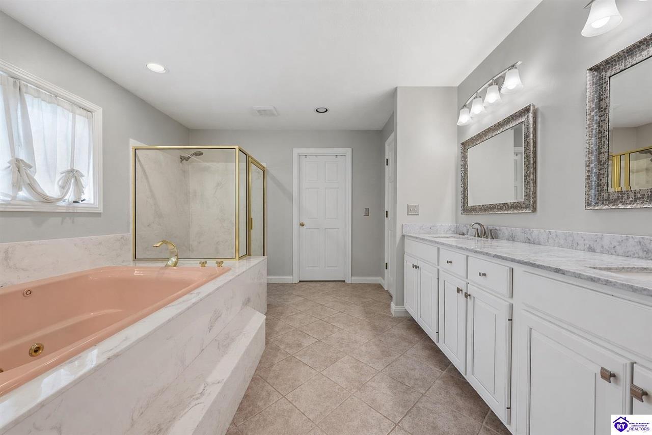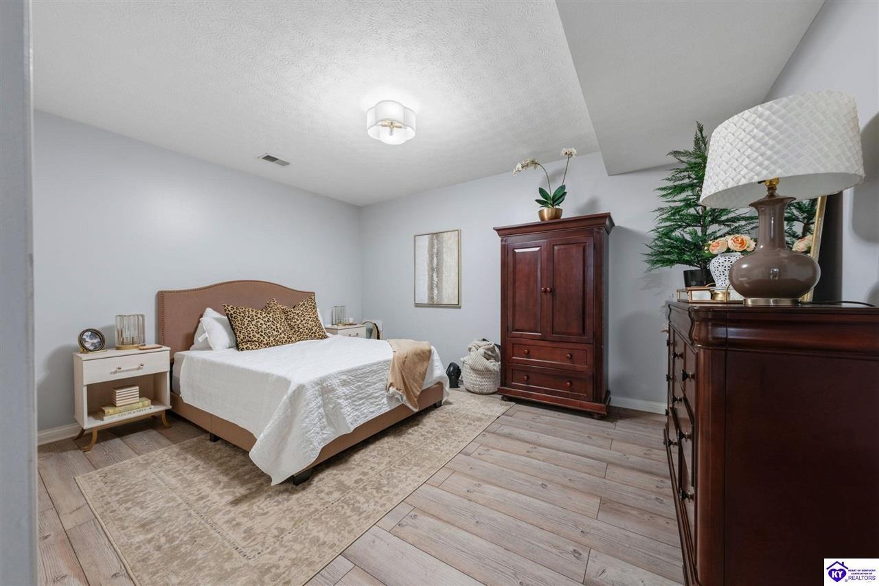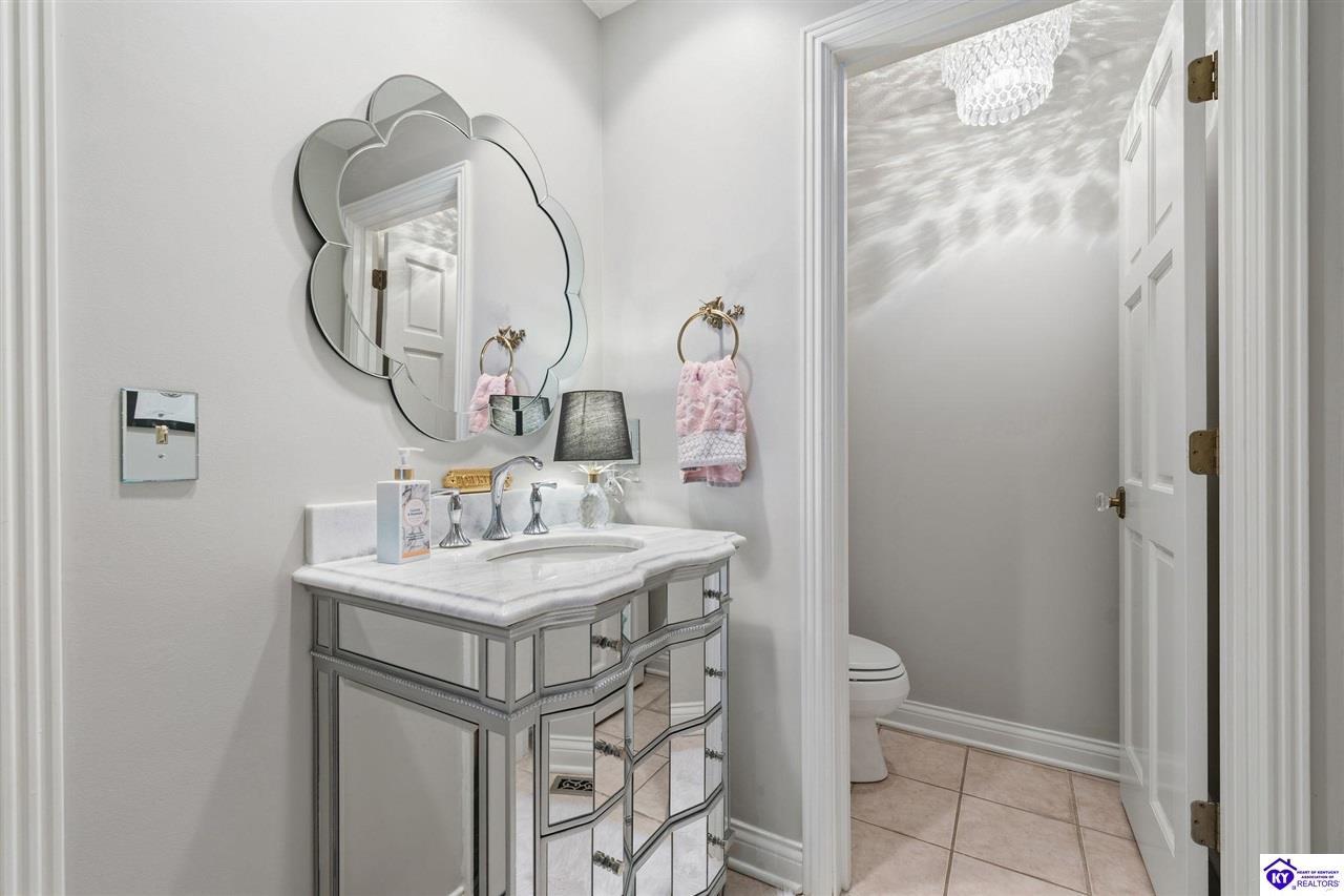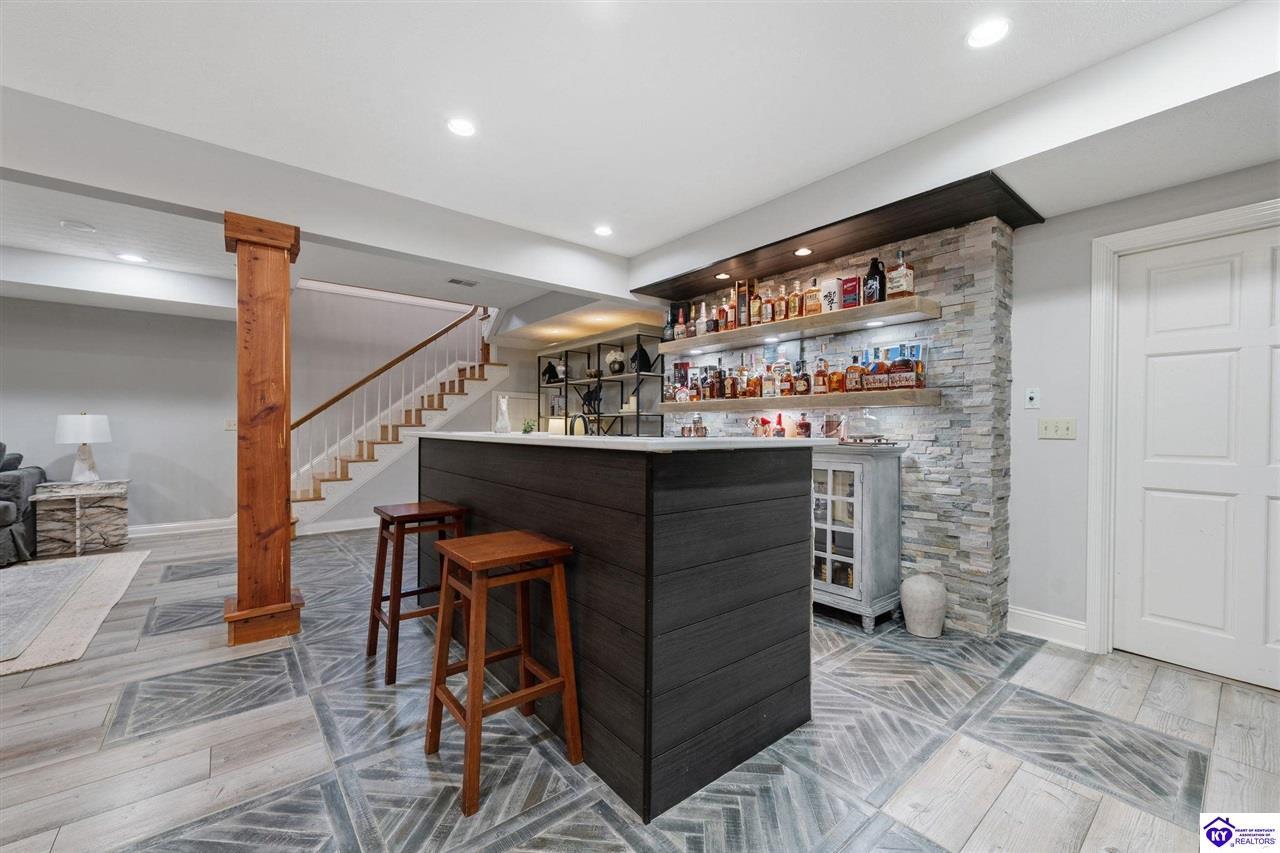 Realtor's notes: Nestled on the picturesque Hole 11 of the Lincoln Trail Golf Course, 557 St. Andrews Drive offers an unparalleled blend of luxury and leisure. Imagine waking each morning to serene golf-course views, stepping out your back door onto lush fairways, and enjoying a peaceful neighborhood that embodies refined living. Inside, the living room captivates with stately columns, rich hardwood floors, and a gas fireplace, while natural light pours in through expansive windows. The gourmet kitchen features custom cabinetry, granite countertops, a walk-in pantry, and a spacious island perfect for entertaining. A convenient mud room/laundry room is located just off the garage. This expansive home boasts three spacious bedrooms, plus two large bonus rooms easily transformed into fourth and fifth bedrooms. The master suite is a serene retreat with a spa-like bath, offering a daily escape. Below, the finished walk-up basement features a chic bar and expansive family entertainment space, full bathroom, with abundant storage throughout. Additional features include a water softener and new hot water heater. Finally, step onto your covered patio and savor the serene golf-course views—this is luxury, comfort, and elegance in one remarkable home.