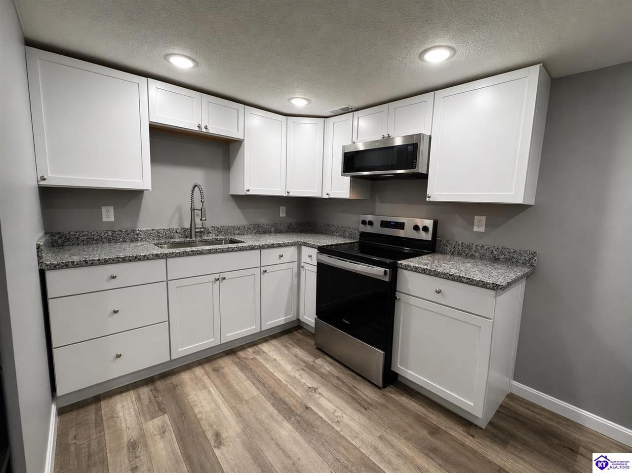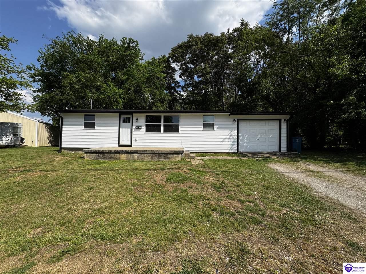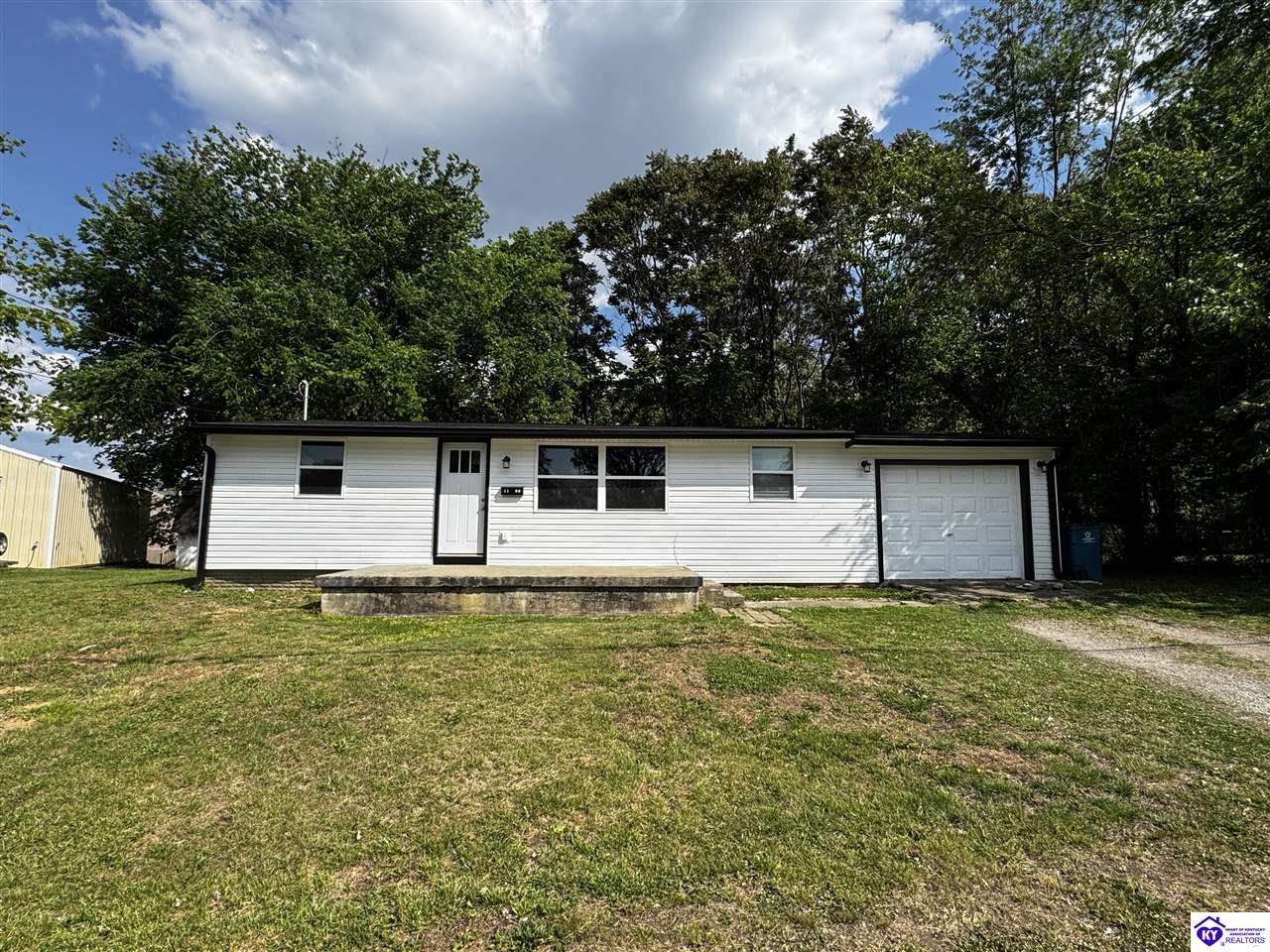 Realtor's notes: Adorable and affordable! This ranch home was completely renovated just 2 years ago with all new flooring, paint, cabinets, HVAC, water heater, gutters, appliances, granite counters, bathroom, & so much more. There's even a 1 car oversized garage with loads of storage options. Conveniently located close to Meade County High School and all the amenities Brandenburg has to offer.