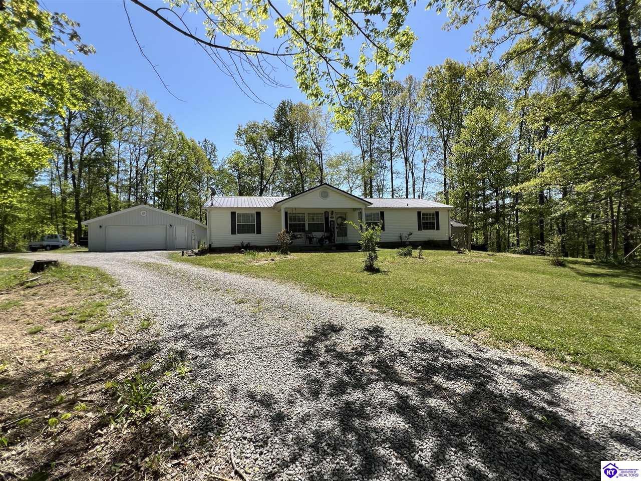 Realtor's notes: Hunters paradise! Trails, trails & more trails! Home nestled in woods with 54.78 acres (per survey) with a pond, springs, barn, and covered building for wood. With approx. 4 acres cleared, the rest of the land is wooded and ideal for turkey and deer hunting with abundant wildlife. Huge garden spot with 9ft fencing with grapes vines has water spigot. 20 beautiful mature blueberry bushes line right side of drive as you make your way to with house plus blackberries on the left. Home sits on permanent foundation with front & rear covered patio for taking in the gorgeous views & serenity of the farm; it doesn't get any more private! This 3 bed/2 bath home has fireplace in the den along with built-in cabinetry. Kitchen features island and appliances will remain. Current stove/oven will be replaced. Utility room includes a utility sink. Primary bedroom has large bathroom with double vanities, garden tub & separate shower with seating. One of the bedrooms is used as a craft room. Each bedroom features walk-in closets. As a bonus, there is a wood burning stove/furnace used for secondary heat housed in a separate building from main house. 30x40 detached garage includes electric & pedestrian door. A 20x40 dog enclosure can be found just behind the house. Barn has lien to on each side and is situated about half way between front entrance gate & house in the back. Just across from barn, you can see the pond, huge garden spot, blueberry & blackberry bushes & small wood shed used to store wood. Multiple trails run throughout the property and make this unique property creating a sportsmans paradise. Whether hunting is your thing or riding ATV's on trails, this is a secluded, peaceful homesite having endless possibilities. You need to see it in person to appreciate how captivating and tranquil the setting is on this farm. All data believed to be accurate but not guaranteed. Buyer to verify before offer.