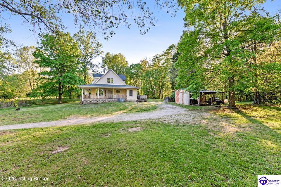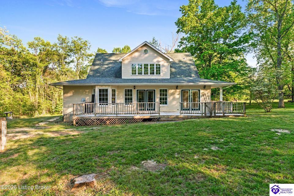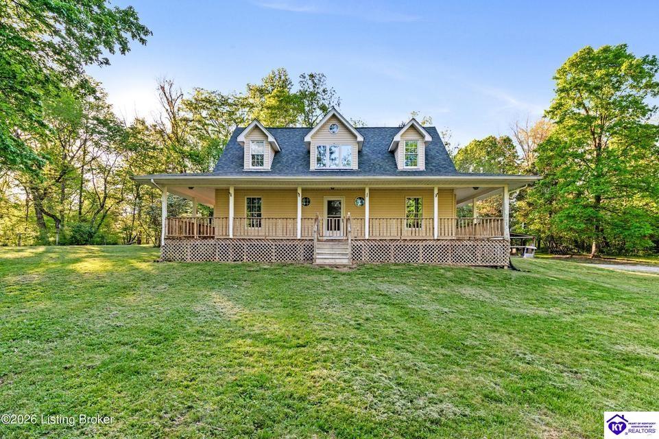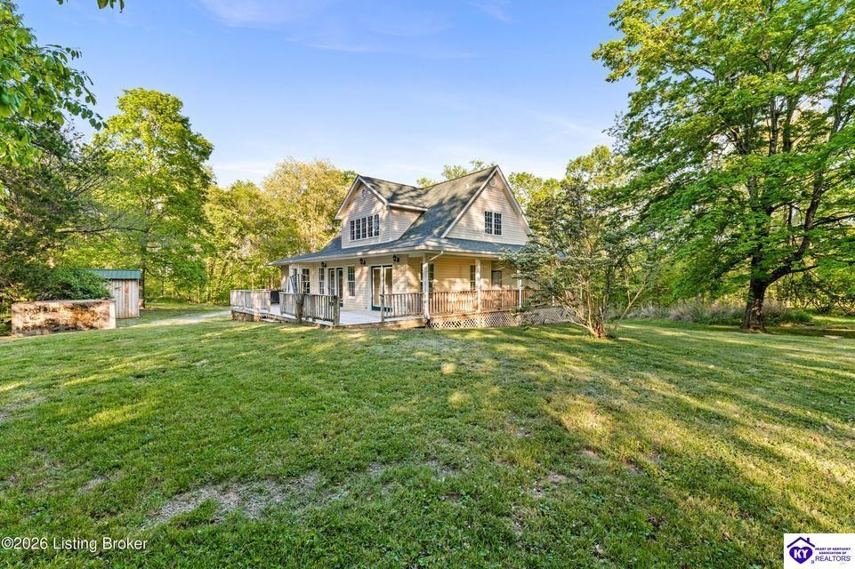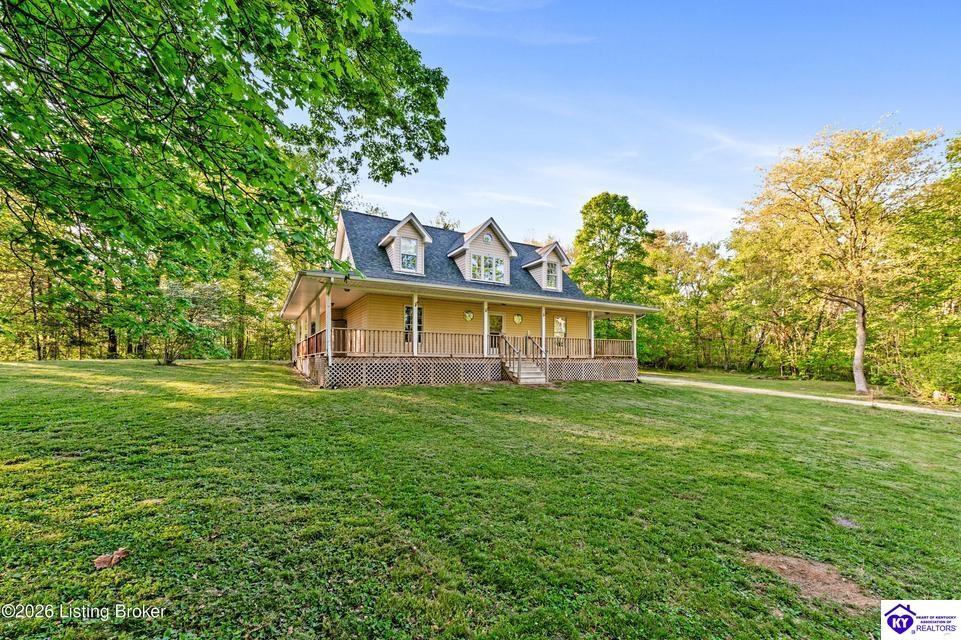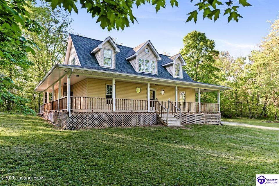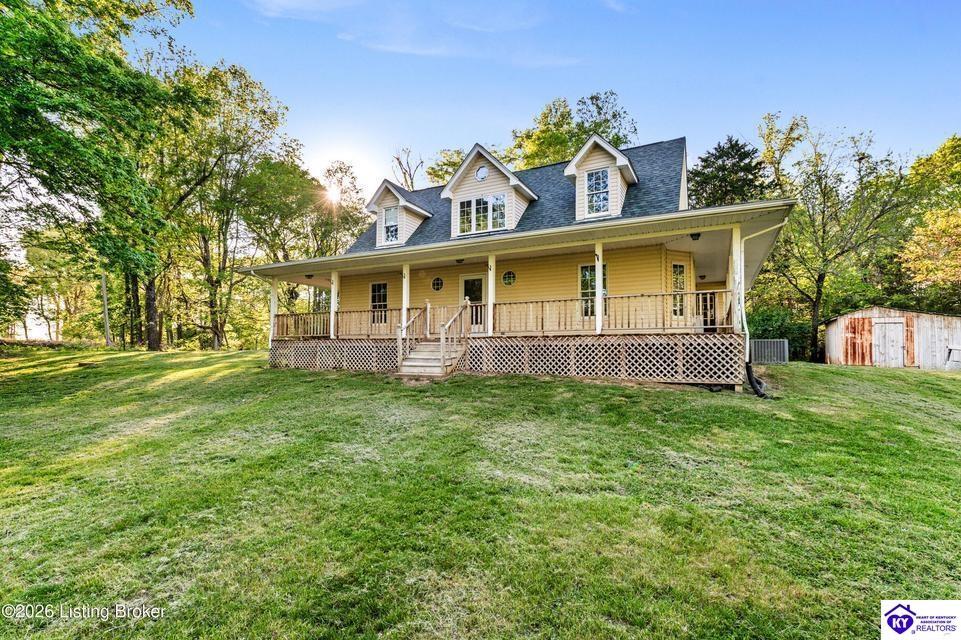 Realtor's notes: Set on 11 scenic acres, this charming Cape Cod is the perfect blend of comfort and country appeal. A welcoming wraparound porch invites you to relax and enjoy the peaceful surroundings. Inside, the entryway features hardwood flooring and opens to a living room with cathedral ceilings and a wall of windows that fill the space with natural light, along with access to the rear deck. The spacious kitchen boasts abundant cabinetry, counter space, and a large dining area. The first-floor primary suite provides a private retreat with a jetted tub, separate shower, double vanity, and walk-in closet. A half bath and laundry room complete the main level. Upstairs has two large bedrooms and a full bath. Outside, a storage shed with lean-to adds extra functionality to this beautiful property.