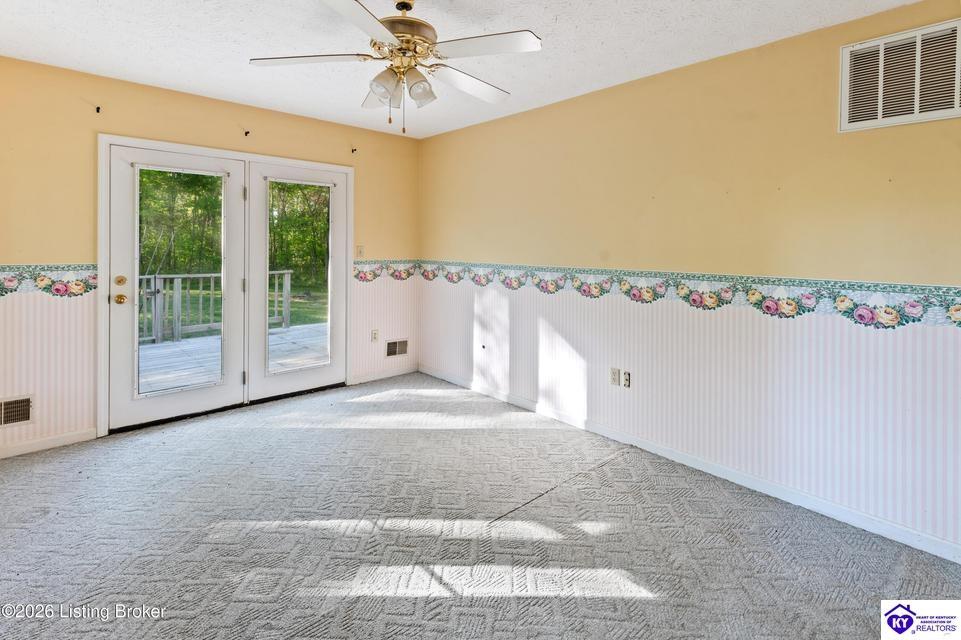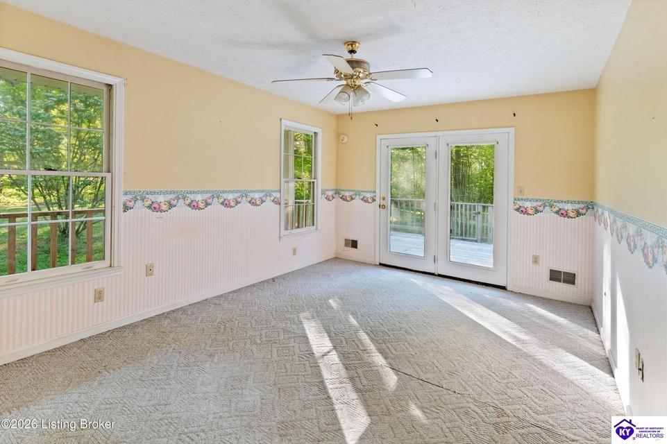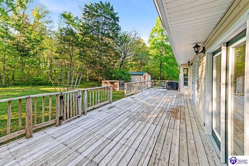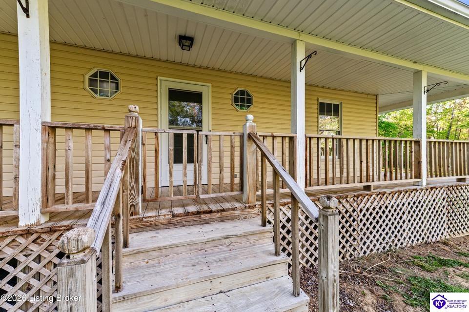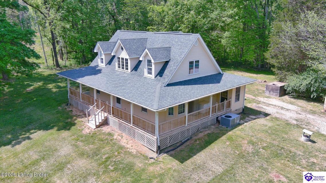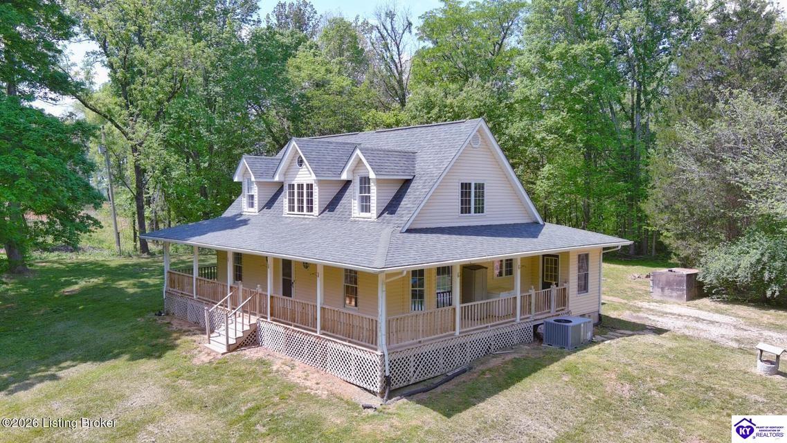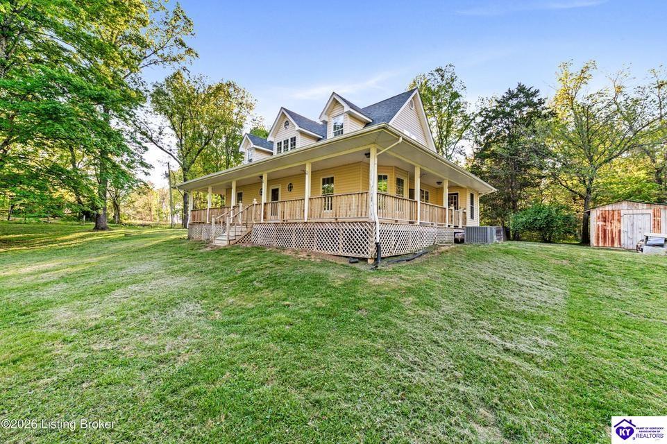 Realtor's notes: Set on 11 scenic acres, this charming Cape Cod is the perfect blend of comfort and country appeal. A welcoming wraparound porch invites you to relax and enjoy the peaceful surroundings. Inside, the entryway features hardwood flooring and opens to a living room with cathedral ceilings and a wall of windows that fill the space with natural light, along with access to the rear deck. The spacious kitchen boasts abundant cabinetry, counter space, and a large dining area. The first-floor primary suite provides a private retreat with a jetted tub, separate shower, double vanity, and walk-in closet. A half bath and laundry room complete the main level. Upstairs has two large bedrooms and a full bath. Outside, a storage shed with lean-to adds extra functionality to this beautiful property.