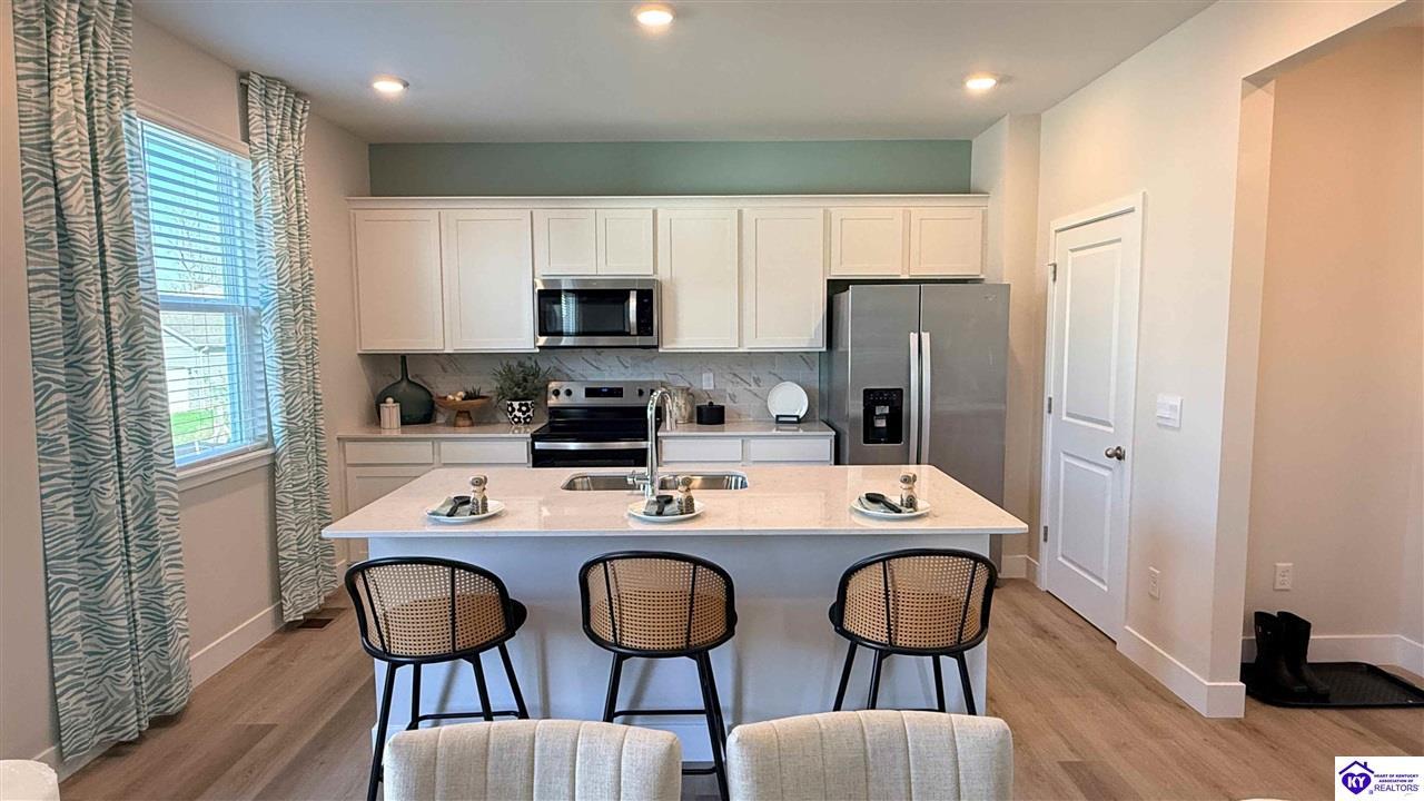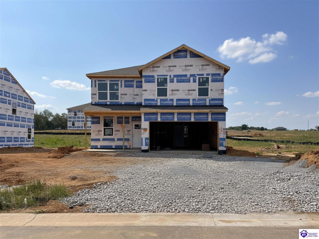 Realtor's notes: Meadows at Cowley Crossing Lot #5. Estimated completion is June/July 2026. Join us at 140 Shoemaker Lane, a beautiful new home in our beautiful Meadows at Cowley Crossing community in Elizabethtown, Kentucky. The Bellamy floor plan is a stunning two-story design offering 4 spacious bedrooms and 2.5 bathrooms—perfect for anyone looking for flexible living space. The open-concept layout creates a seamless flow from the kitchen to the main living areas, making it ideal for both everyday living and entertaining. Luxury vinyl plank flooring flows throughout the foyer, flex room, great room, kitchen, and bathrooms, delivering both style and durability. In addition to its generous living areas, this home features a dedicated flex room—perfect for a home office, library, or playroom. Whether you work remotely or simply need additional functional space, the Bellamy offers versatility to fit your lifestyle. The kitchen is truly the heart of the home, showcasing beautiful white cabinetry with soft-close doors, quartz countertops, a tile backsplash, a large pantry, and a built-in island with ample seating—ideal for cooking, gathering, and hosting guests. Upstairs, the oversized primary suite offers a private retreat with an ensuite bathroom featuring a double bowl vanity, a tiled walk-in shower, and a spacious walk-in closet. Three additional bedrooms and a conveniently located laundry room complete the upper level. Contact us today to schedule a private tour. Decorated photos and virtual tour are representative of the plan only and may vary as built.