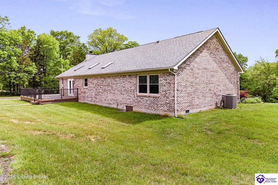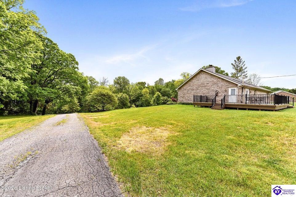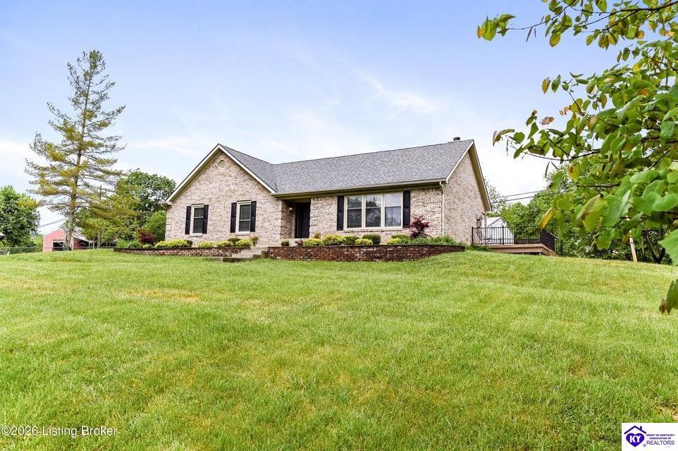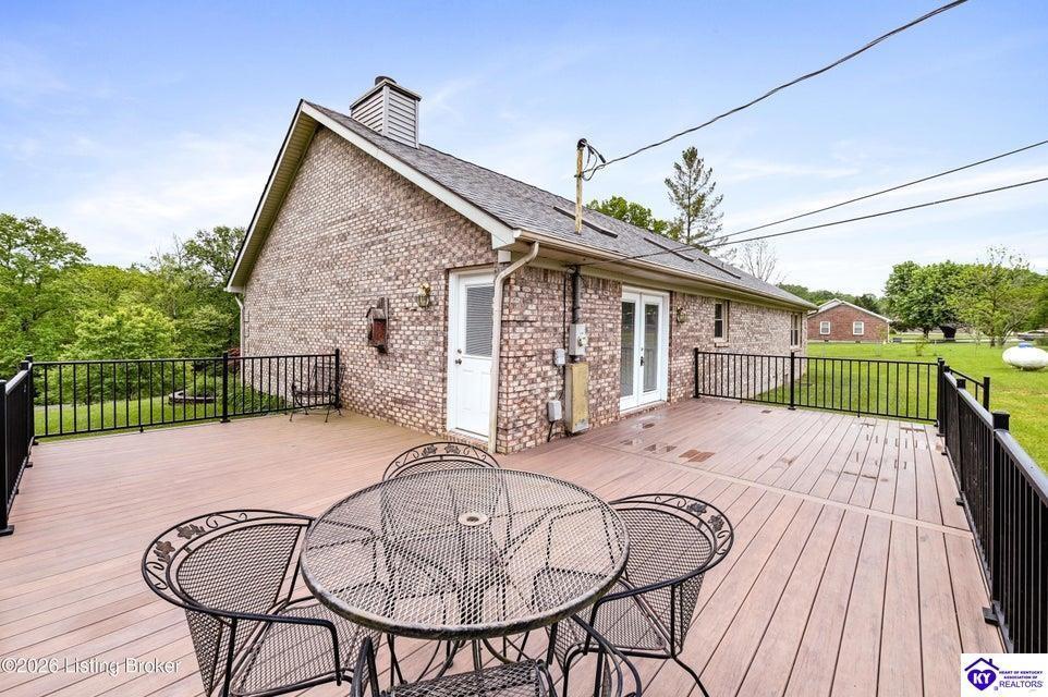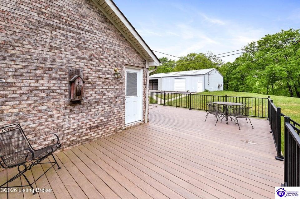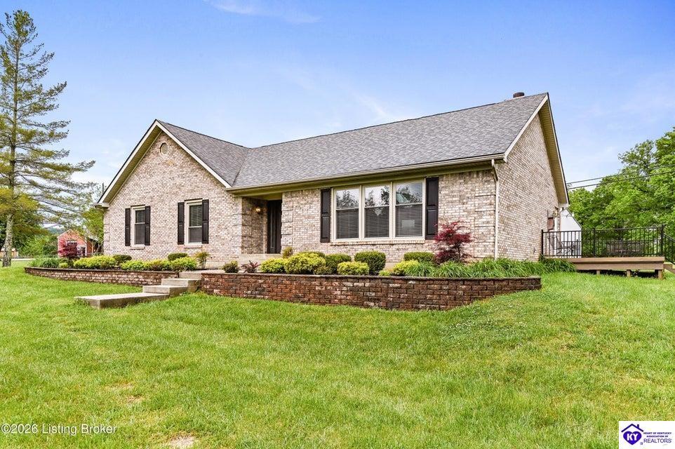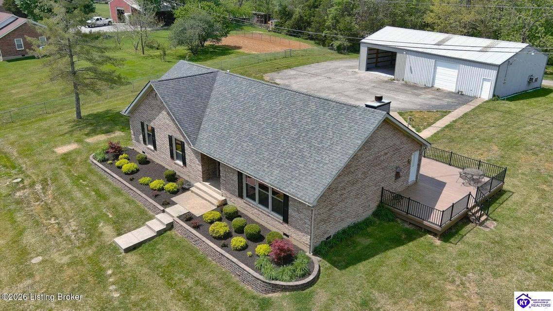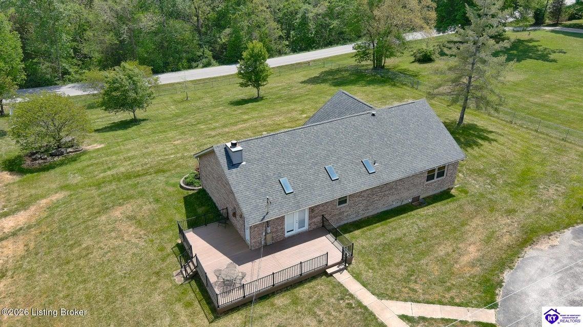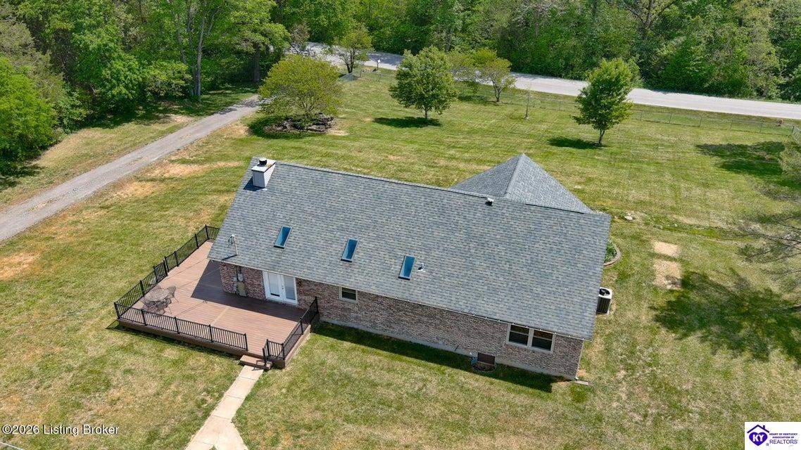 Realtor's notes: Tucked away on over 3 scenic acres with mature trees and a tranquil creek, this inviting 3-bedroom ranch offers the perfect blend of comfort and natural beauty. A tiled foyer welcomes you into the spacious great room featuring cathedral ceilings, a cozy fireplace, and an open flow into the kitchen and dining area. The kitchen features skylights for abundant natural light, a breakfast bar, pantry, and granite backsplash. Step out onto the low-maintenance Trex deck that wraps around the side of the home. The primary suite is complete with a large jetted tub, separate shower, double vanities, and three closets. Convenient laundry room with built-in shelving. 30' x 62' detached garage can accommodate 6 vehicles. Enjoy privacy, space, and comfort just a short drive from everyday conveniences.