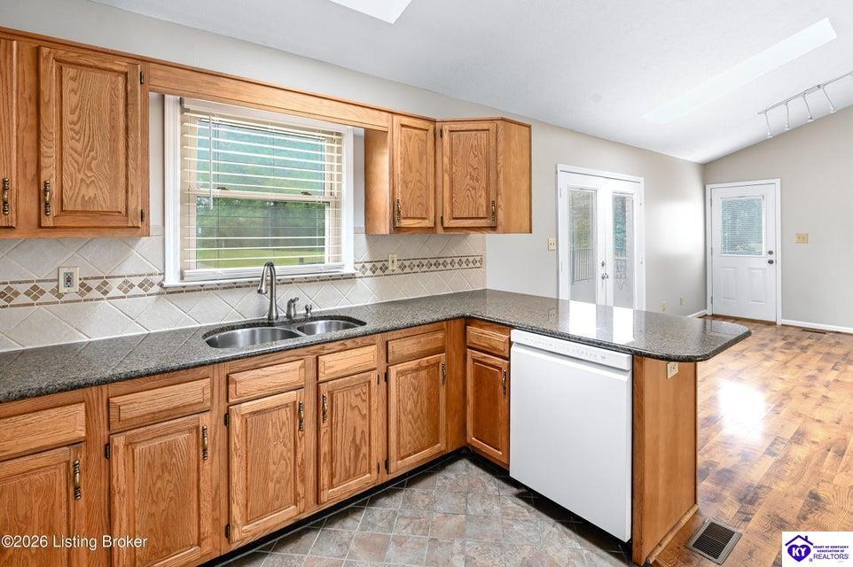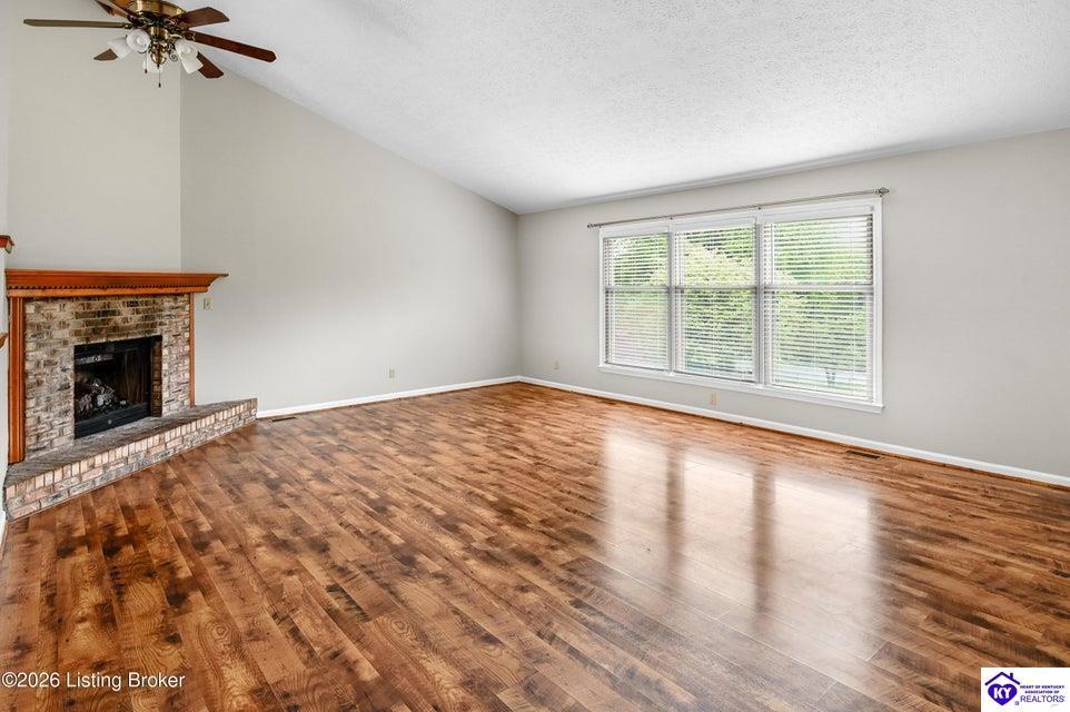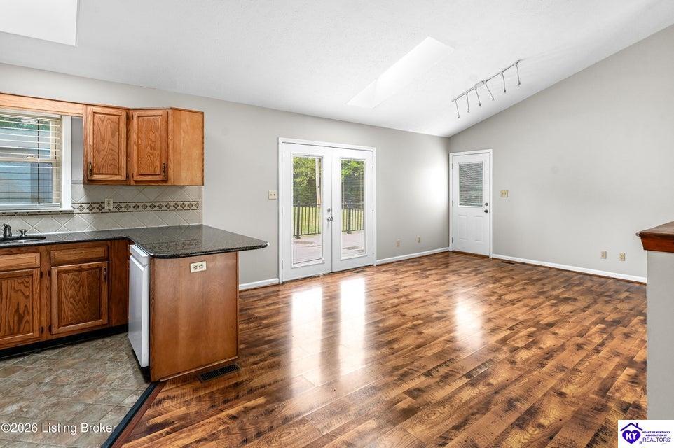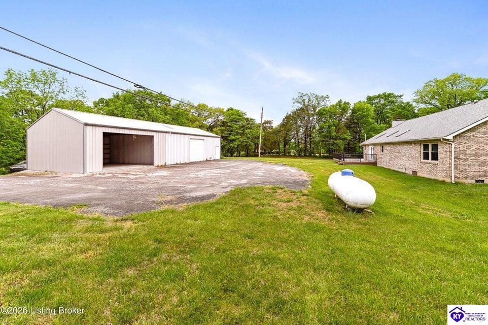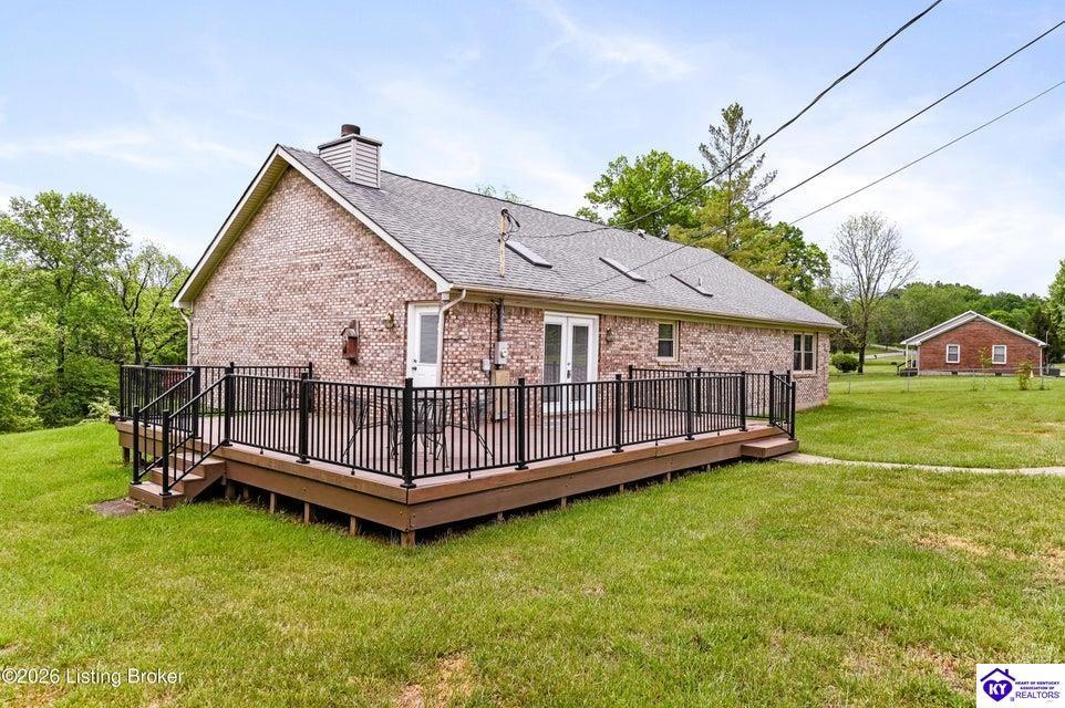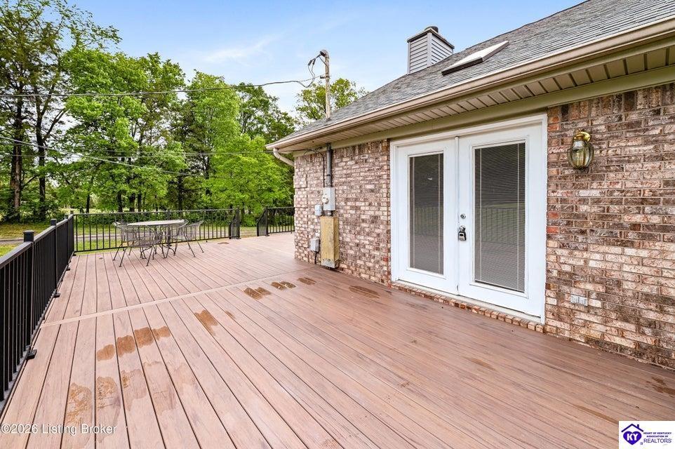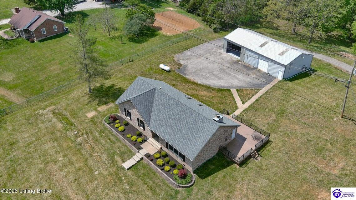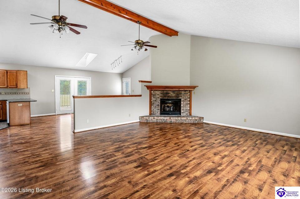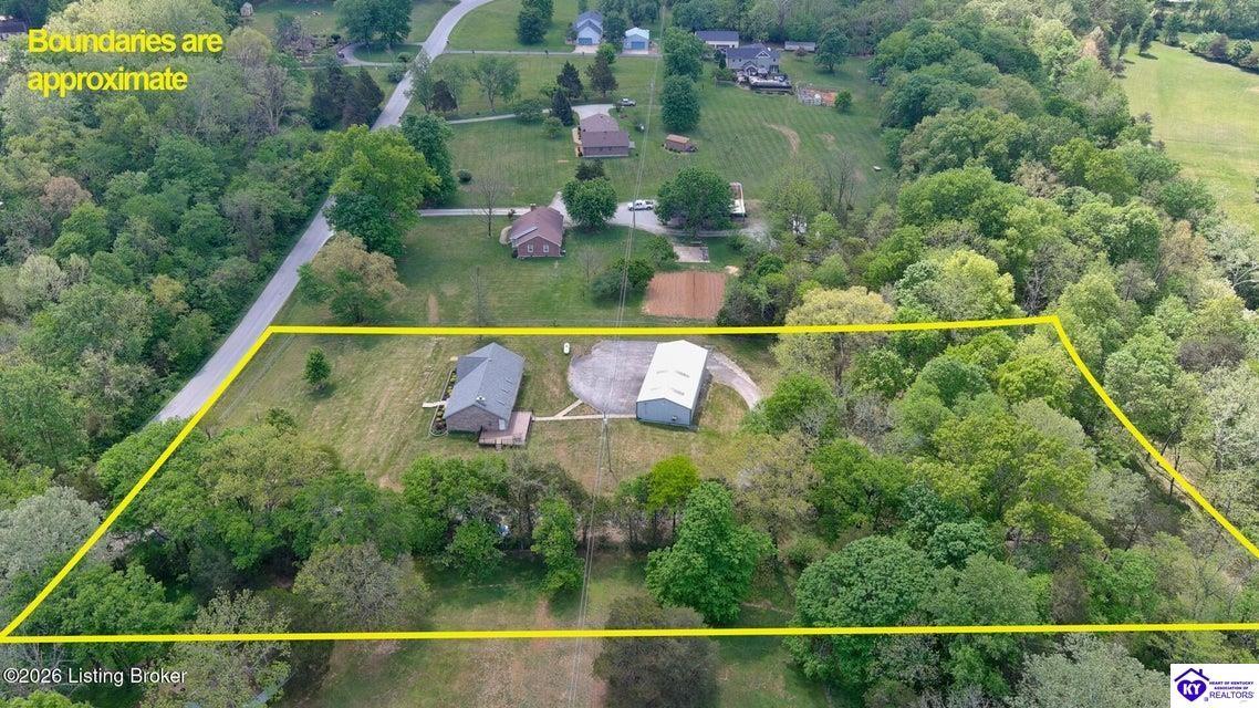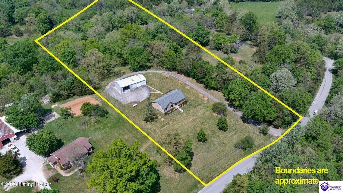 Realtor's notes: Tucked away on over 3 scenic acres with mature trees and a tranquil creek, this inviting 3-bedroom ranch offers the perfect blend of comfort and natural beauty. A tiled foyer welcomes you into the spacious great room featuring cathedral ceilings, a cozy fireplace, and an open flow into the kitchen and dining area. The kitchen features skylights for abundant natural light, a breakfast bar, pantry, and granite backsplash. Step out onto the low-maintenance Trex deck that wraps around the side of the home. The primary suite is complete with a large jetted tub, separate shower, double vanities, and three closets. Convenient laundry room with built-in shelving. 30' x 62' detached garage can accommodate 6 vehicles. Enjoy privacy, space, and comfort just a short drive from everyday conveniences.